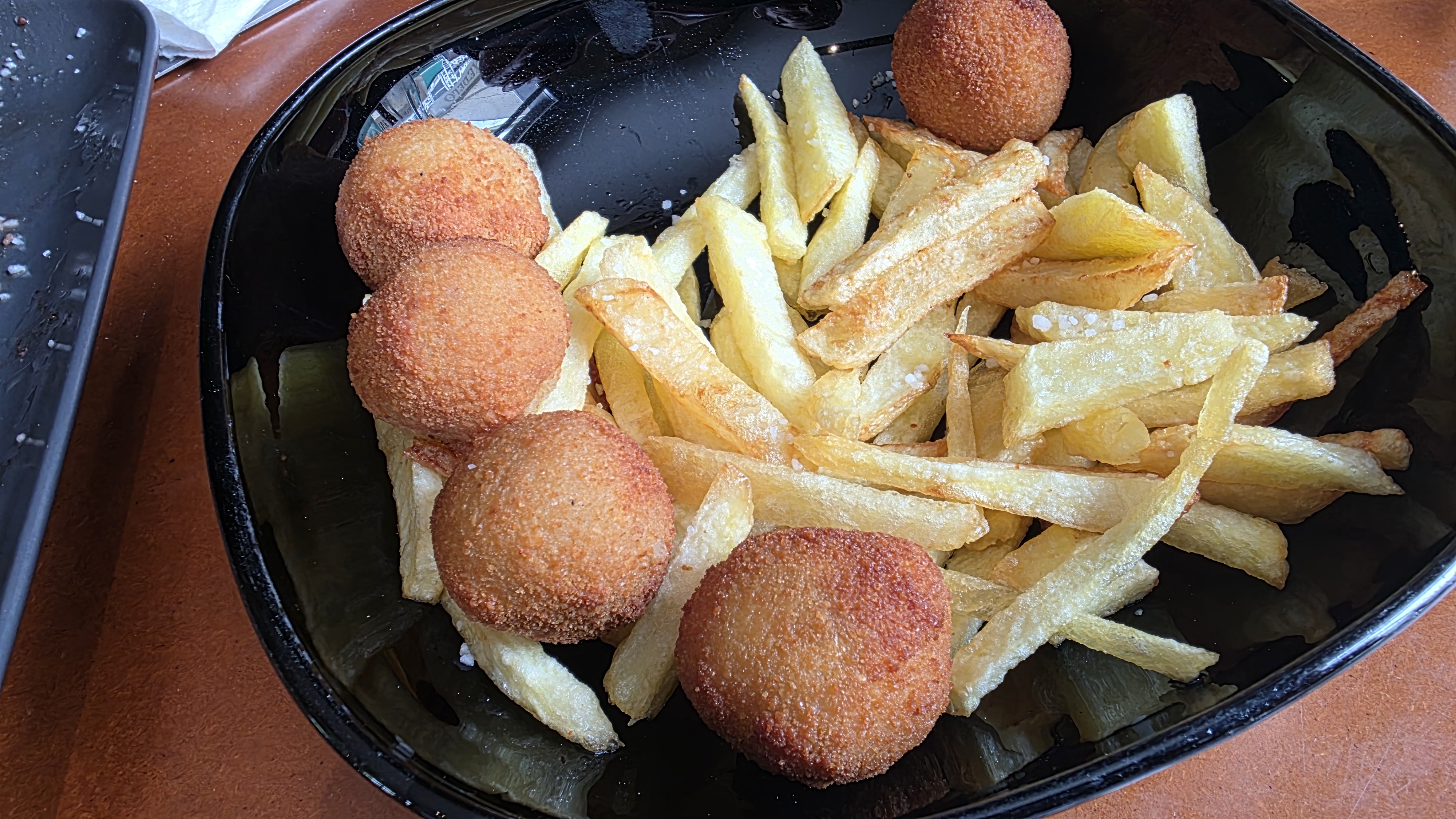 Après la douche et des vêtements secs nous sommes ressortis voir le village et déjeuner à une heure tardive même pour les espagnols : n’ayant pas trouvé à nous abriter nous n’avions pas pu manger nos pique-niques.