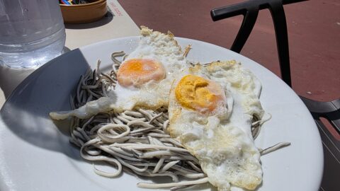 Nous continuons à suivre les traces du Camino del Mar que j’ai téléchargé sur Wikiloc et nous n’avons pas eu de gros problèmes pour les suivre à part une portion de sentier envahie par les genets scorpions que nous avons abandonnée pour prendre un peu de route.