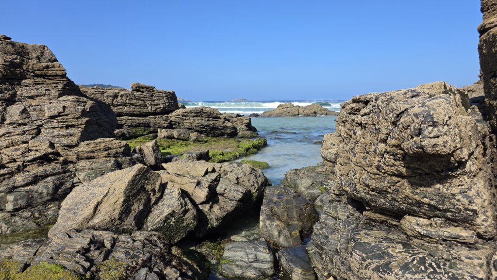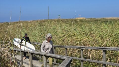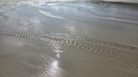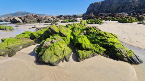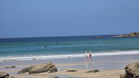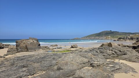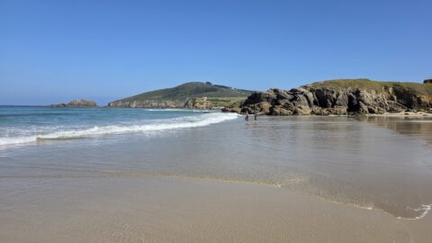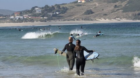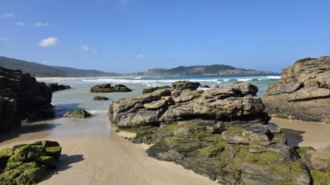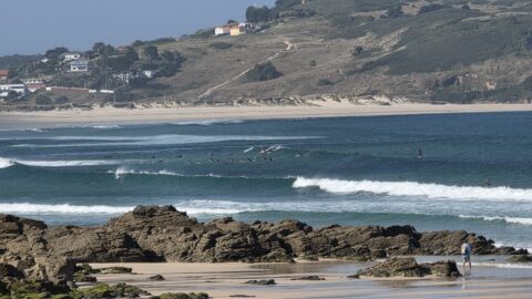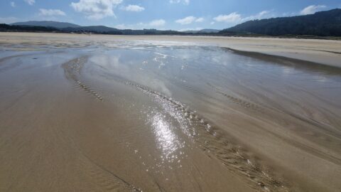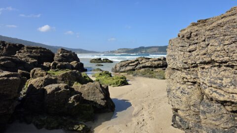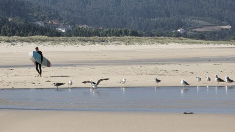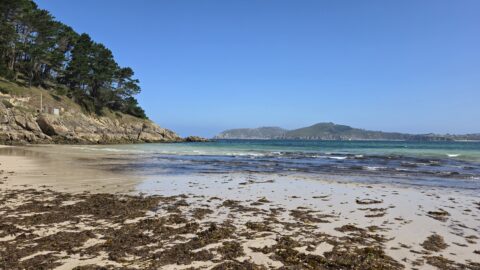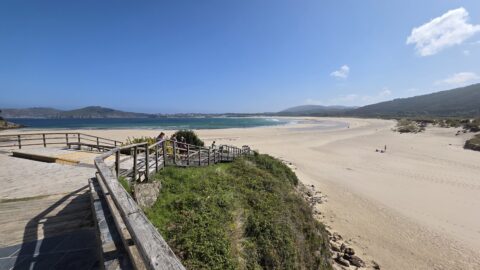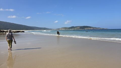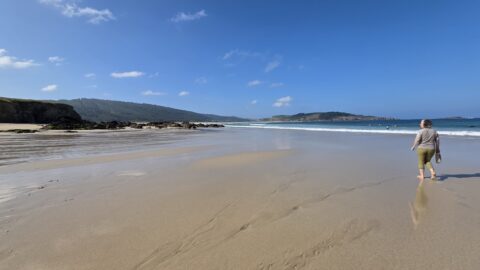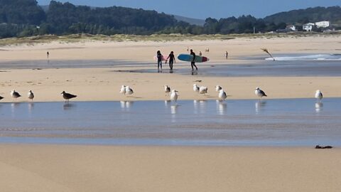 Ce matin nous avons traversé (aller et retour) la belle et longue plage de San Xurxo.
