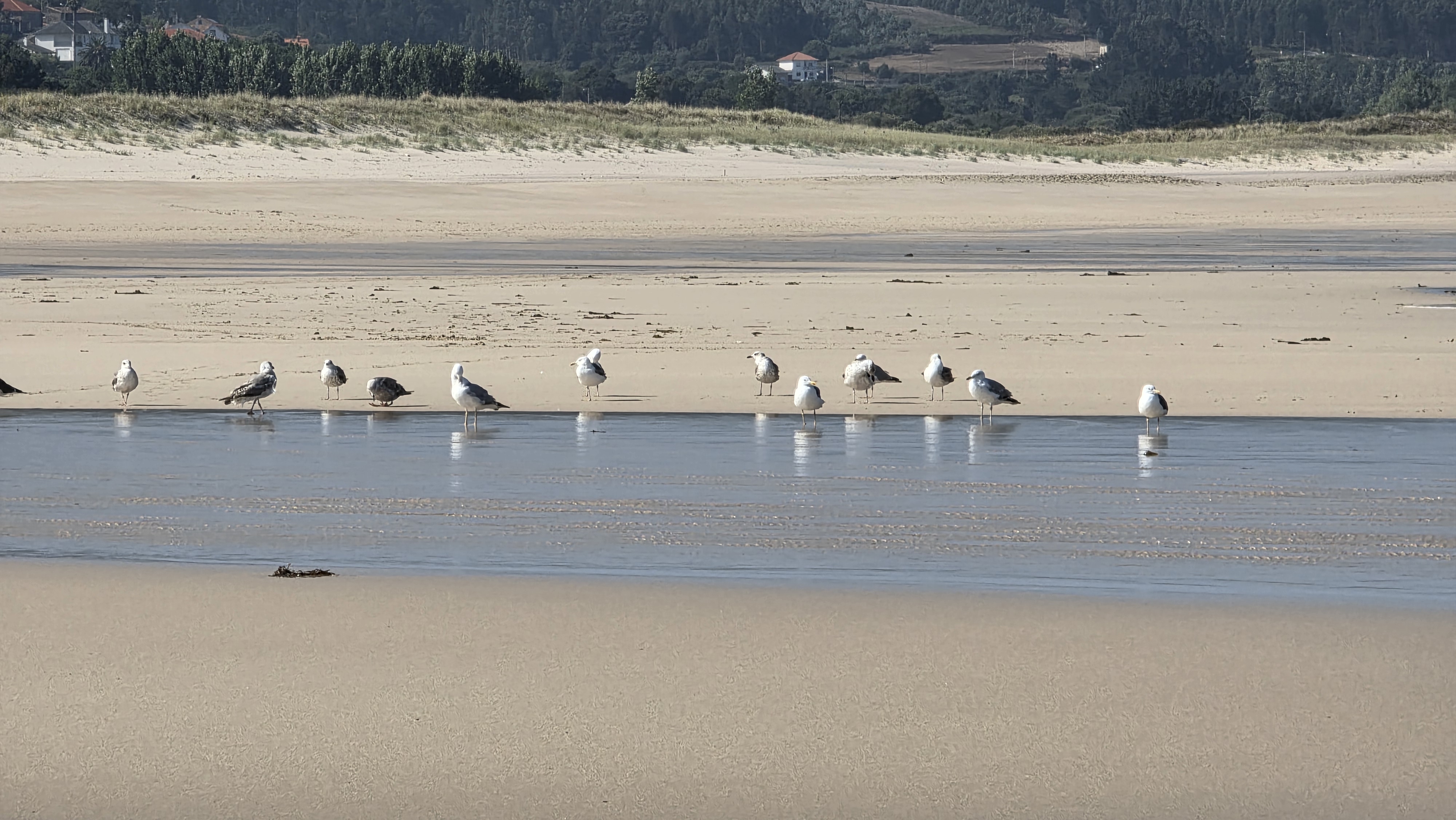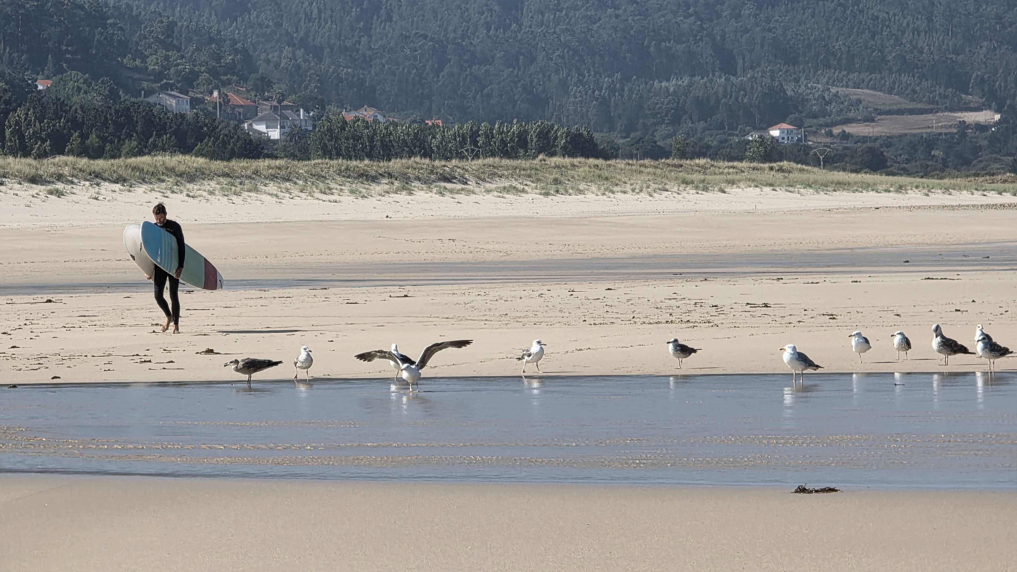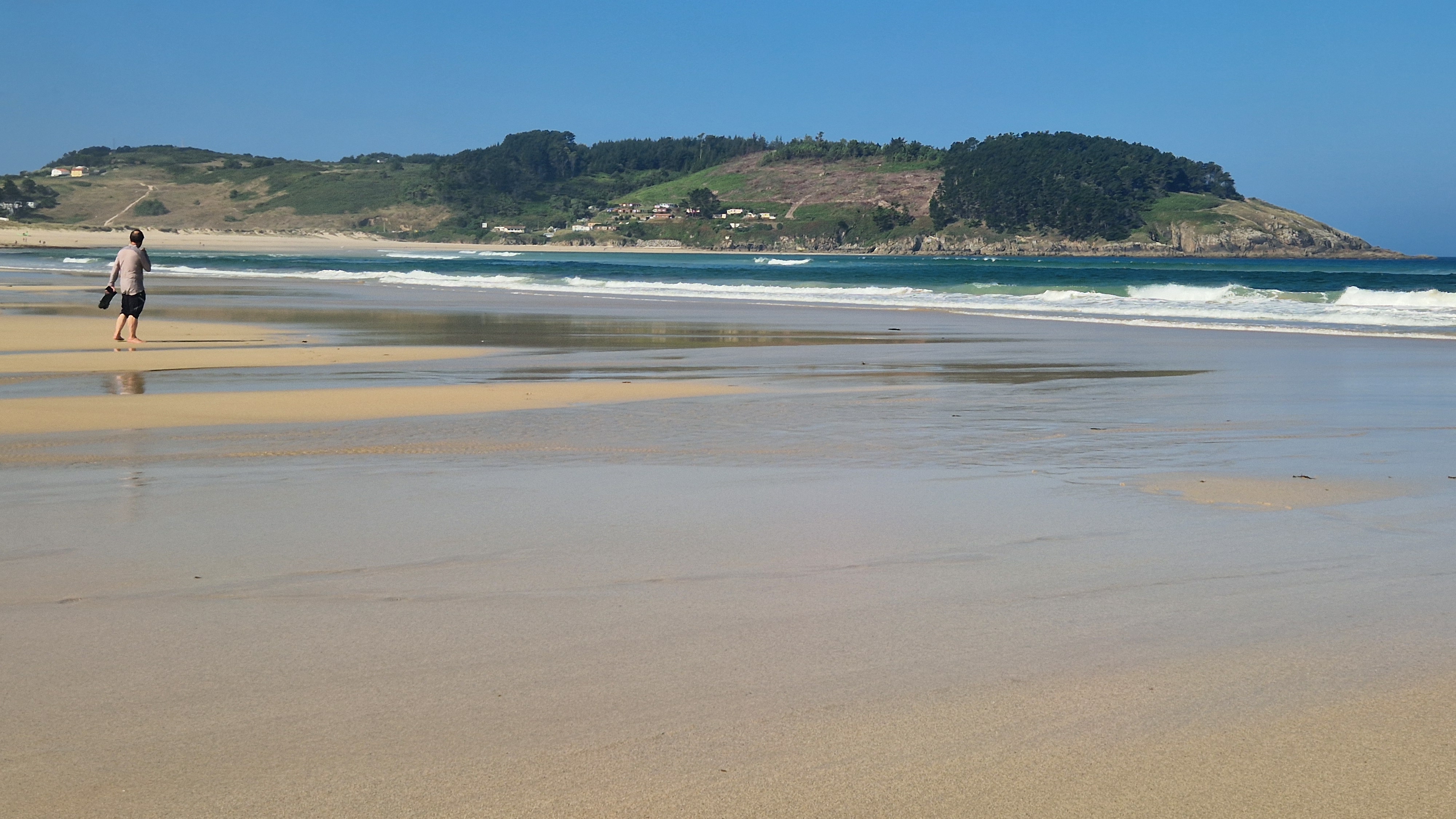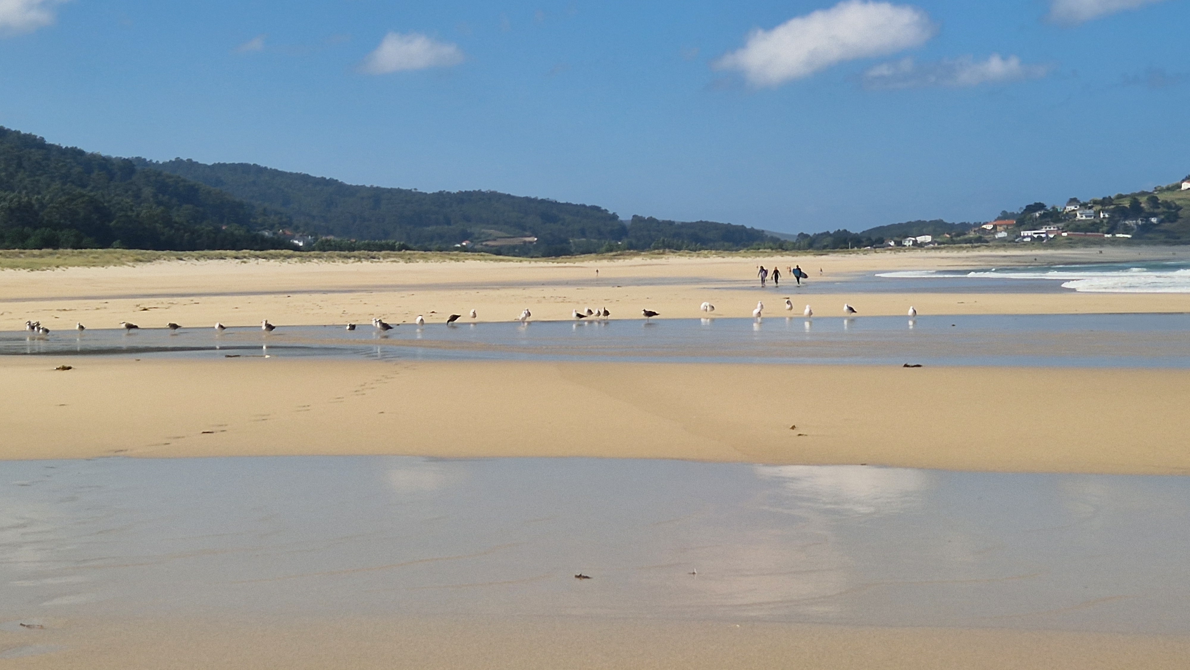 Ce matin nous avons traversé (aller et retour) la belle et longue plage de San Xurxo.