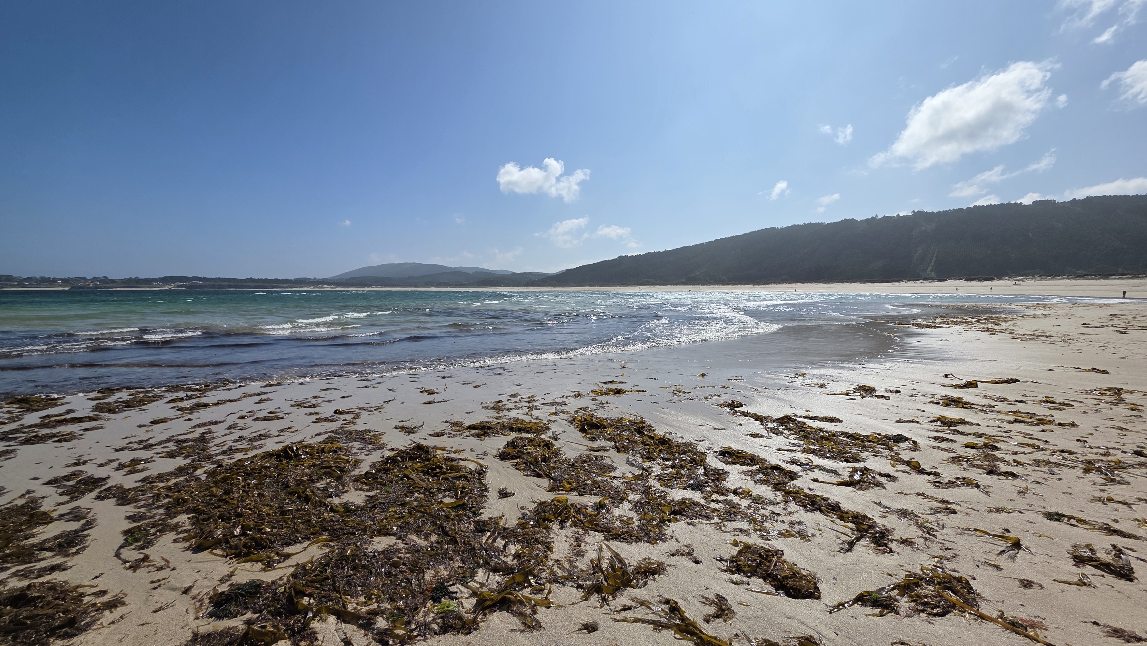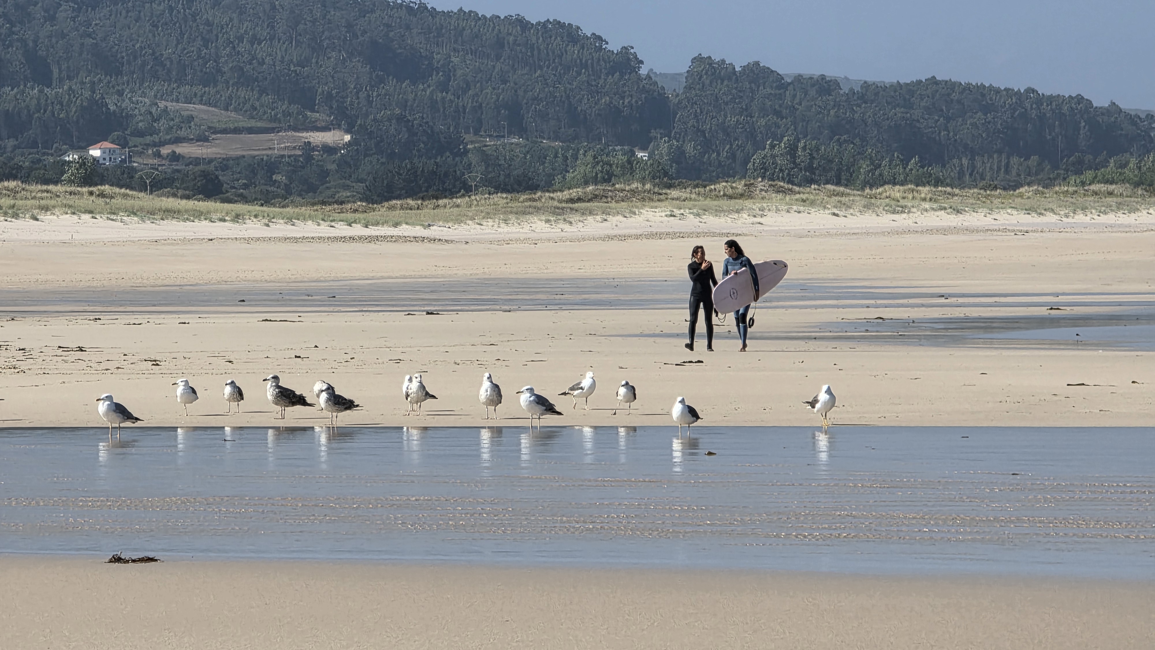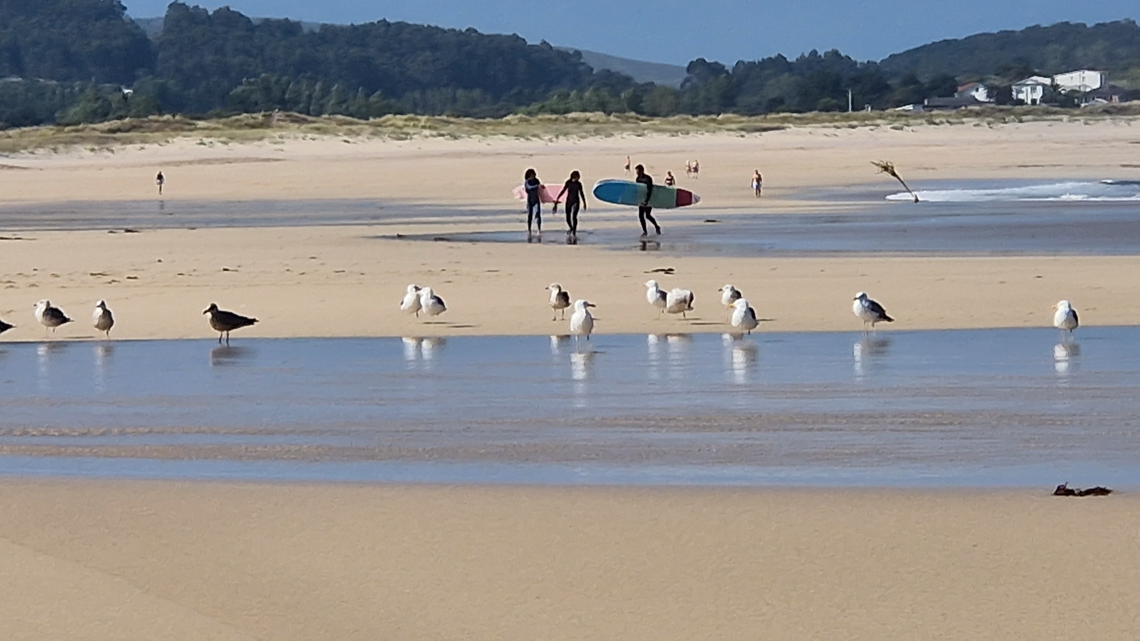 Ce matin nous avons traversé (aller et retour) la belle et longue plage de San Xurxo.