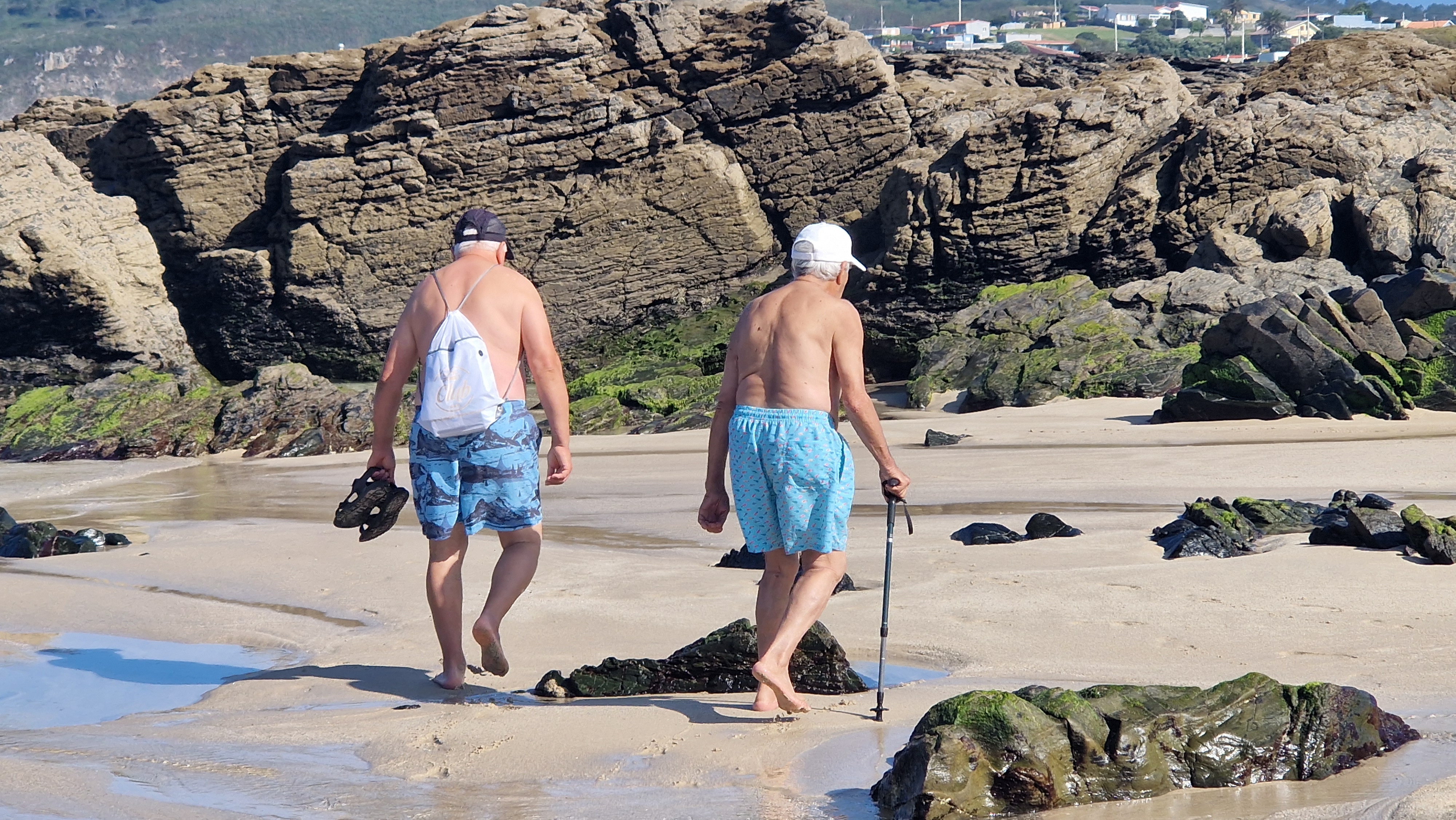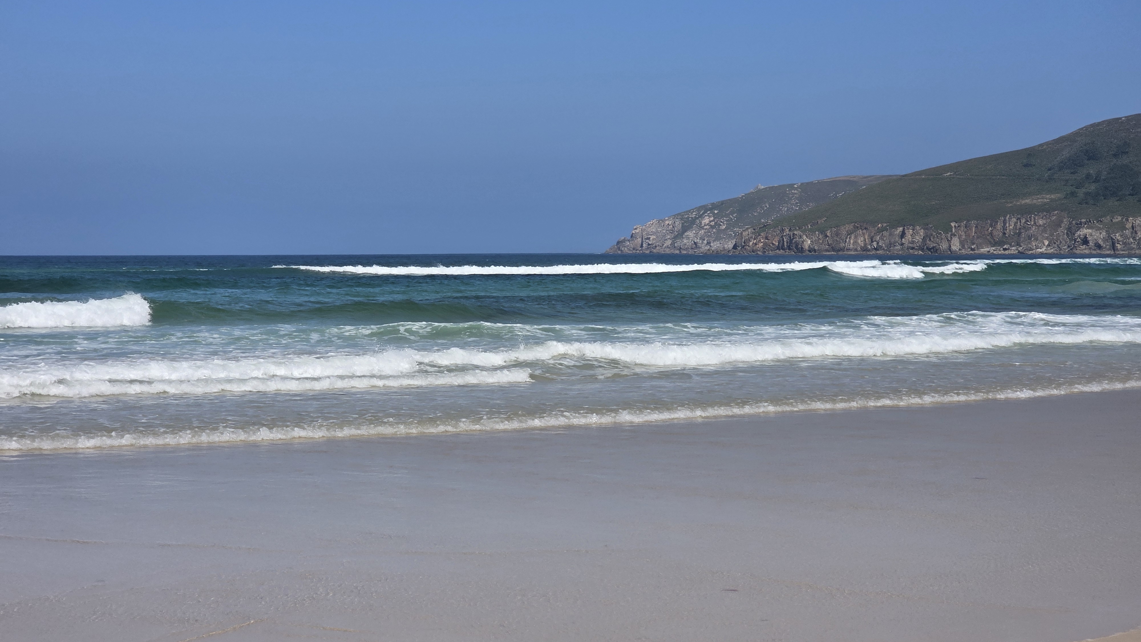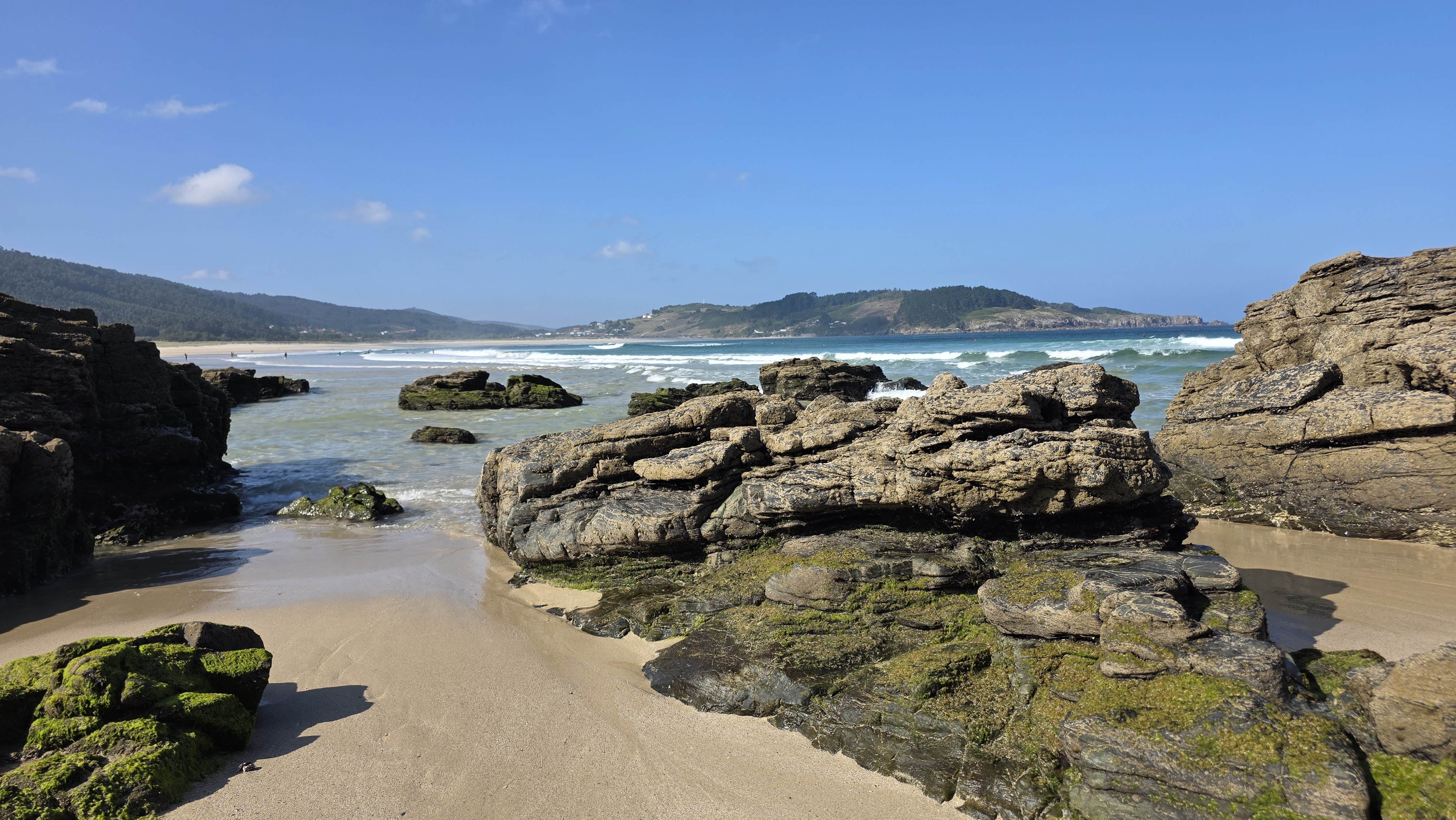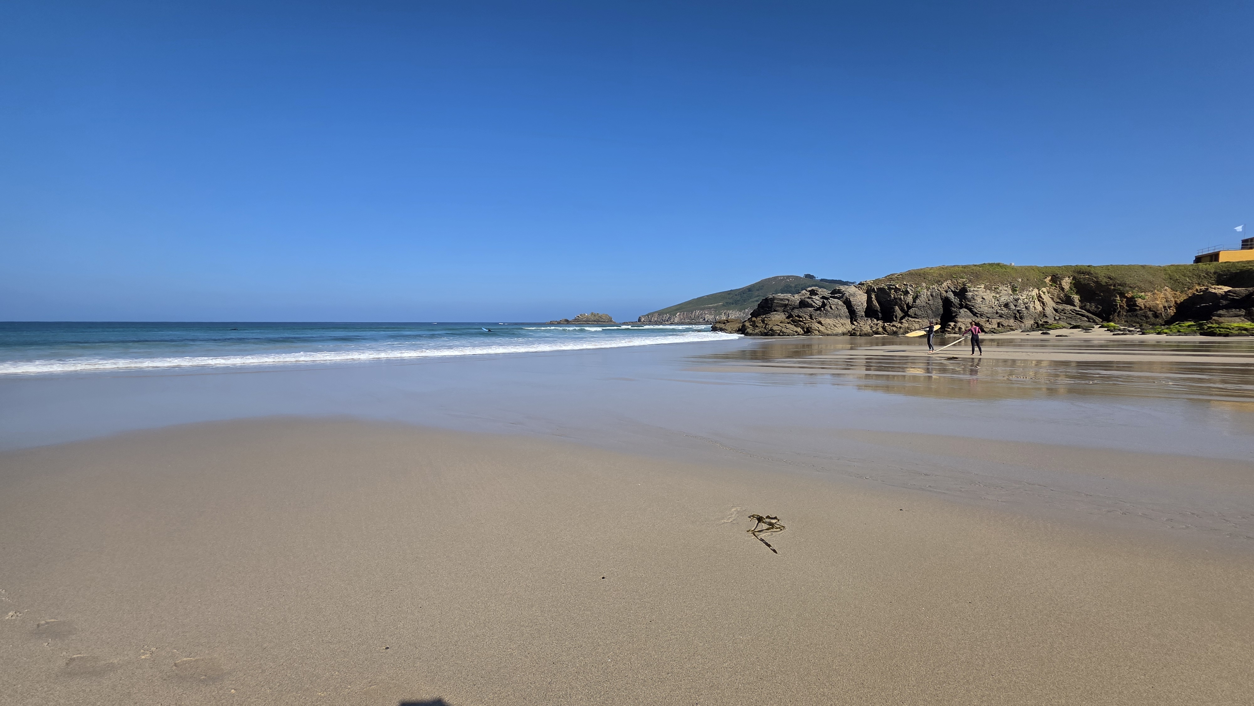 Ce matin nous avons traversé (aller et retour) la belle et longue plage de San Xurxo.