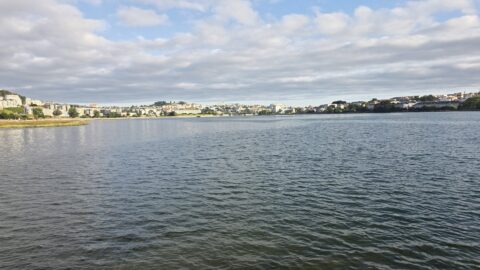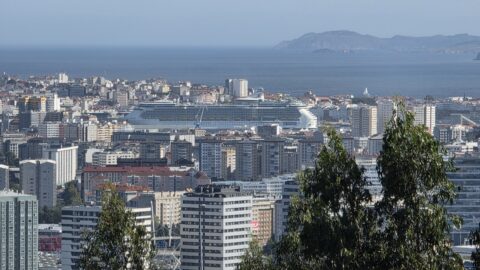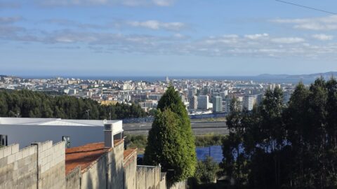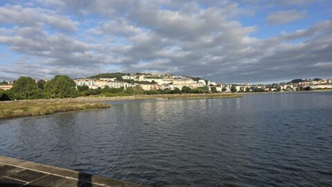 Après avoir traversé une autoroute nous avons eu des vues imprenable sur la ville de La Corogne, sa tour d’Hercule, son port où mouillait un beau de croisière gigantesque et le cap qui ferme la ria de Ferrol sur lequel nous sommes passés il y a quatre jours.