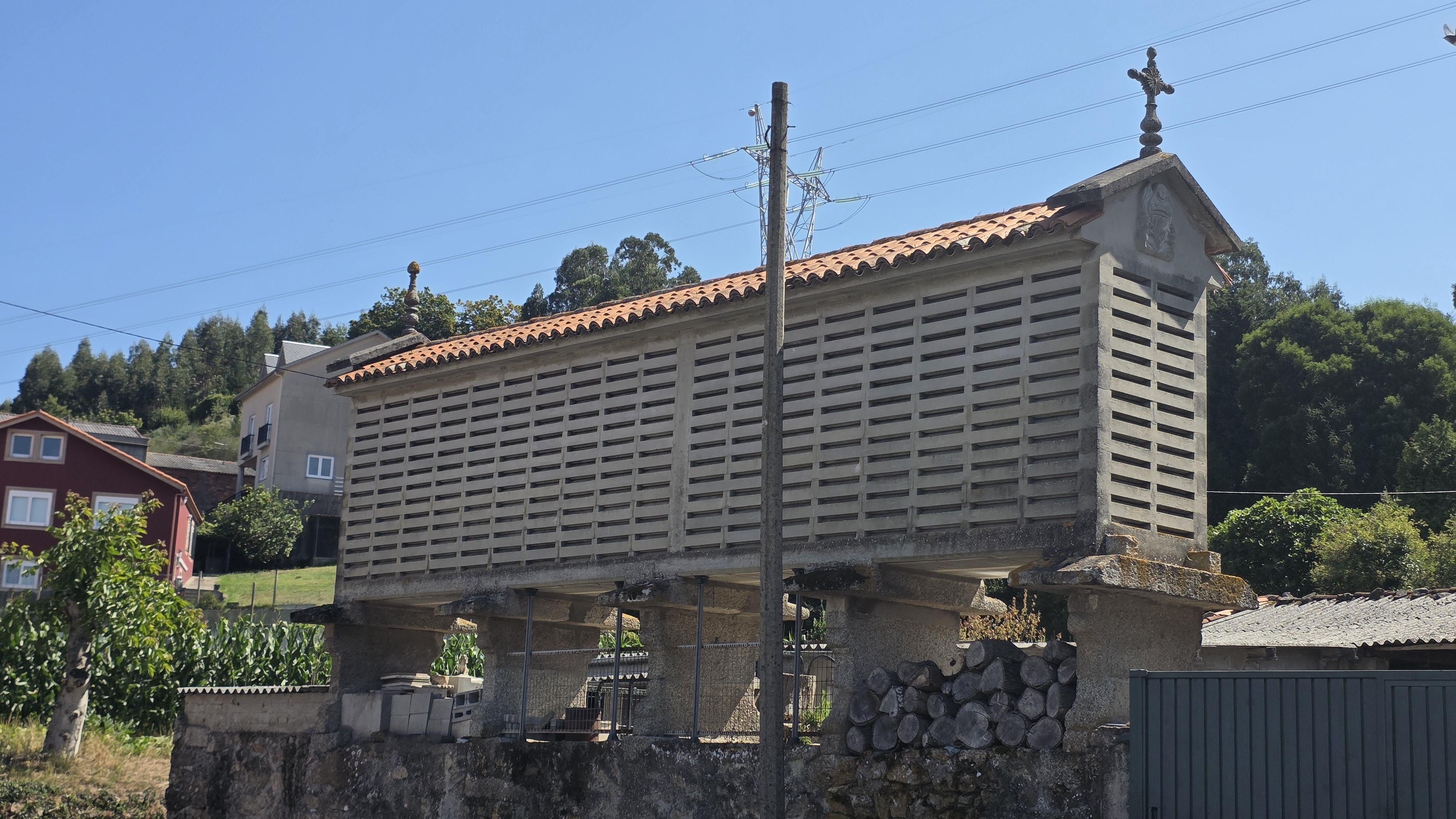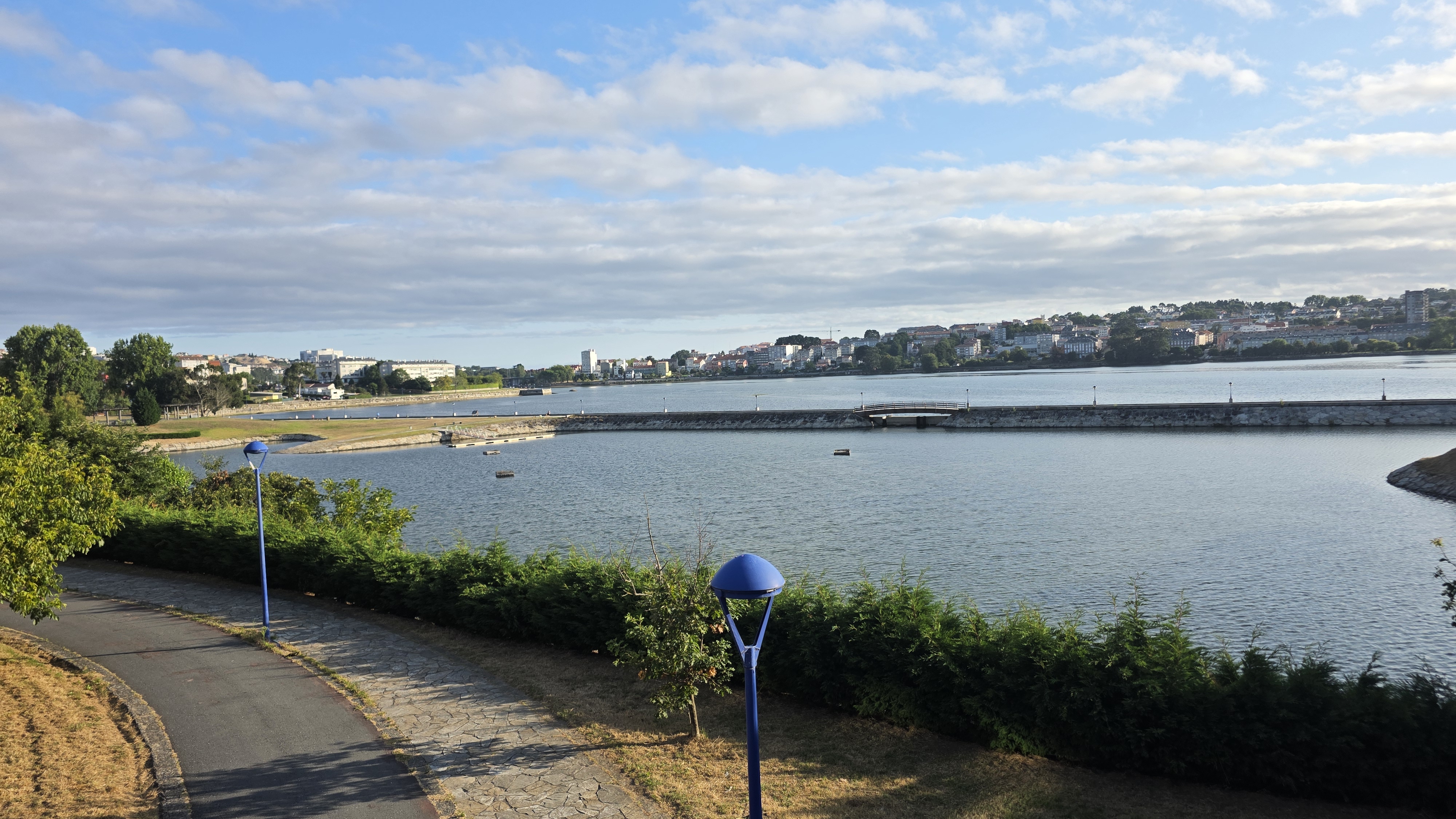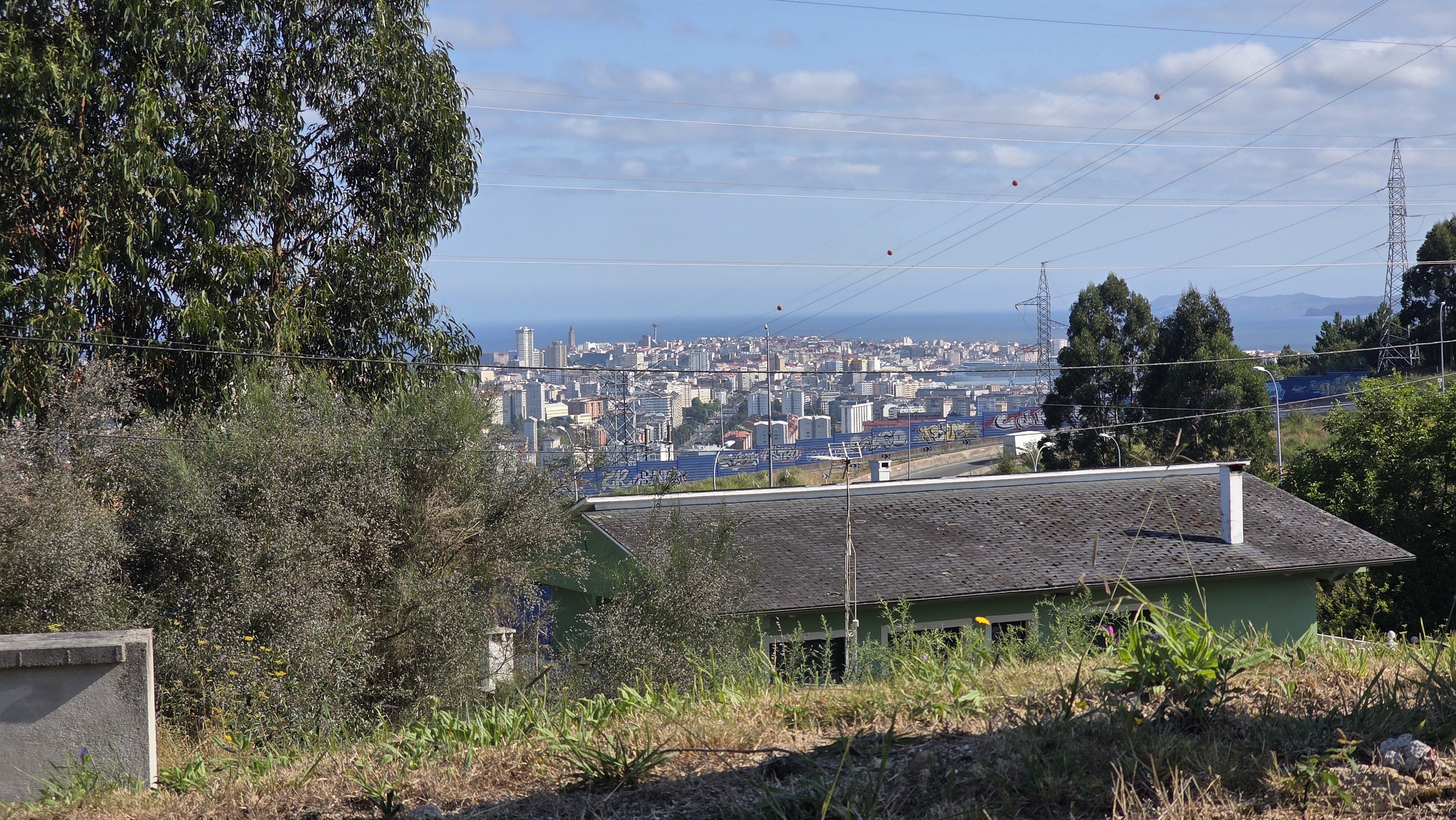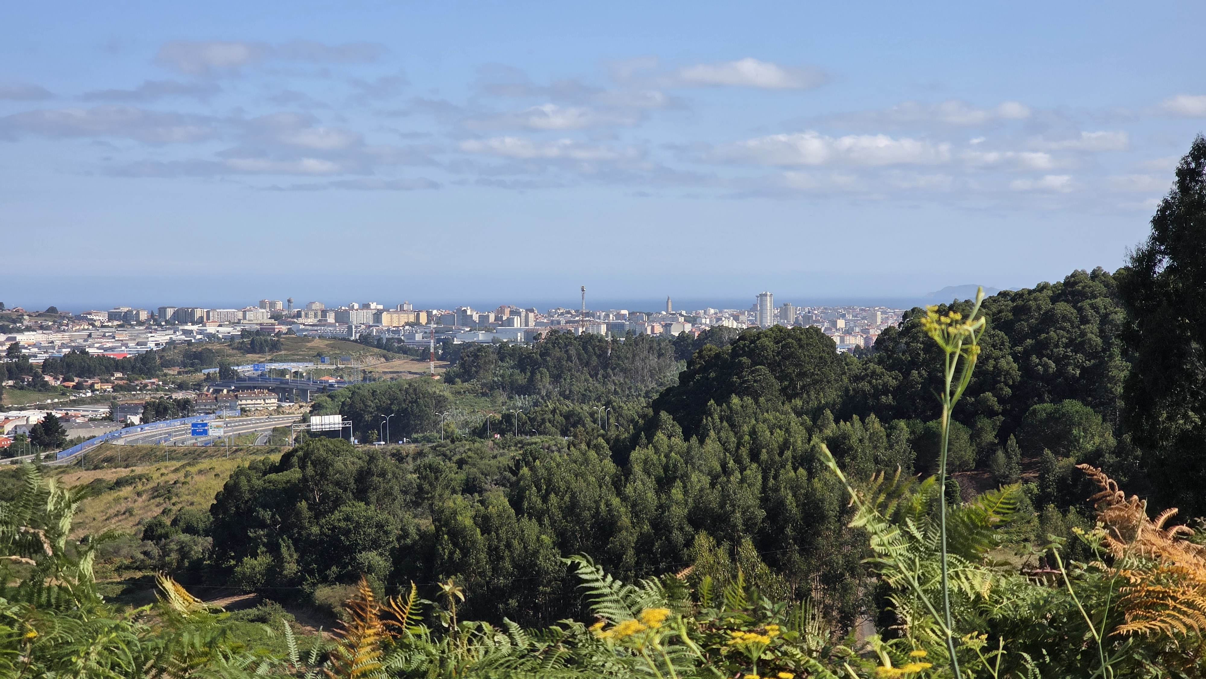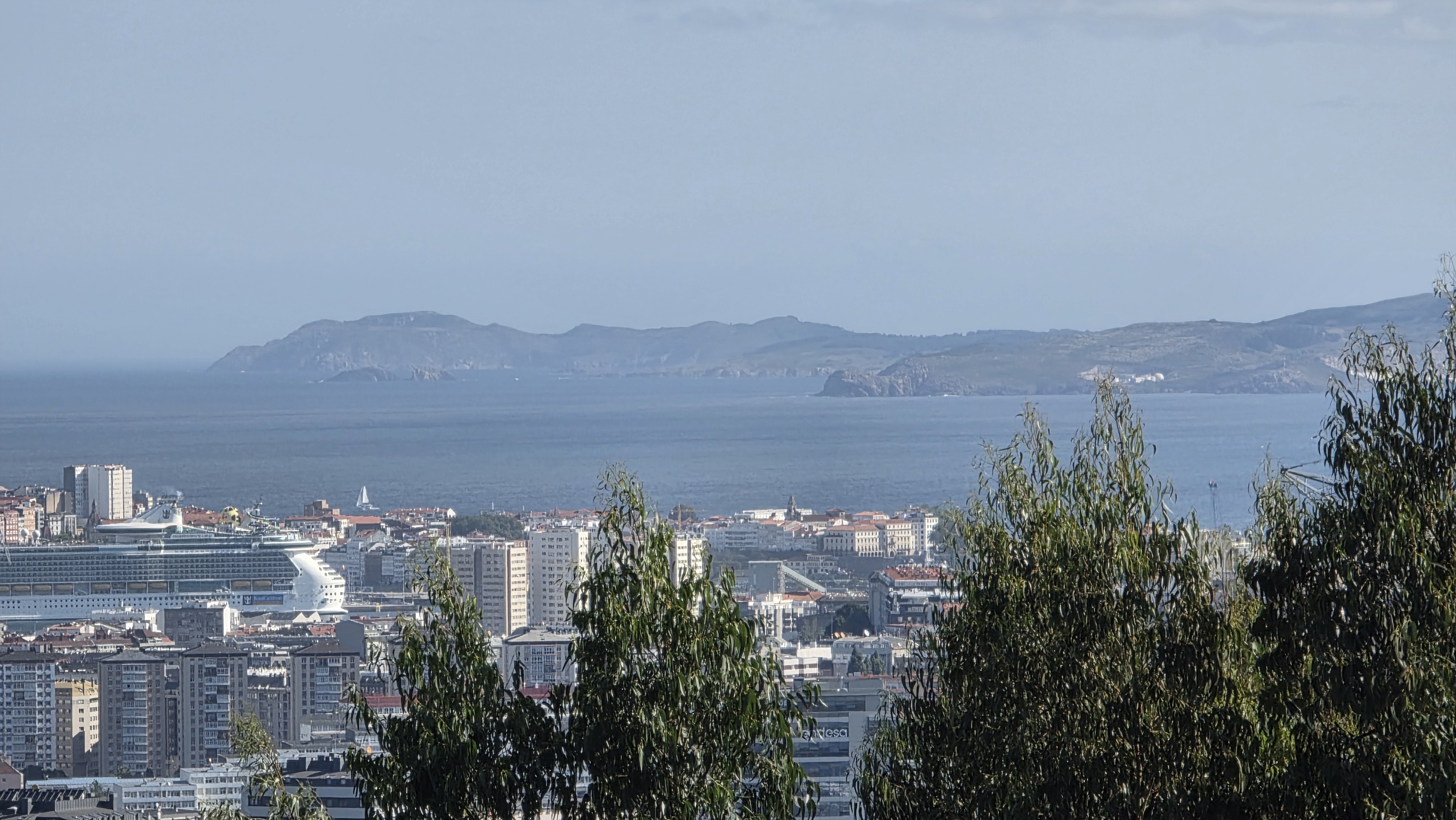 Après avoir traversé une autoroute nous avons eu des vues imprenable sur la ville de La Corogne, sa tour d’Hercule, son port où mouillait un beau de croisière gigantesque et le cap qui ferme la ria de Ferrol sur lequel nous sommes passés il y a quatre jours.