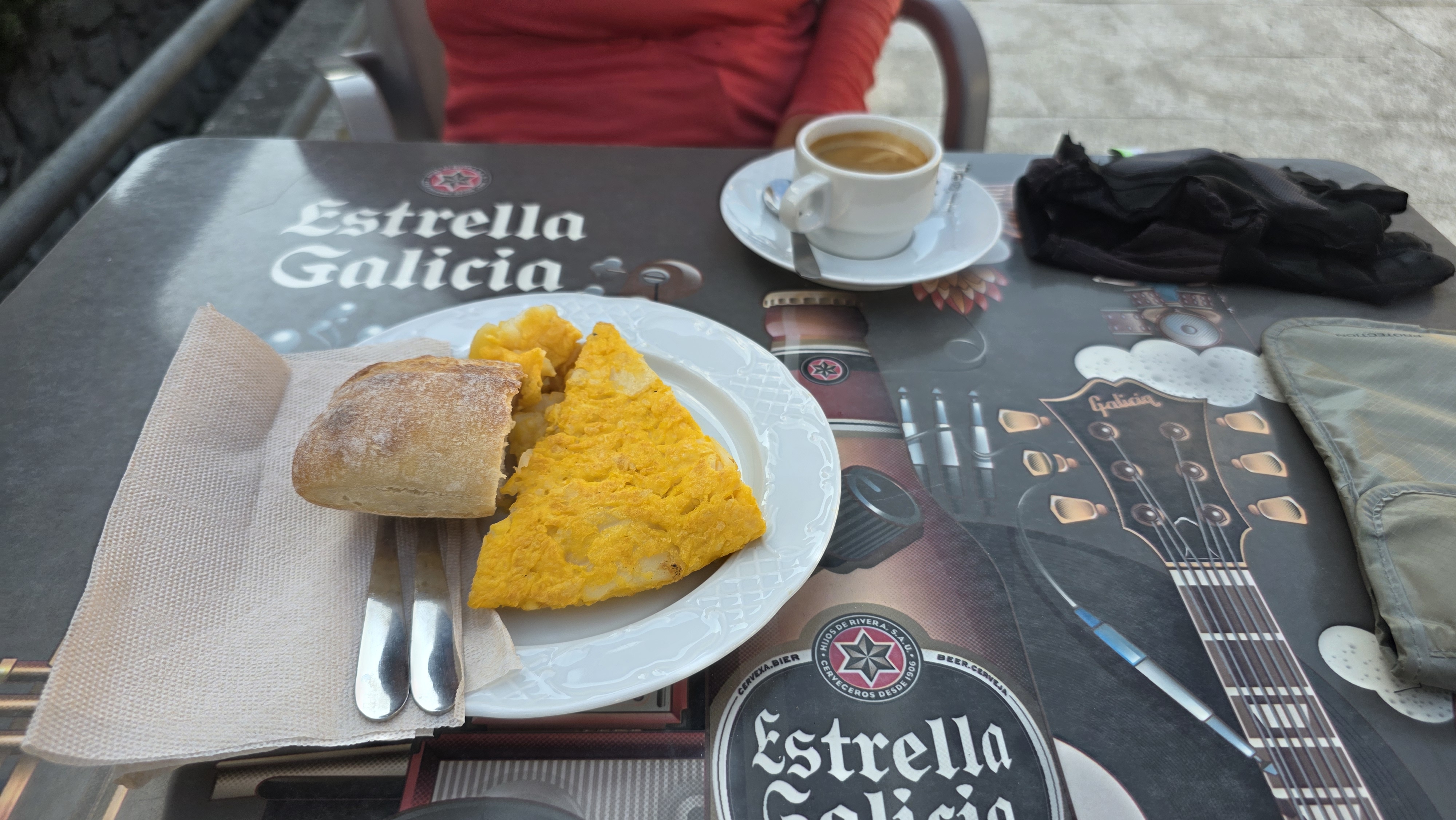 Nous avons ensuite obliqué vers l’ouest en empruntant de petites routes. A Castro, nous avons trouvé sur notre chemin la cafétéria d’une résidence universitaire et y avons pris un café accompagné d’une tortilla.