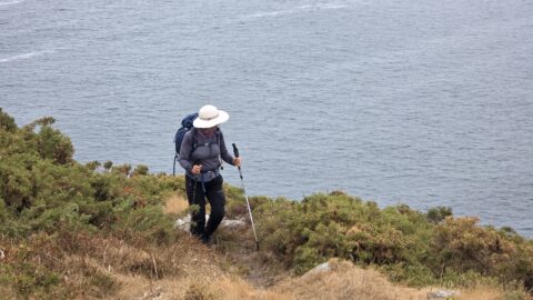 Il le quitte assez vite pour rester au plus près de la mer et passe sous le Parador de la Côte de la Mort pour grimper au mont Cachelmo.