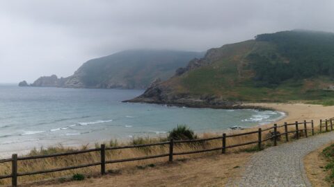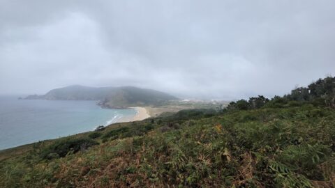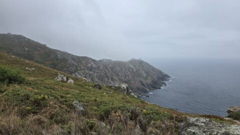 Nous avons ensuite rejoint le Camino dos Faros près de l’endroit où nous l’avions quitté hier pour le suivre pendant ses derniers kilomètres jusqu’à son terme au phare du cap de Fisterra.