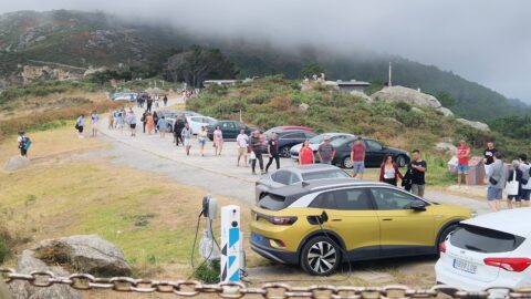 Après un bain de foule et un jus de pèche en terrasse nous sommes rentrés par le Camino de Fisterra qui longe la route.