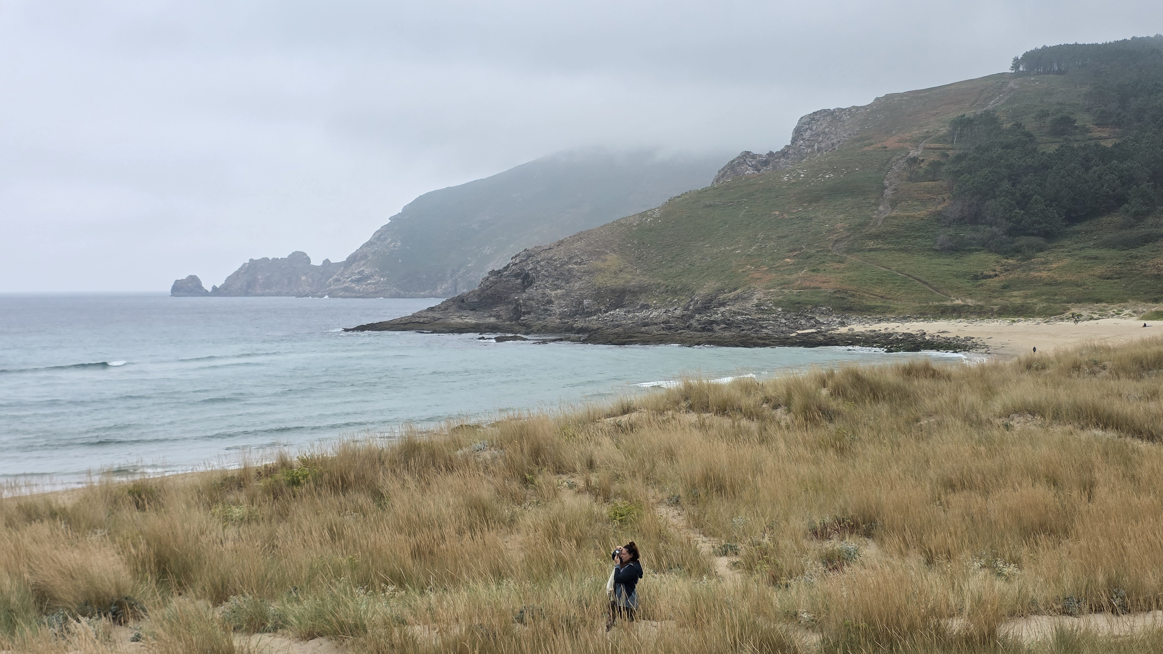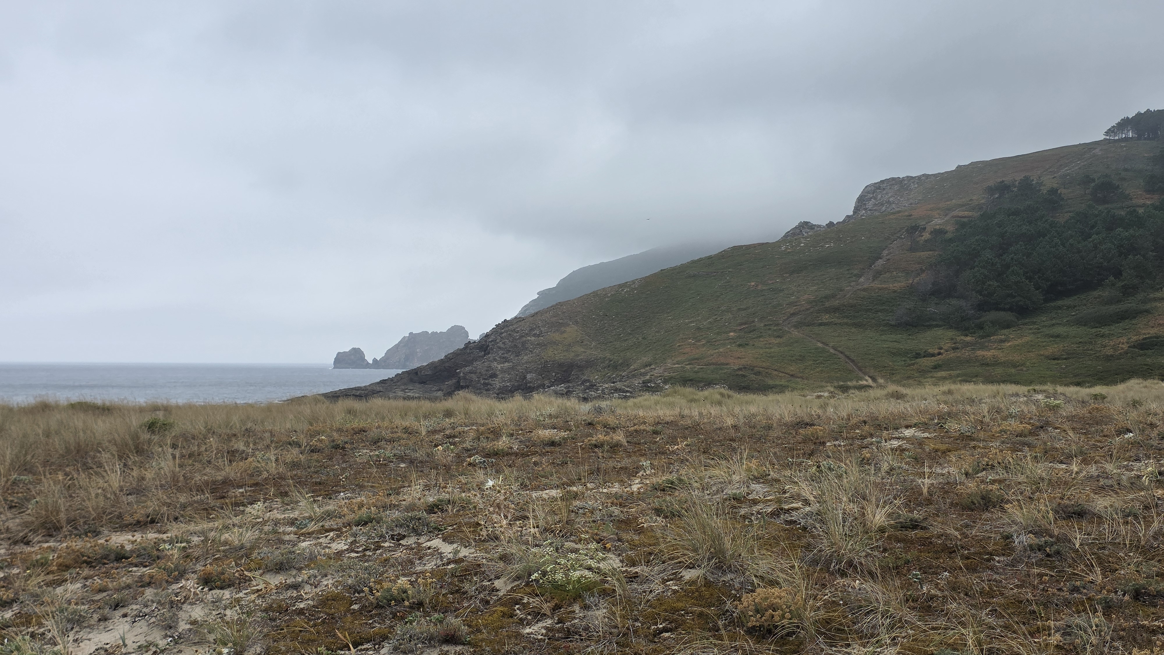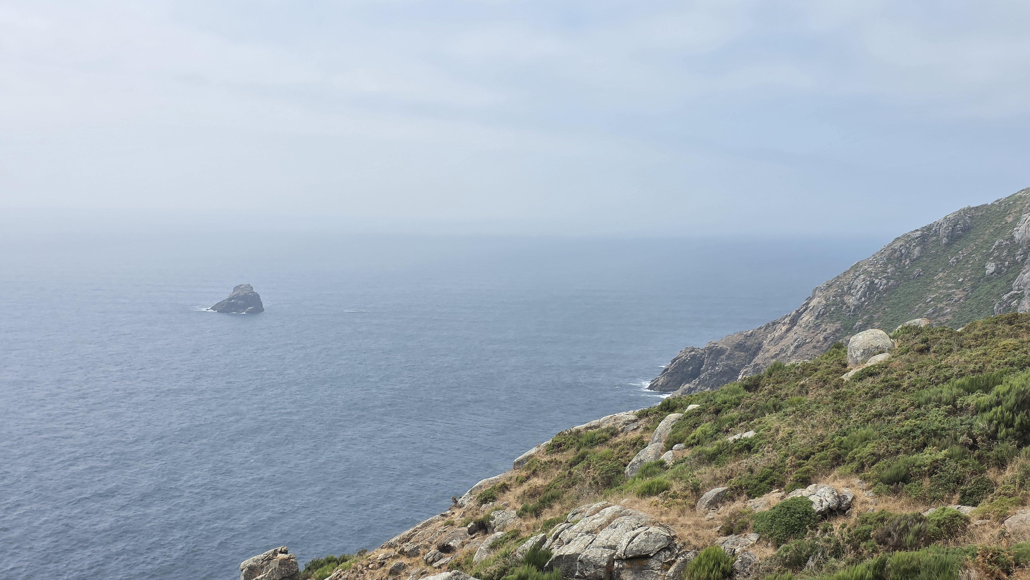 Nous avons ensuite rejoint le Camino dos Faros près de l’endroit où nous l’avions quitté hier pour le suivre pendant ses derniers kilomètres jusqu’à son terme au phare du cap de Fisterra.