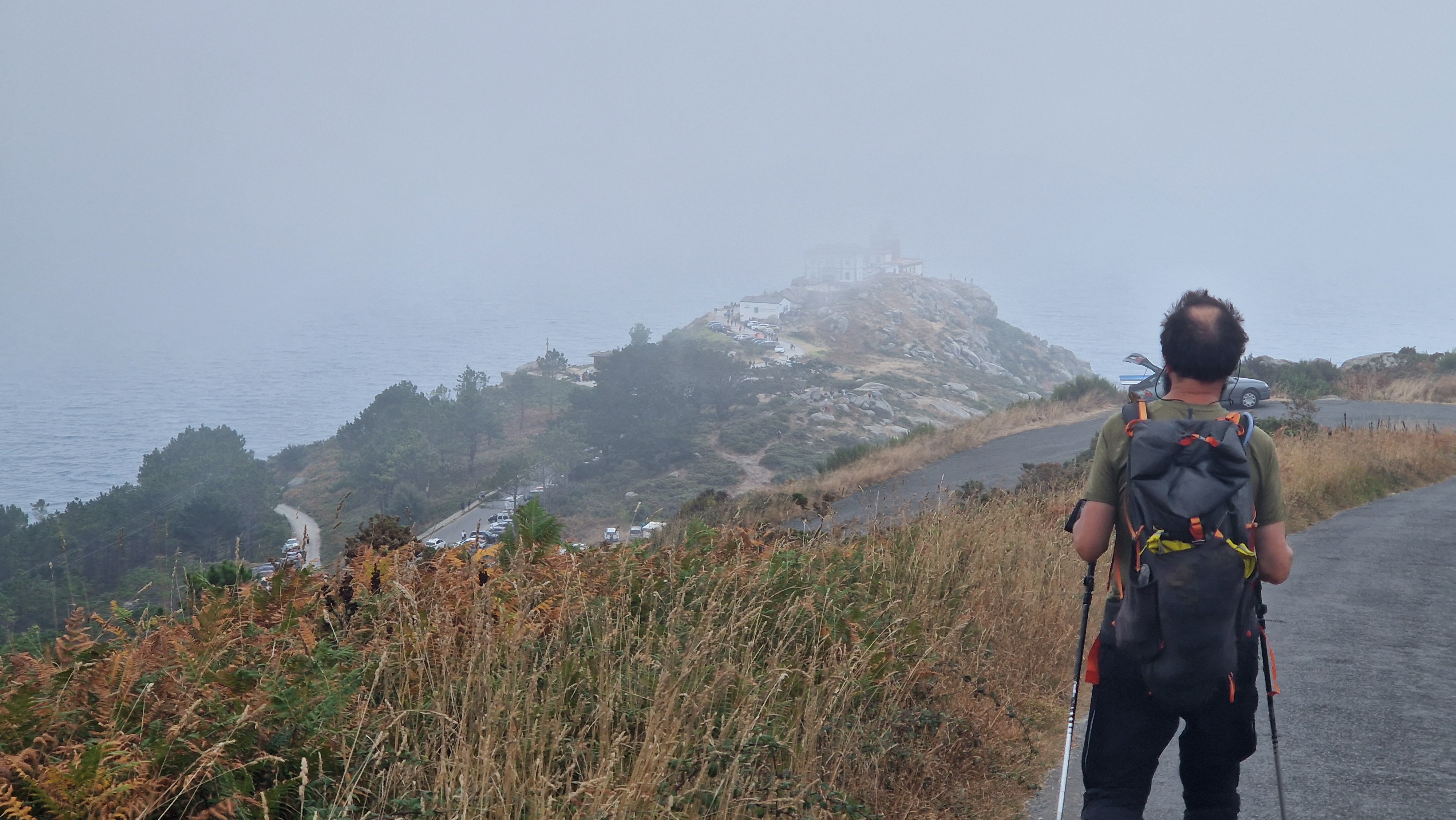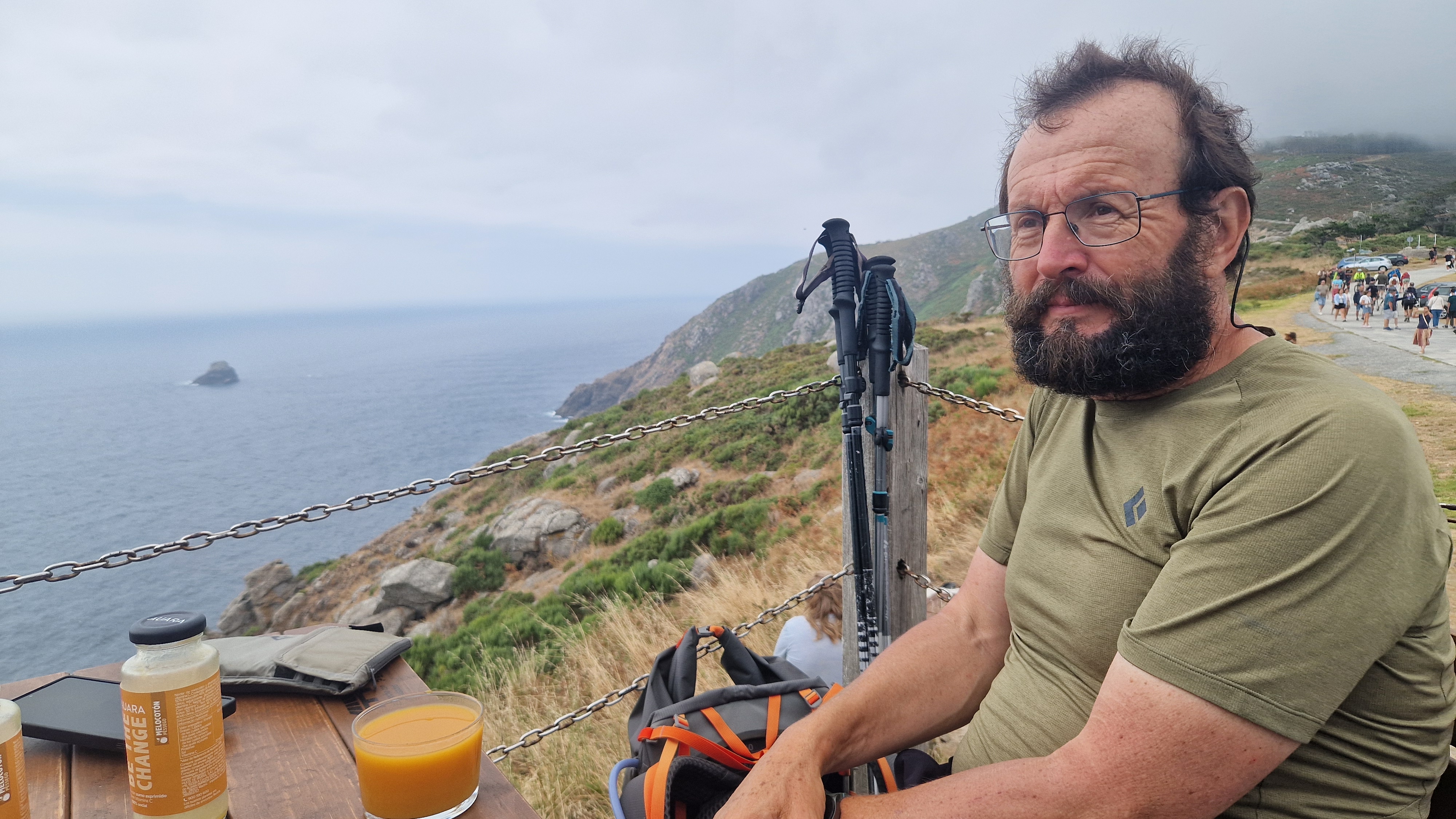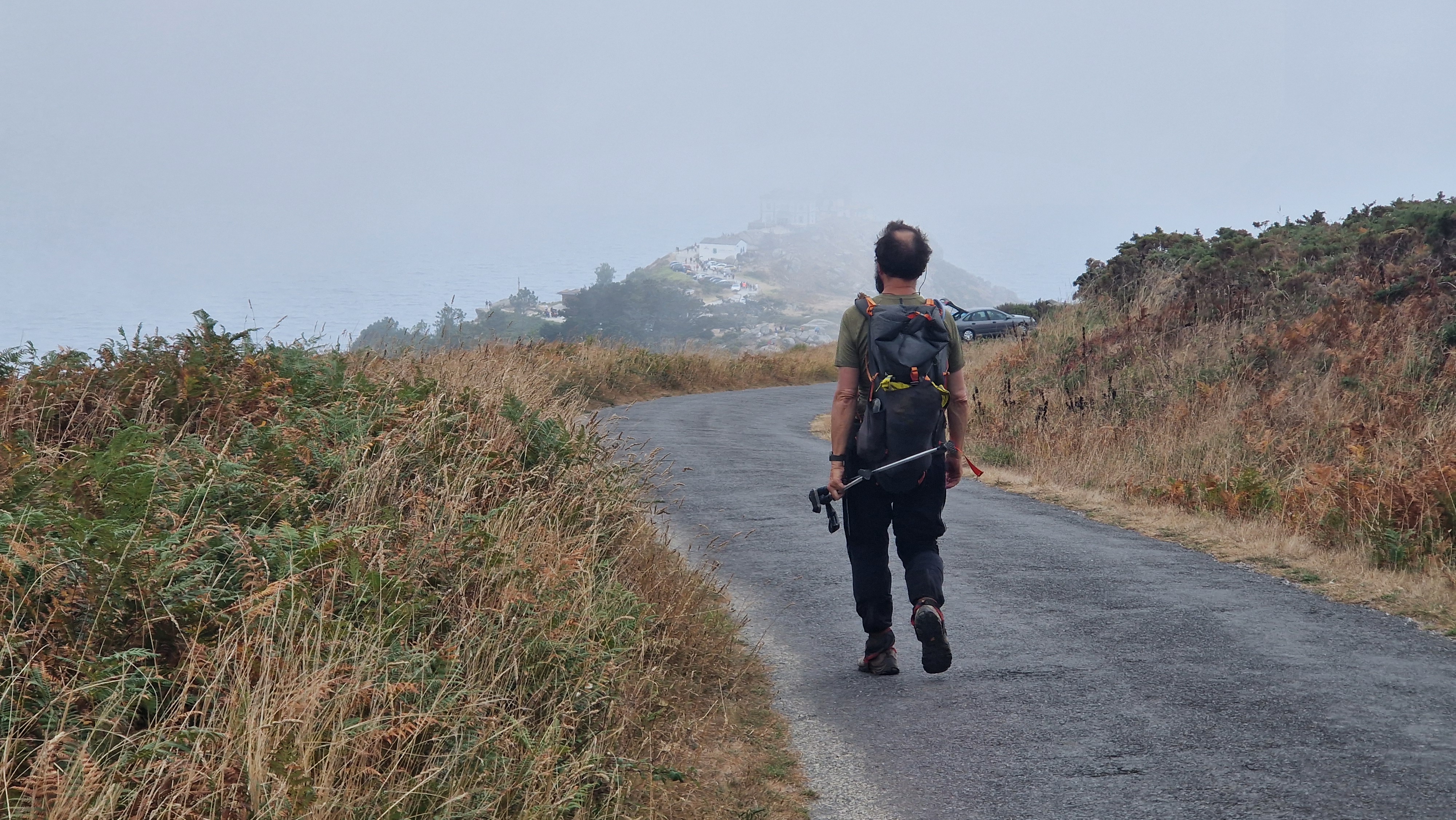 Après un bain de foule et un jus de pèche en terrasse nous sommes rentrés par le Camino de Fisterra qui longe la route.