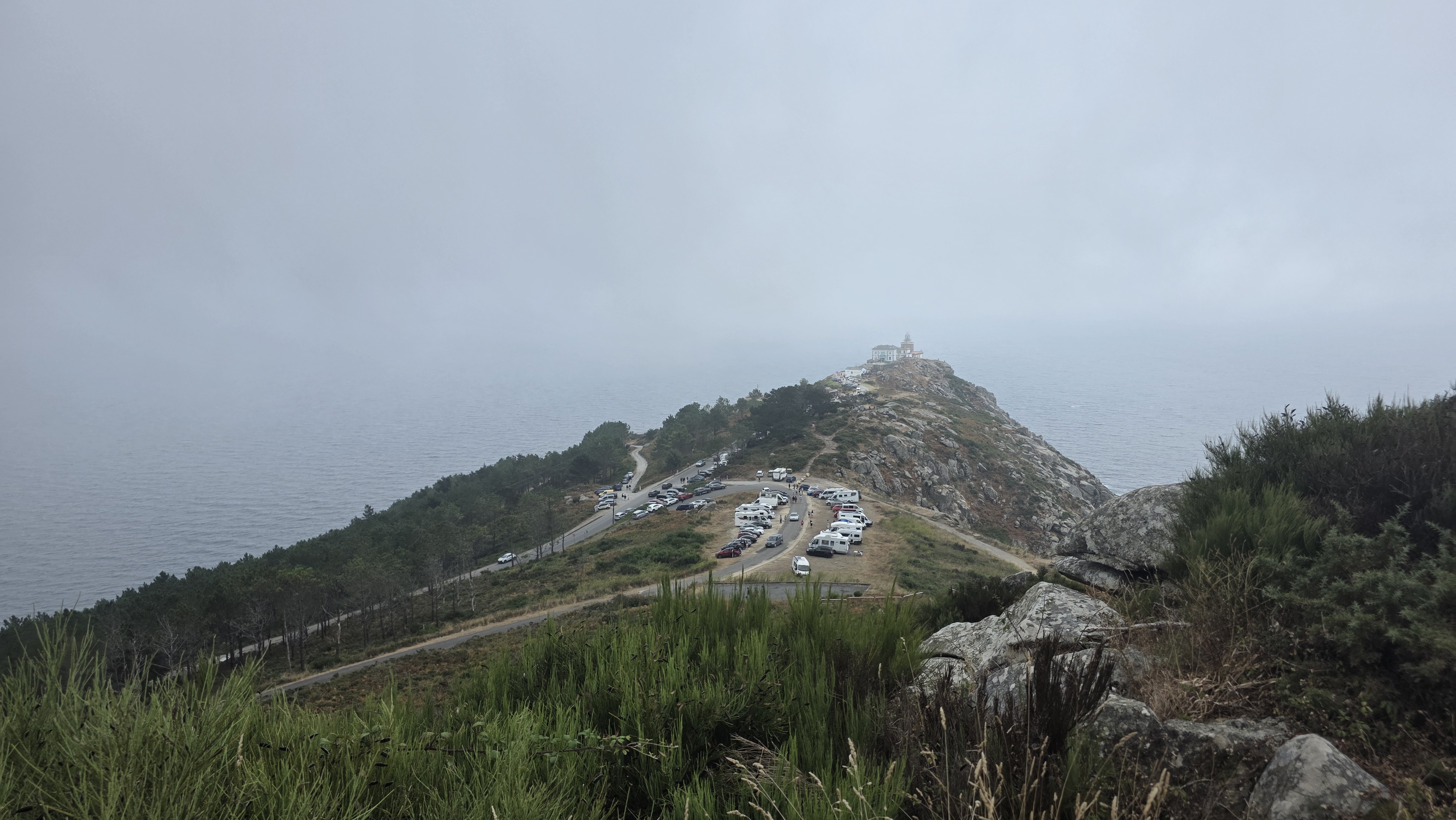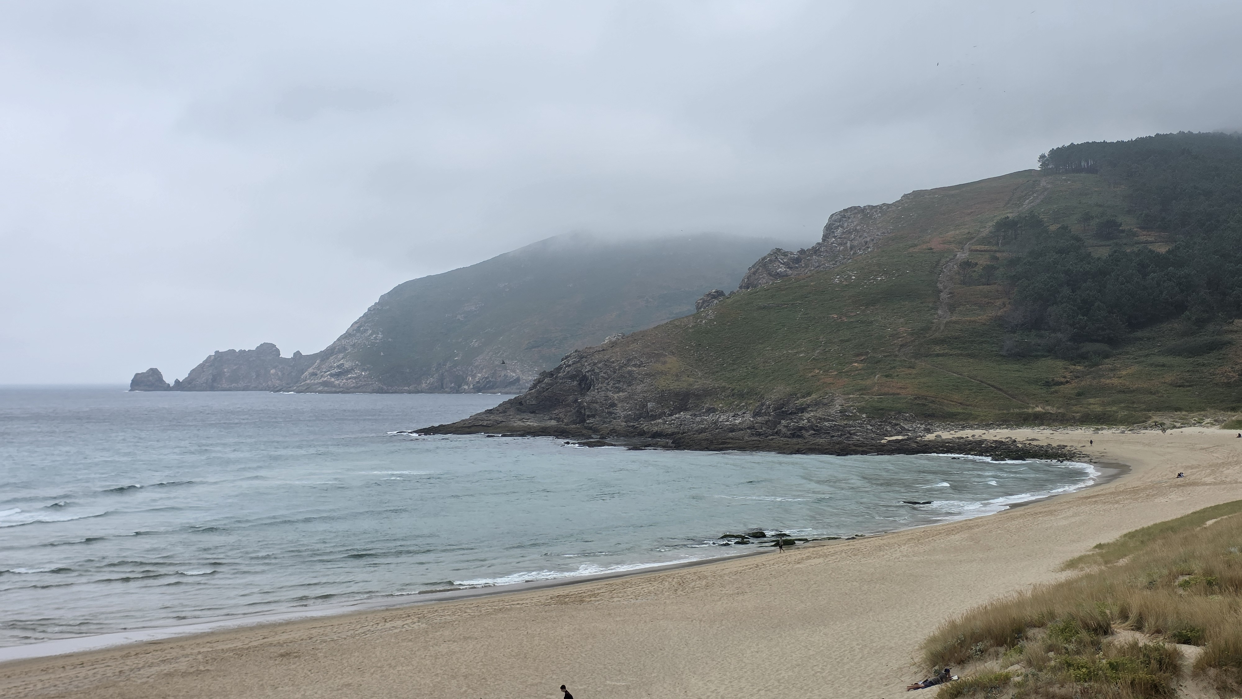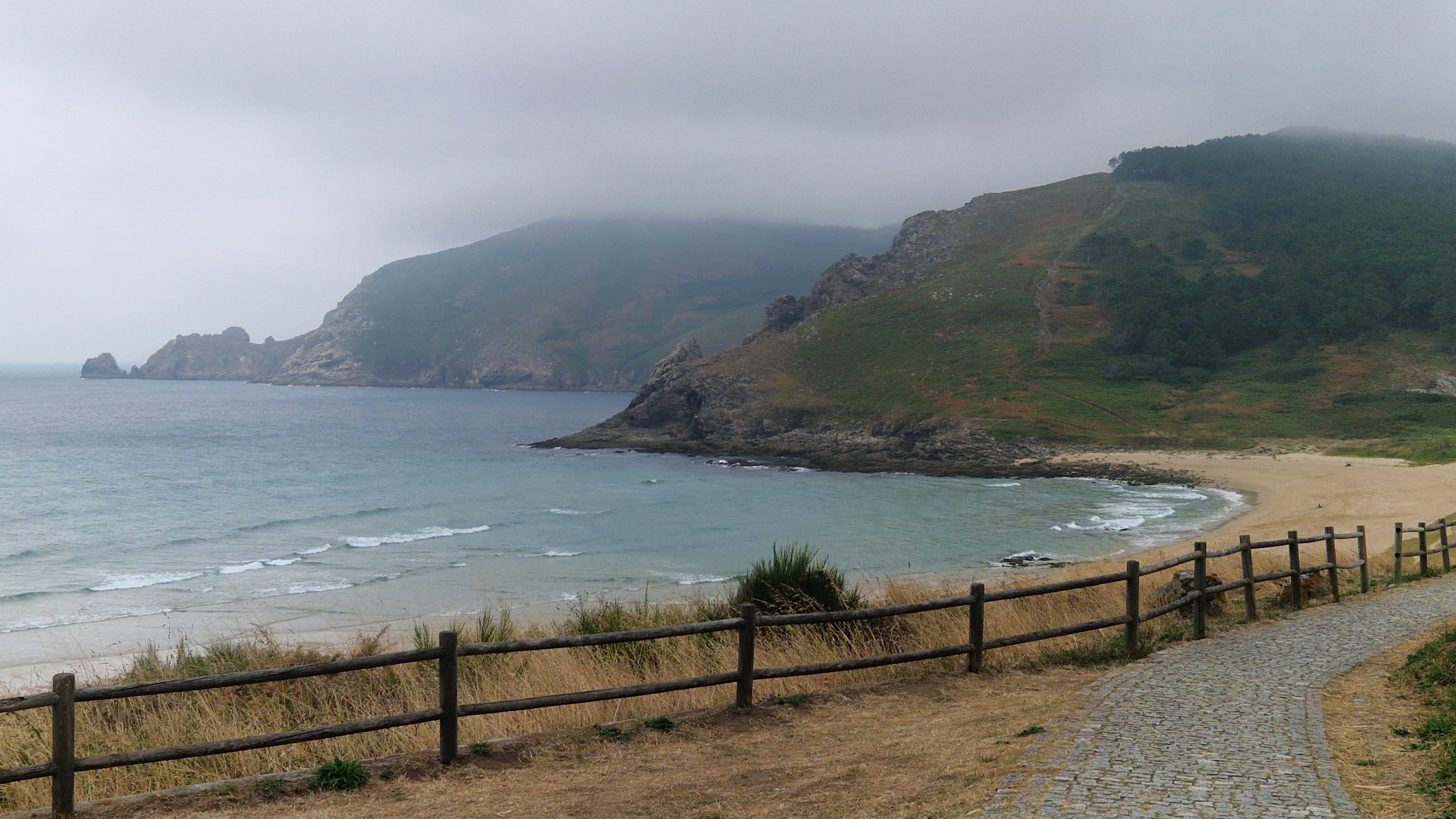 Après un bain de foule et un jus de pèche en terrasse nous sommes rentrés par le Camino de Fisterra qui longe la route.