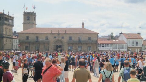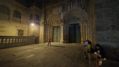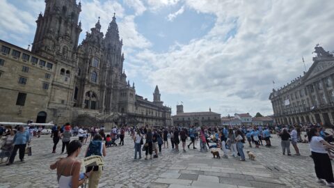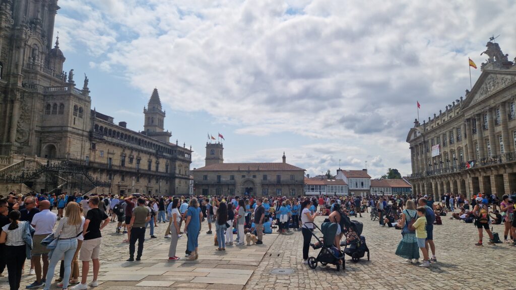 Comme il se doit, il est situé sur la place de la cathédrale et nous en sommes sortis pour prendre un bain de foule, entre pèlerins et groupes de touristes.