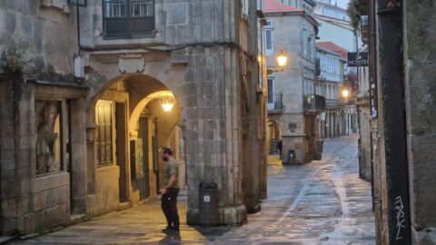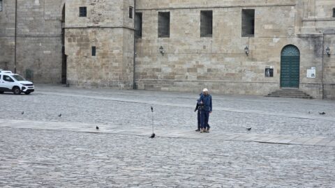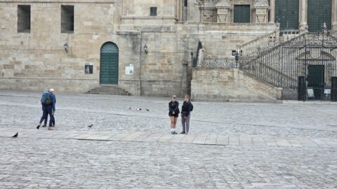 Nous avons ensuite flâné dans les rues de la ville encore déserte. Sur la place de la cathédrale, quelques rares pèlerins commençaient à se prendre en photos dans les poses les plus diverses.