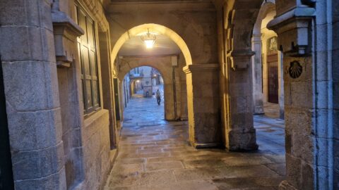 Nous sommes rentrés à l’hôtel pour le petit déjeuner et nous avons changé d’hôtel en fin de matinée : nous avons troqué notre ancien couvent franciscain pour l’ancien hôpital royal pour pèlerins dans lequel s’est installé un Parador.