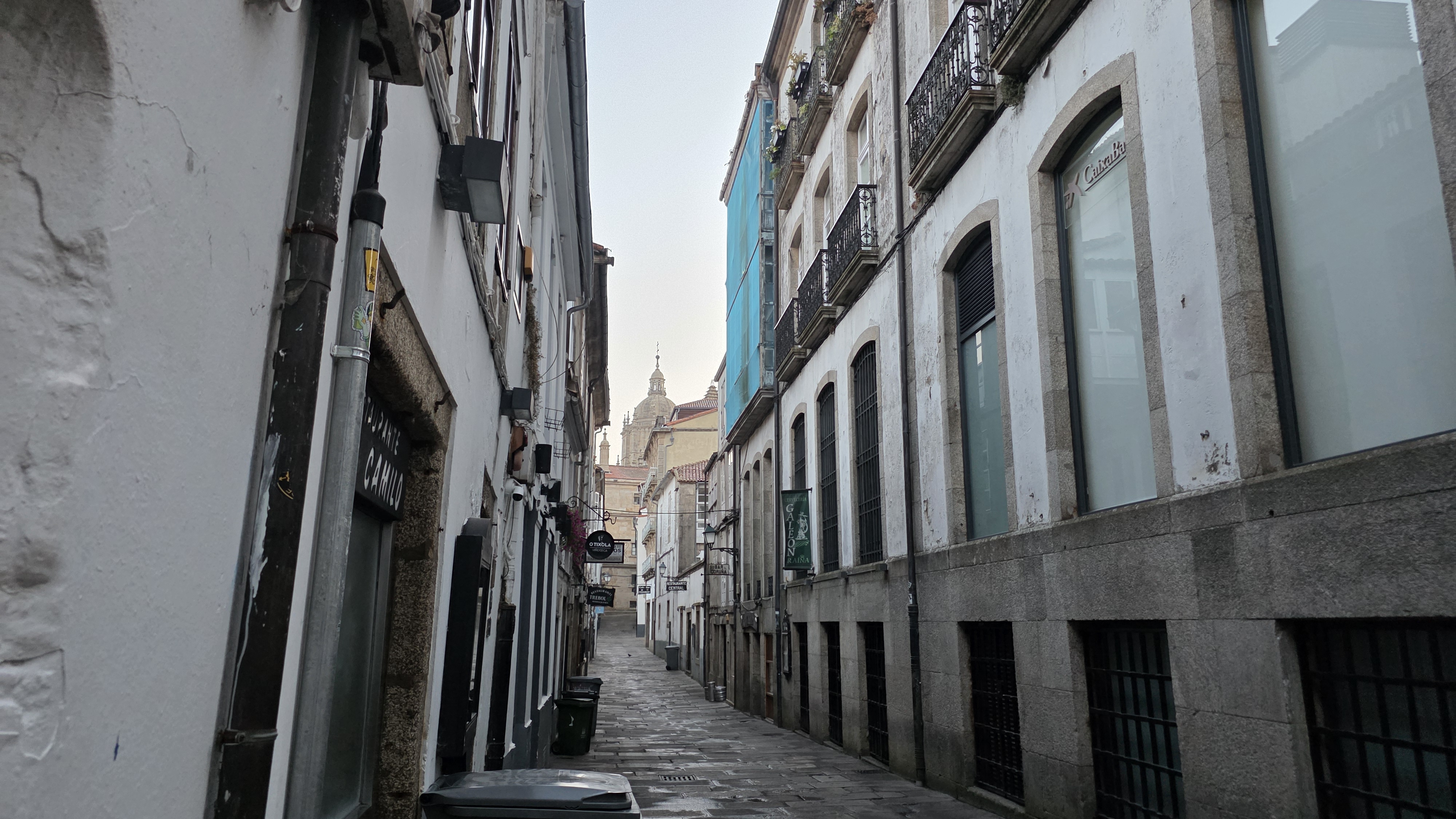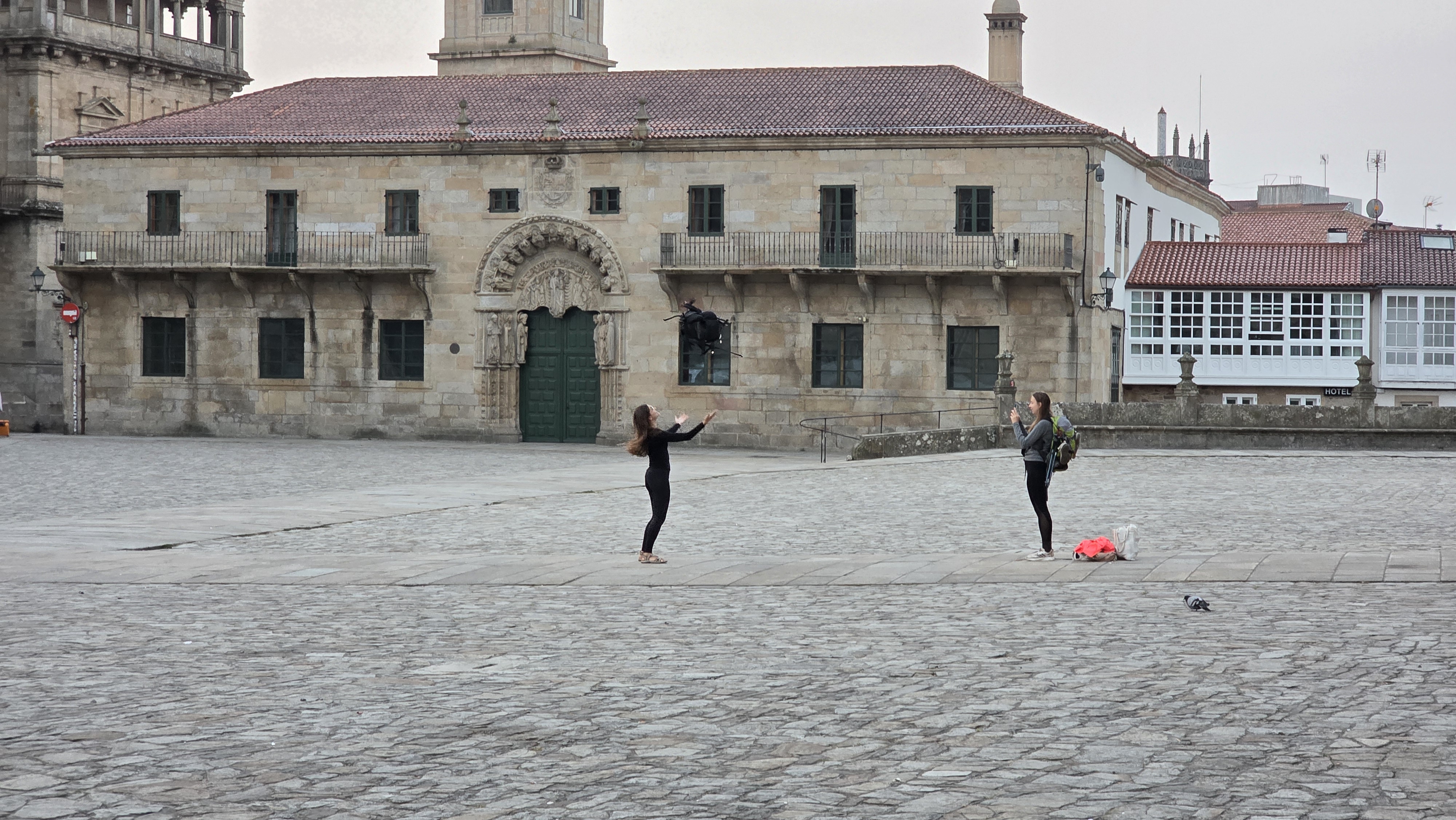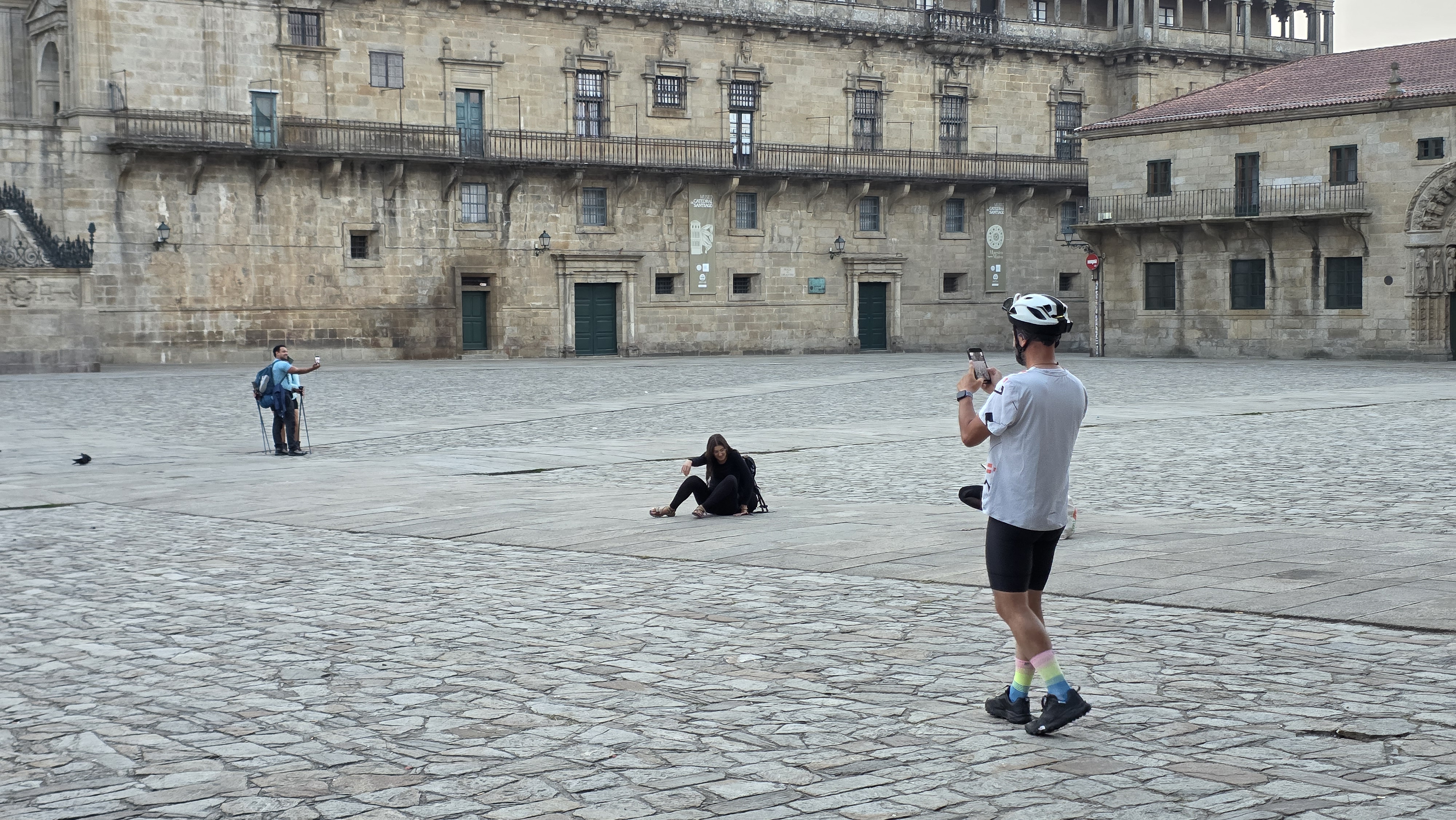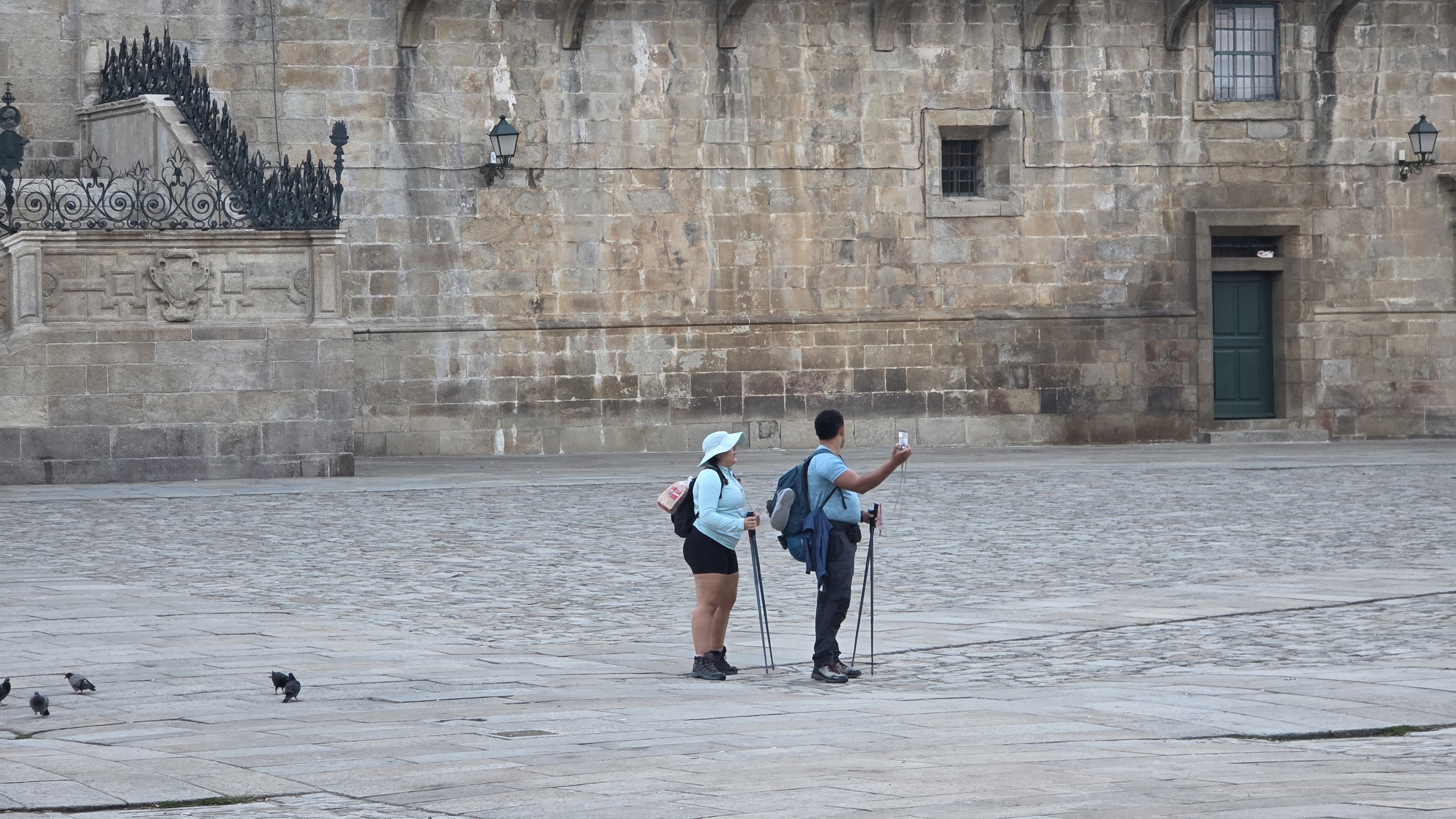 Nous avons ensuite flâné dans les rues de la ville encore déserte. Sur la place de la cathédrale, quelques rares pèlerins commençaient à se prendre en photos dans les poses les plus diverses.