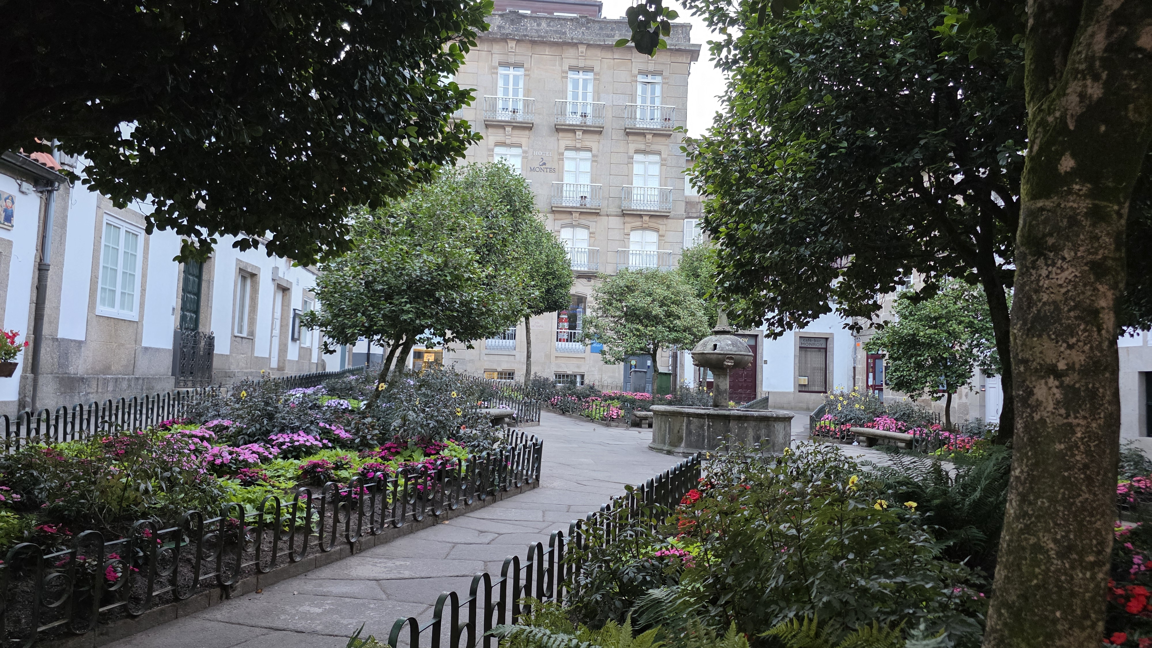 Comme il se doit, il est situé sur la place de la cathédrale et nous en sommes sortis pour prendre un bain de foule, entre pèlerins et groupes de touristes.