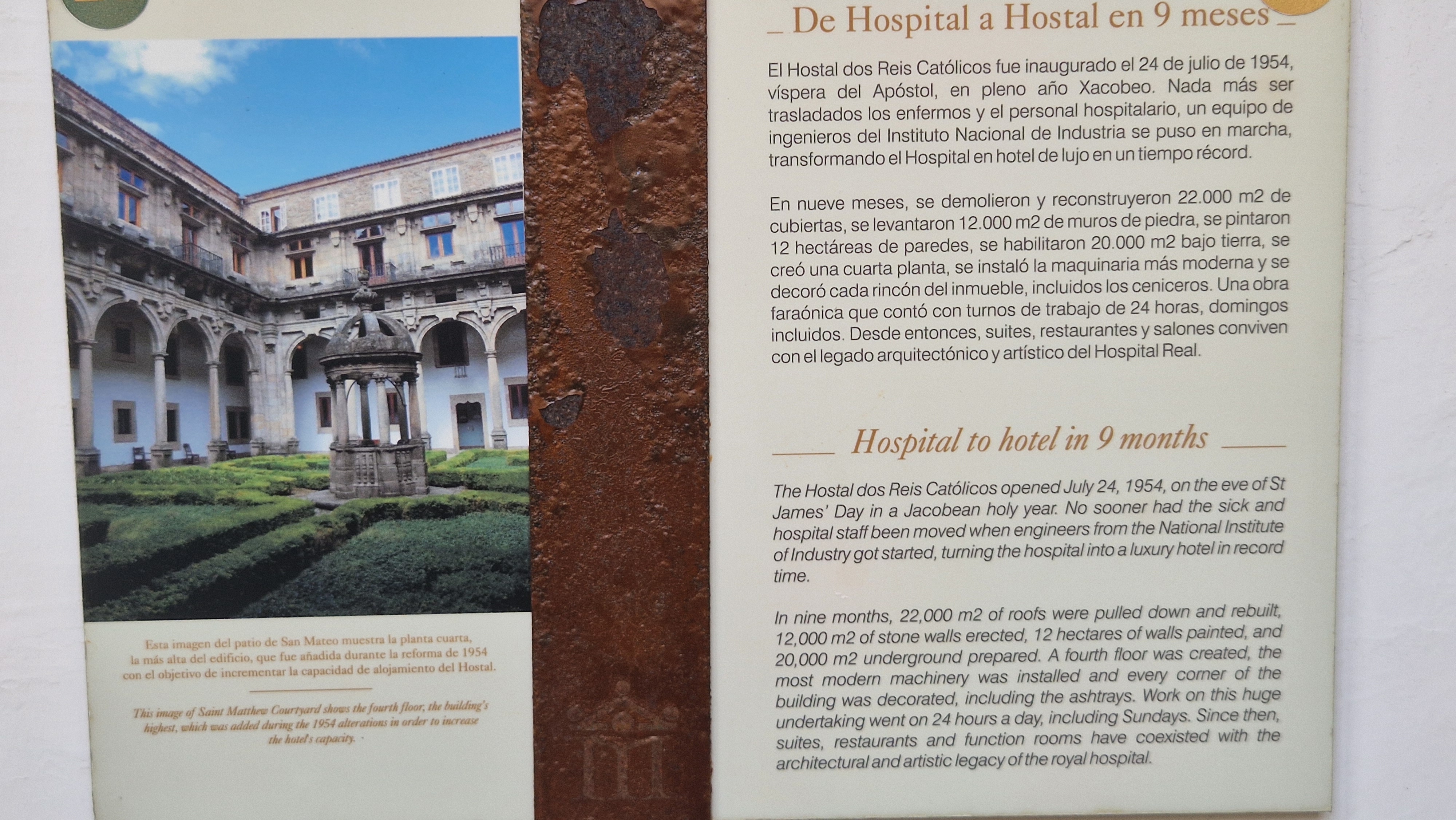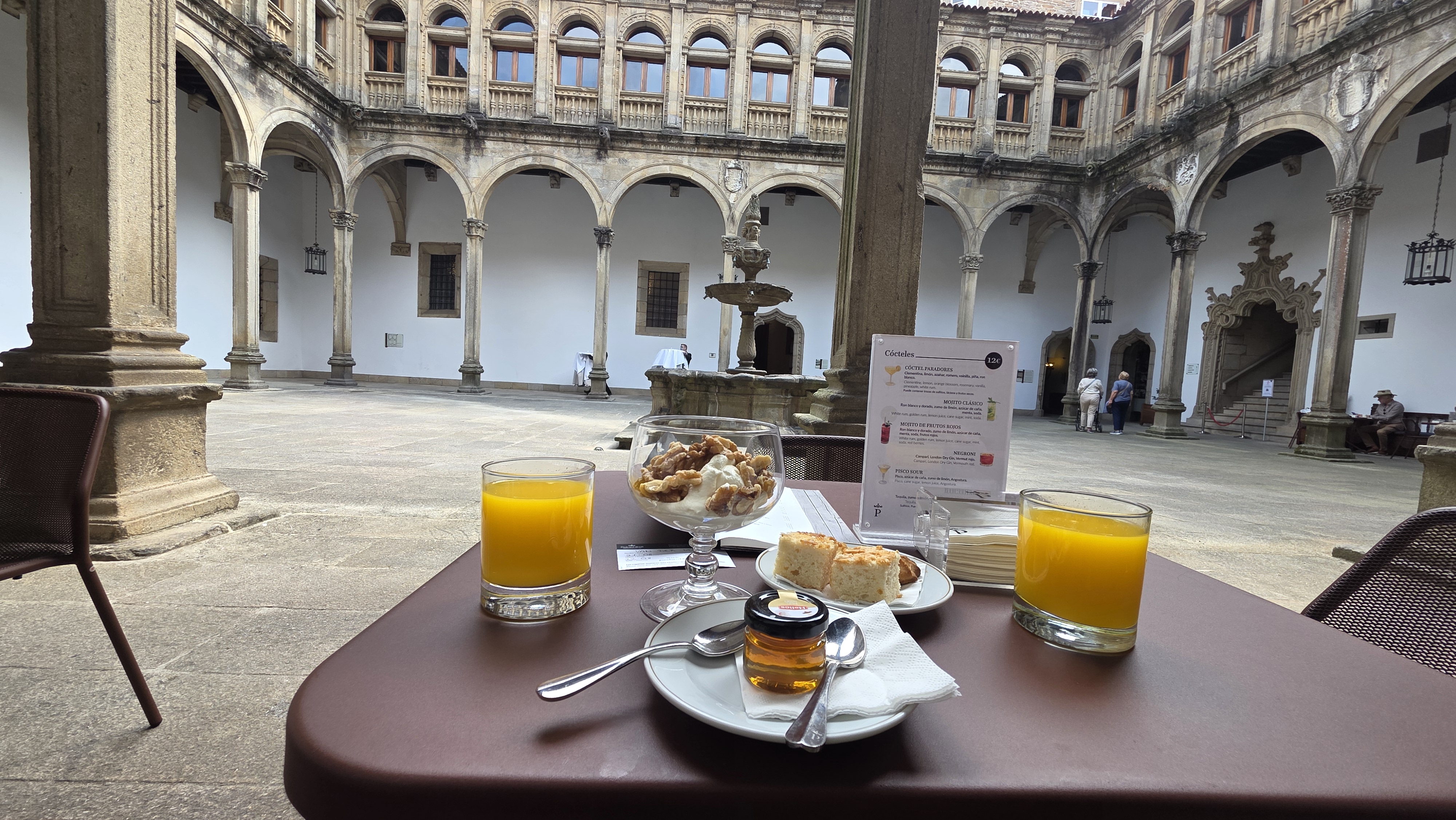 Nous sommes rentrés à l’hôtel pour le petit déjeuner et nous avons changé d’hôtel en fin de matinée : nous avons troqué notre ancien couvent franciscain pour l’ancien hôpital royal pour pèlerins dans lequel s’est installé un Parador.