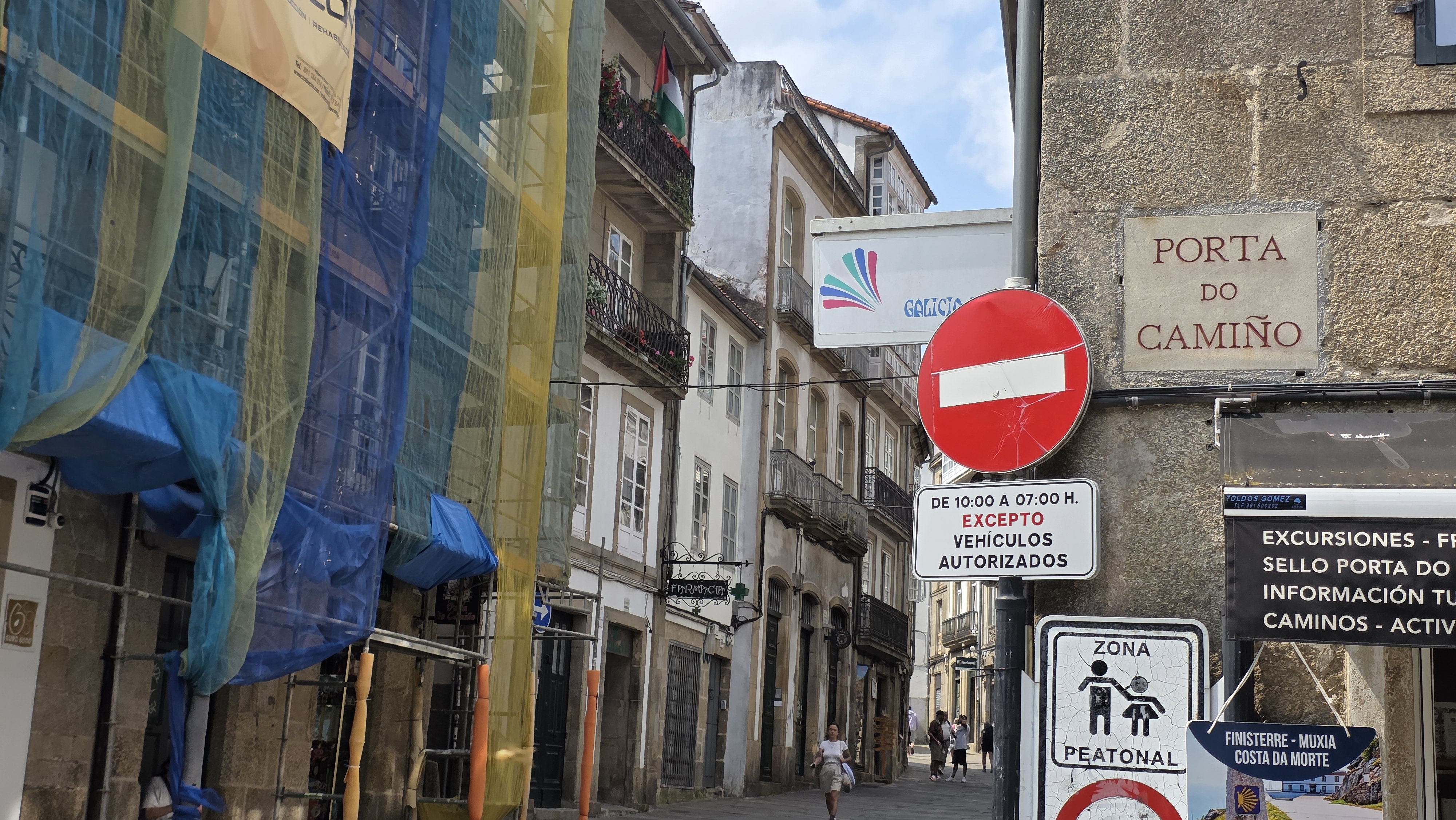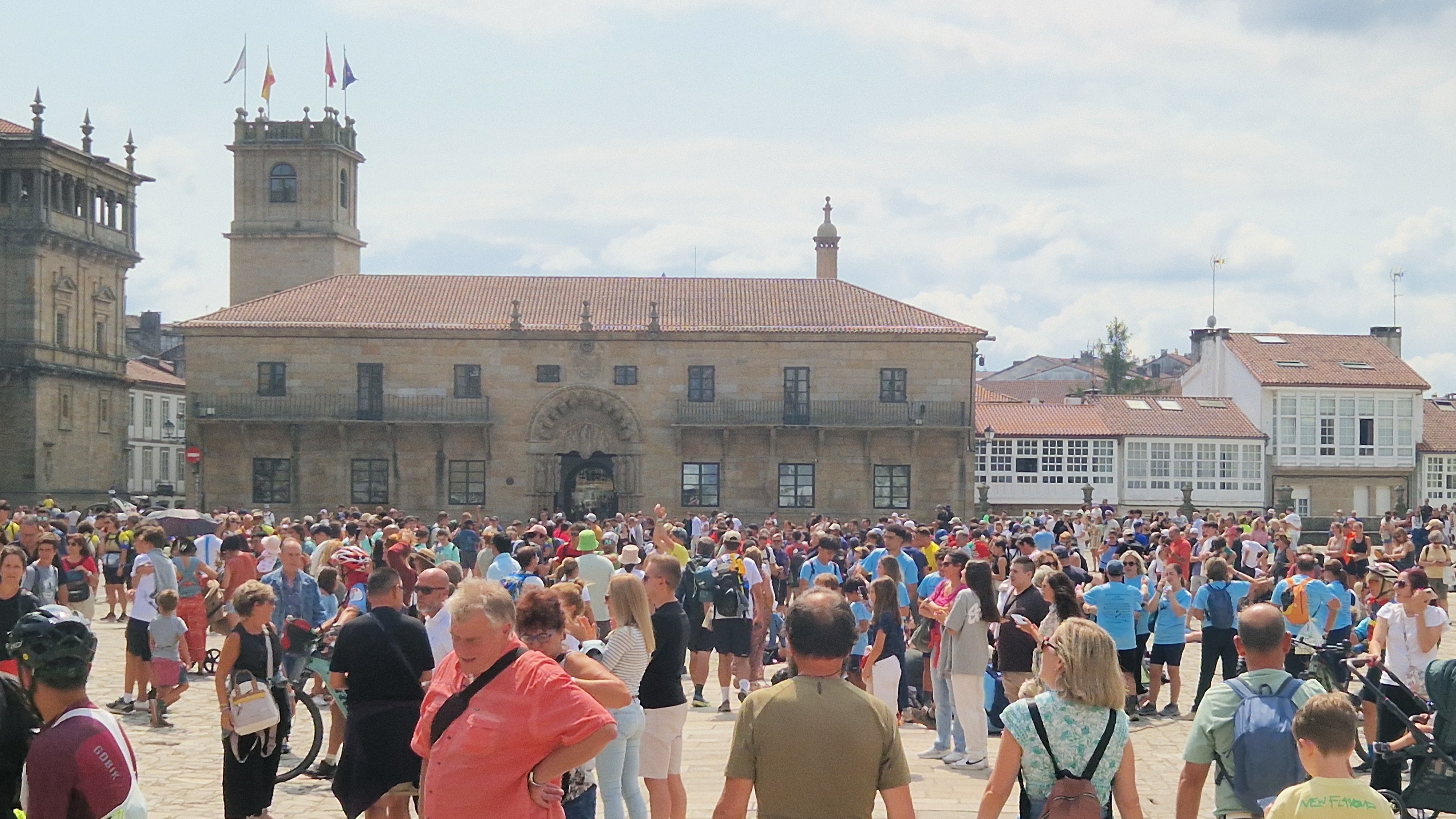 Nous avons remonté les rues par lesquelles arrive le Camino Françès et sommes redescendus voir le spectacle bon enfant des pèlerins fêtant leur arrivée.