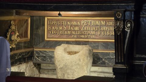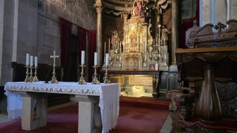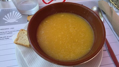 Nous n’avons pas raté la deuxième célébrité de Padrón : son église Saint-Jacques qui abrite un bloc de granit qui, dit-on, est la bite d’amarrage où a été amarrée la barque qui a ramené le corps de l’apôtre en Galice. Il n’ avait pas mieux pour faire tamponner nos crédentiales !
