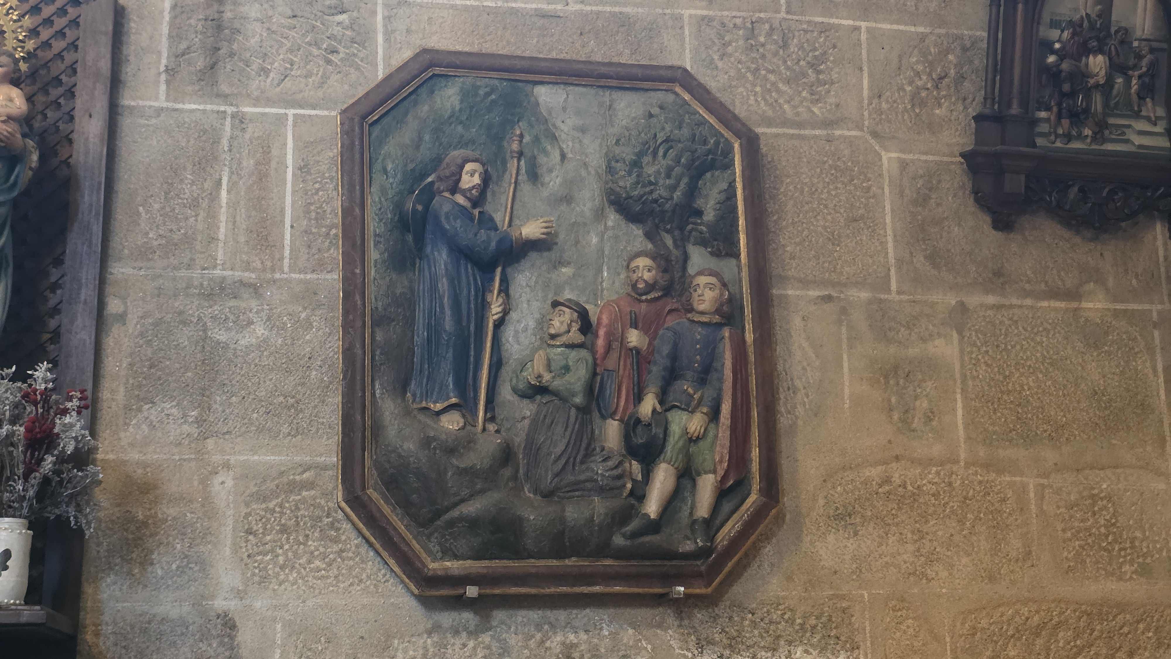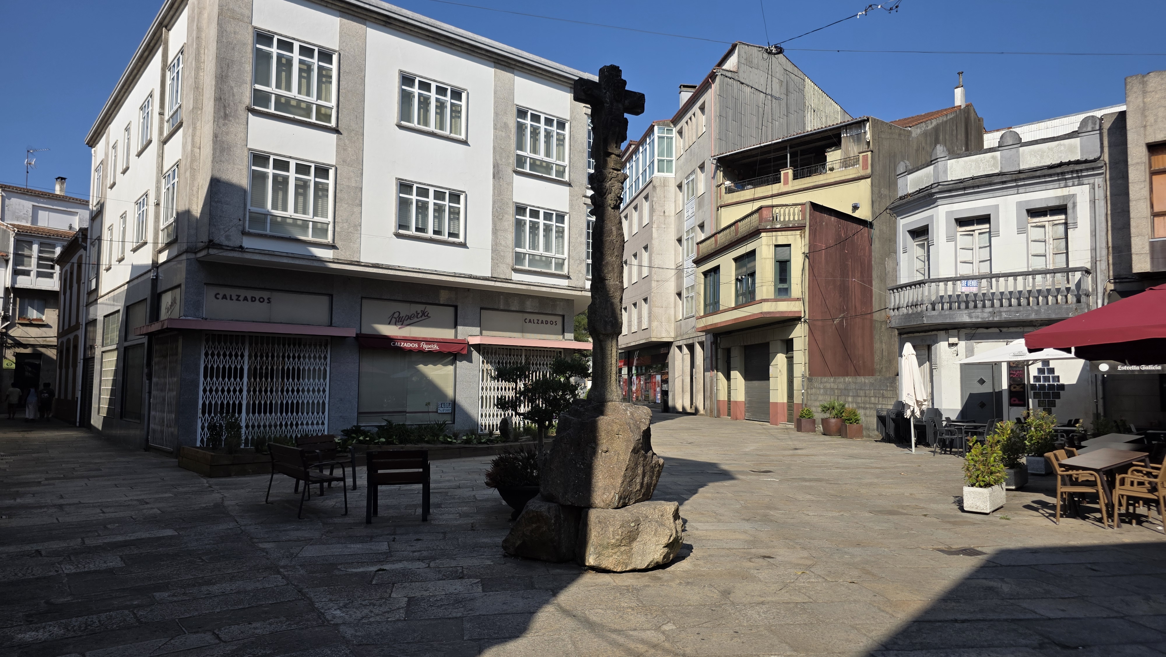 Nous n’avons pas raté la deuxième célébrité de Padrón : son église Saint-Jacques qui abrite un bloc de granit qui, dit-on, est la bite d’amarrage où a été amarrée la barque qui a ramené le corps de l’apôtre en Galice. Il n’ avait pas mieux pour faire tamponner nos crédentiales !
