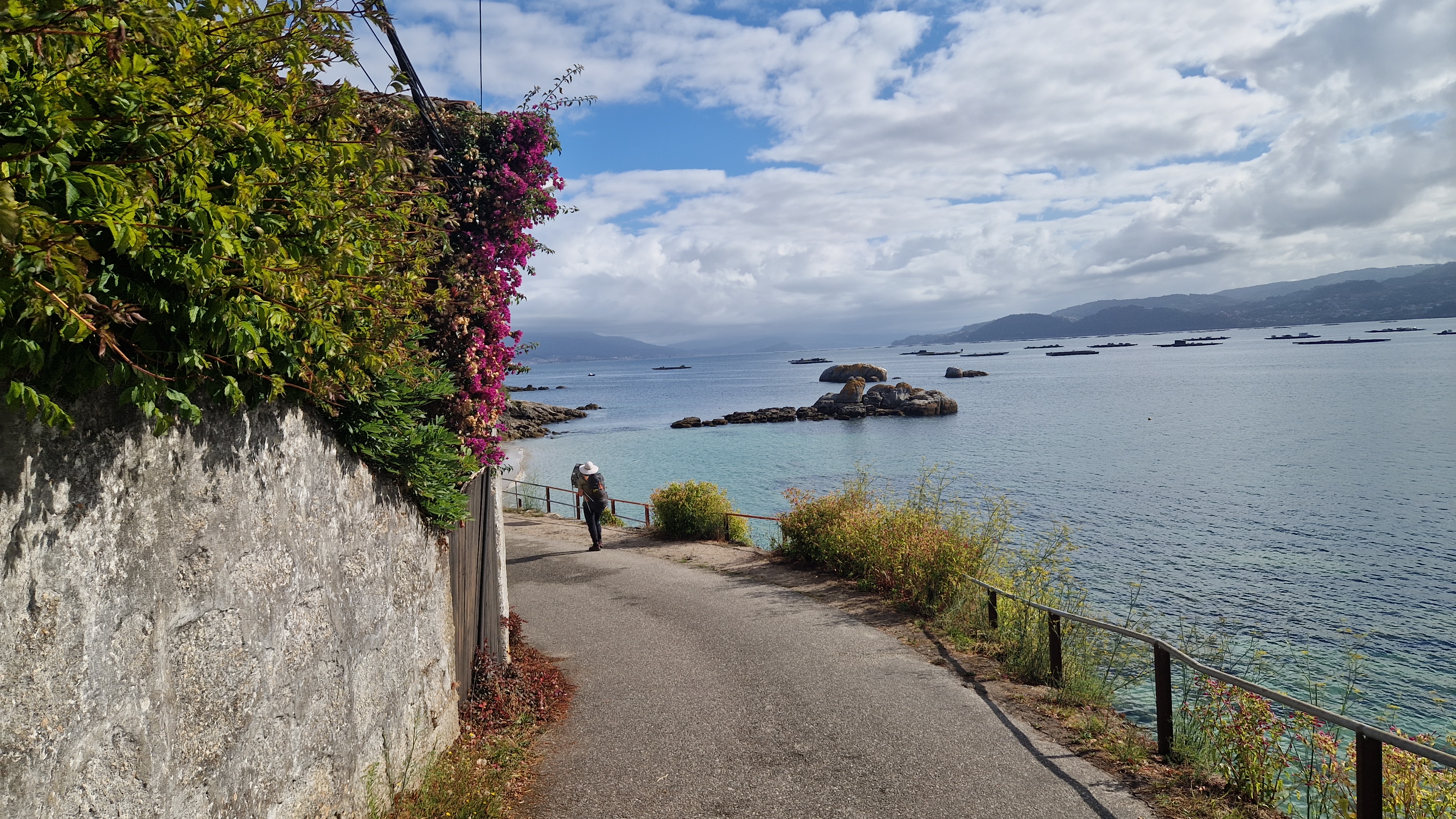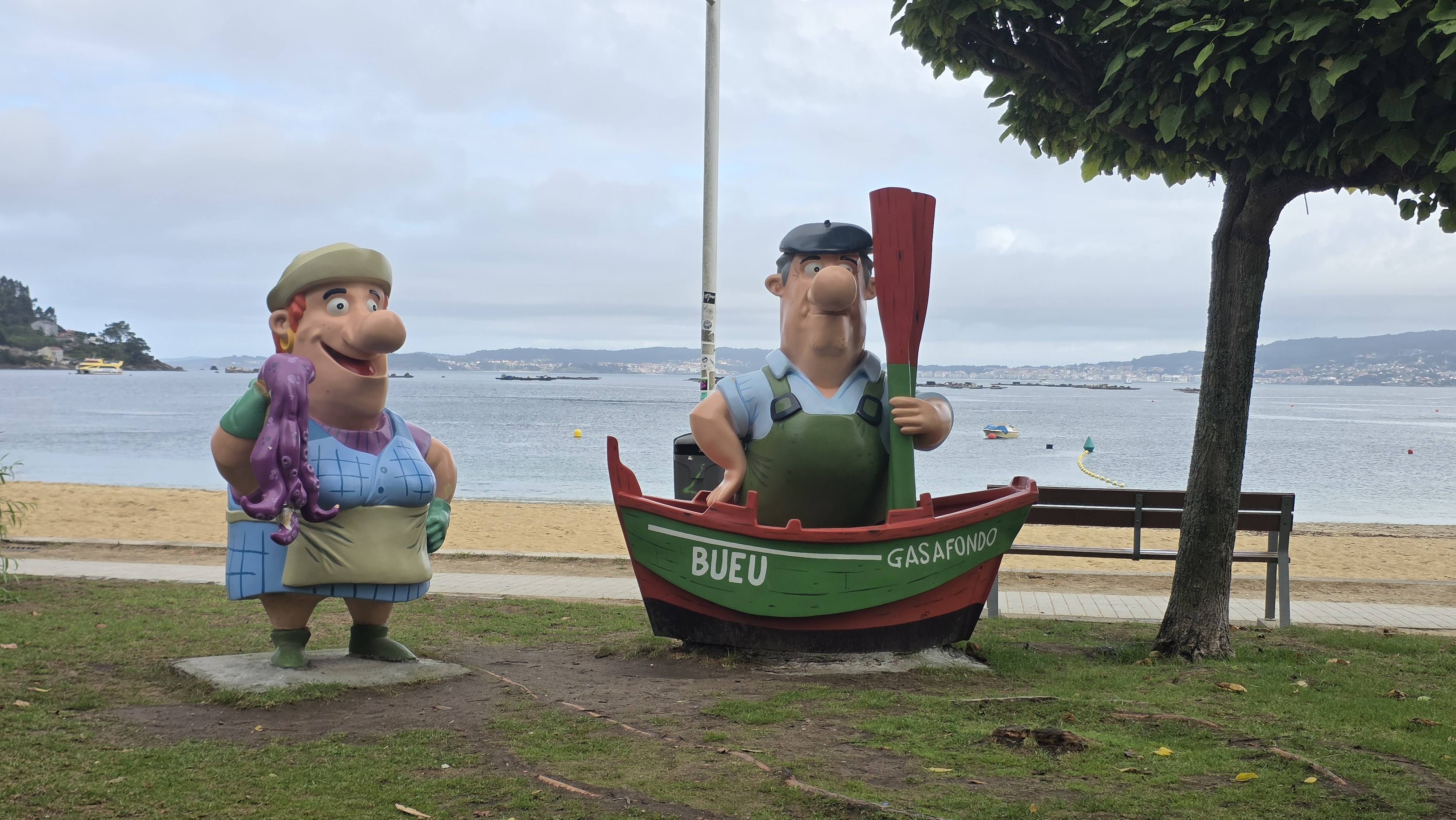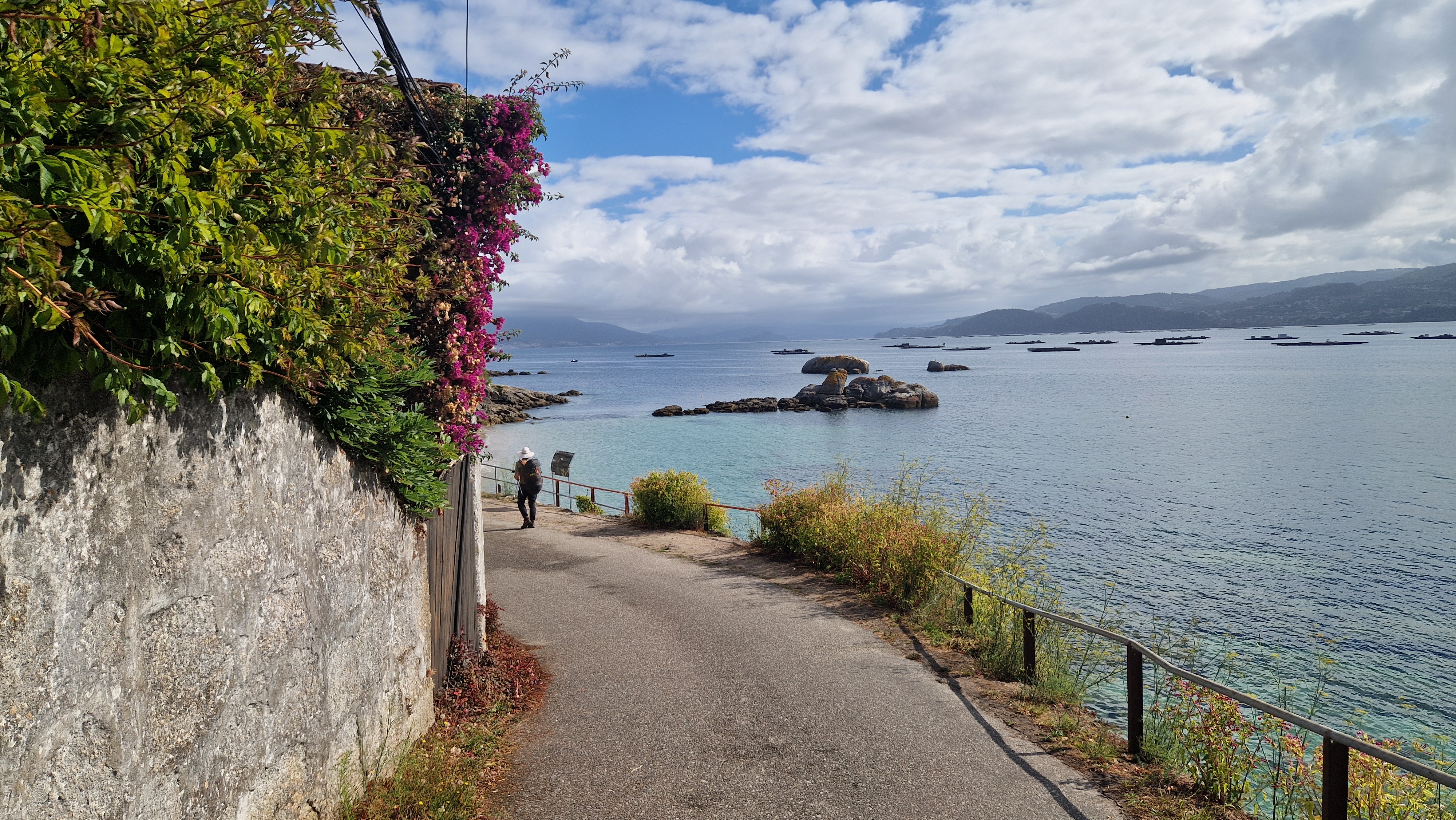 Contrairement à ce que pouvait laisser penser une sculpture avec la coquille des chemins jacquaires dans le port de Bueu, je n’ai pas trouvé de « Camino » pour poursuivre notre progression…