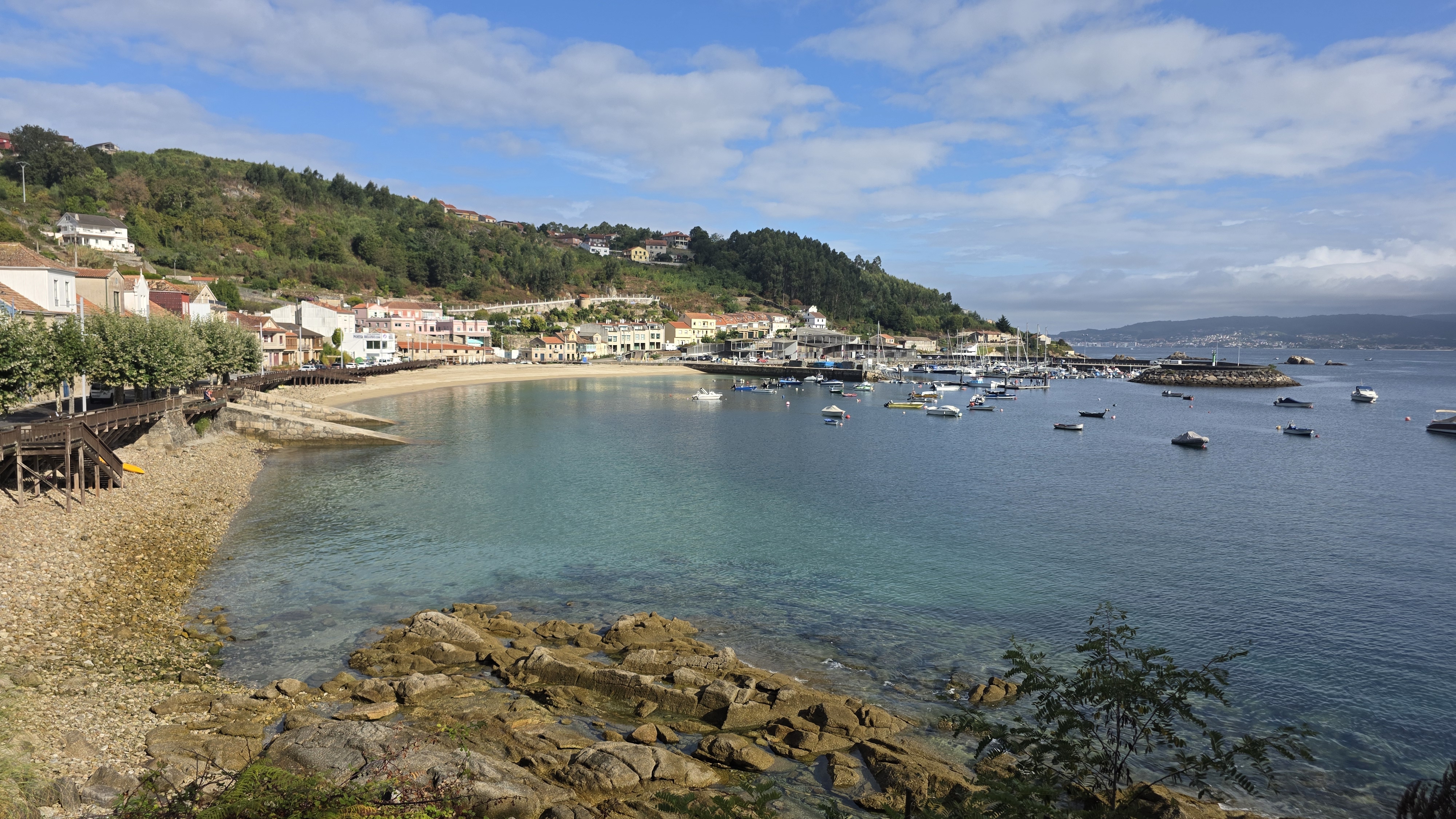 Nous avons longé la ria de Pontevedra jusqu’au cap Udra qui la sépare de la ria d’Aldán que nous avons remonté jusqu’au port du même nom.