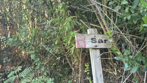 Le GR 59 semble assez ancien, les marques sont assez rares et souvent à moitié effacées et je me suis plutôt fié à son tracé GPS sur OpenStreetMap. Cela a bien fonctionné sauf lorsque ces traces nous ont menés sur un sentier dans une forêt d’eucalyptus qui s’est avéré être complètement bloqué par les ronces. Nous avons du faire demi tour pour rejoindre un sentier plus large puis une petite route et finir par retrouver le GR avant de terminer l’étape.