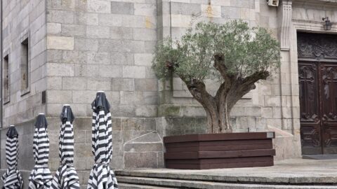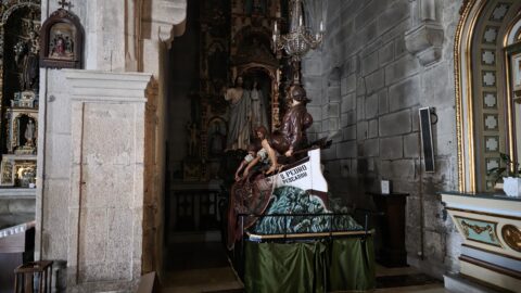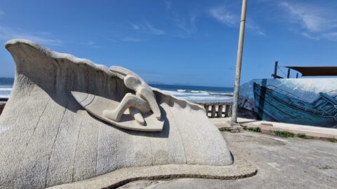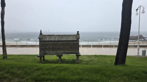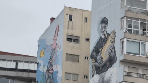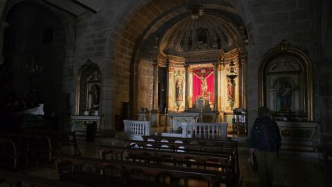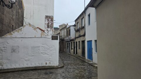 Après la lonxa, nous sommes passés devant les chantiers navals et nous avons retrouvé un peu de calme et une ambiance village à Bouzas où nous nous sommes abrités un moment dans l’église.