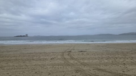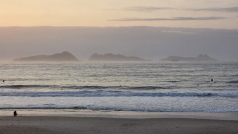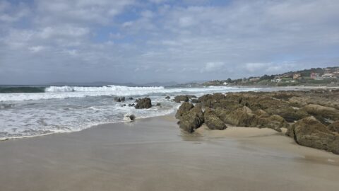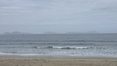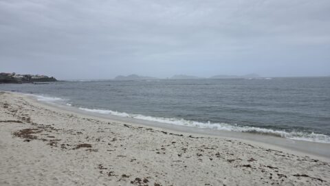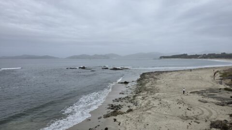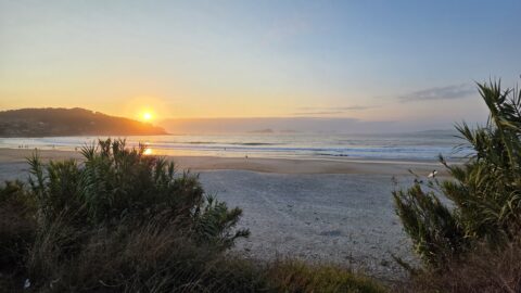 Ce soir, qui est le dernier jour de notre cinquième mois de marche, nous dormons en bord de mer à Nigrán.