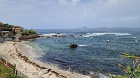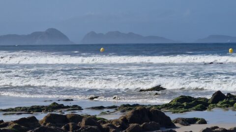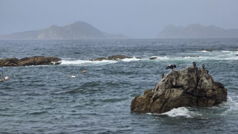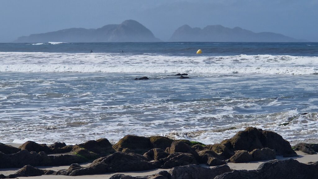La pluie a cessé en fin de matinée et nous avons pu commencer à voir les îles Cies à travers la brume et le soleil est revenu après le déjeuner.