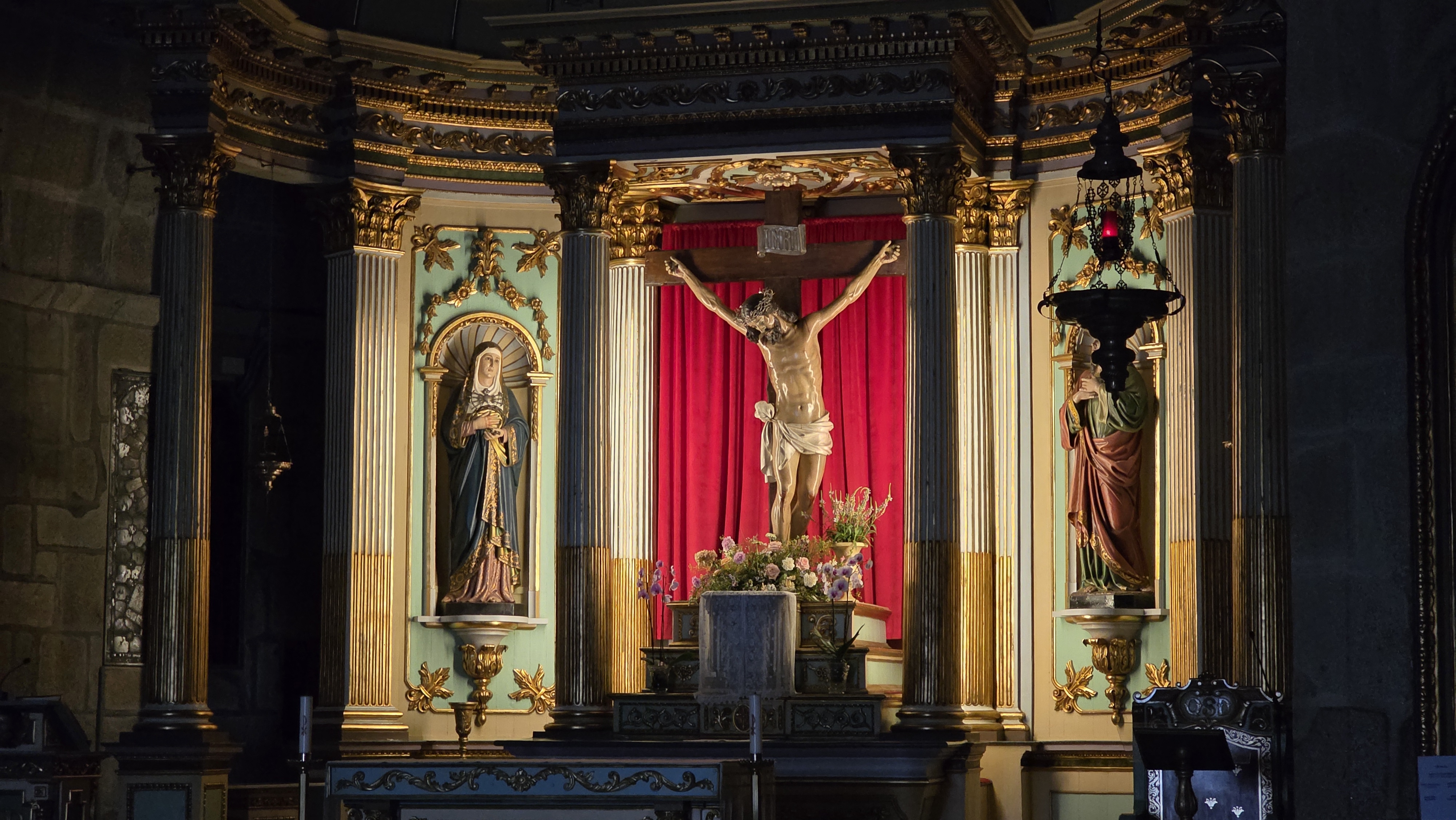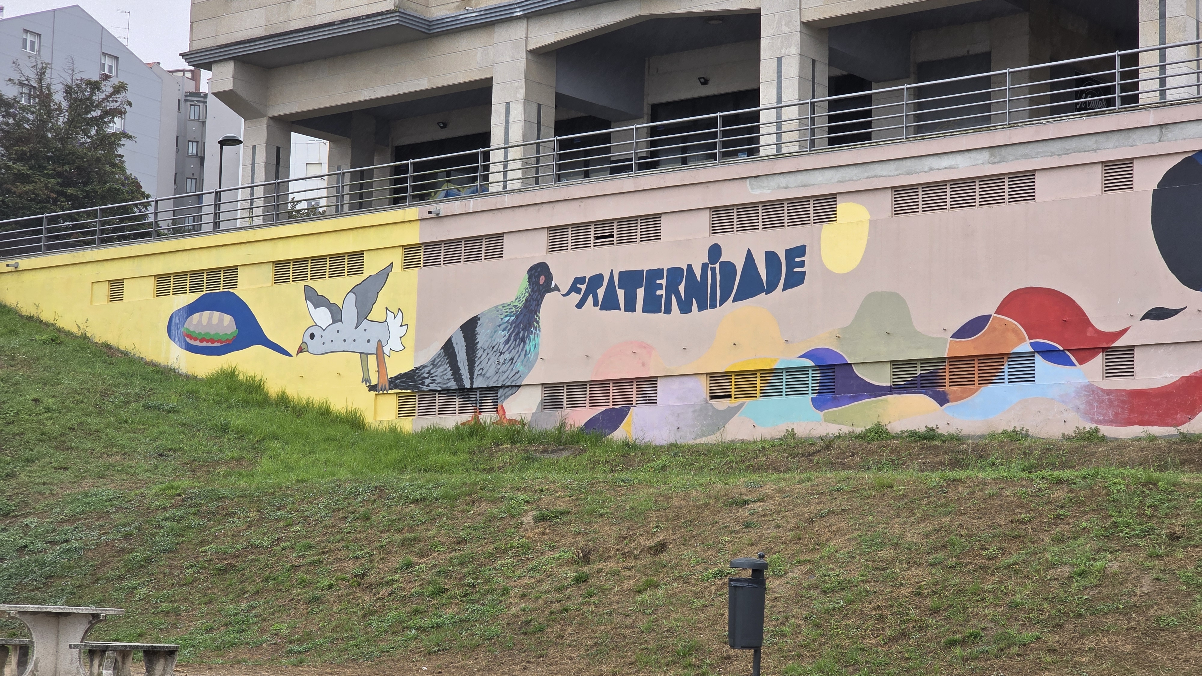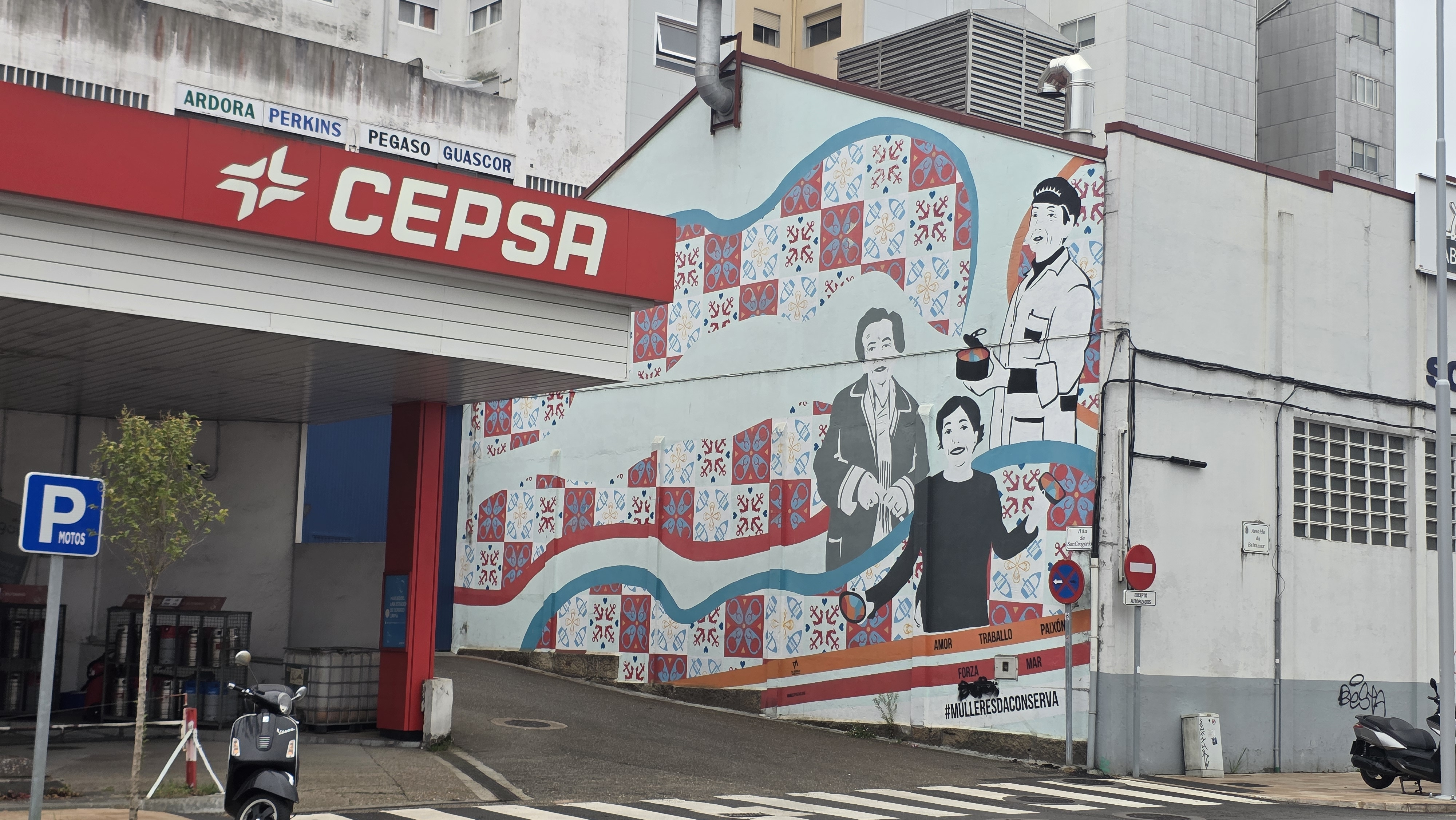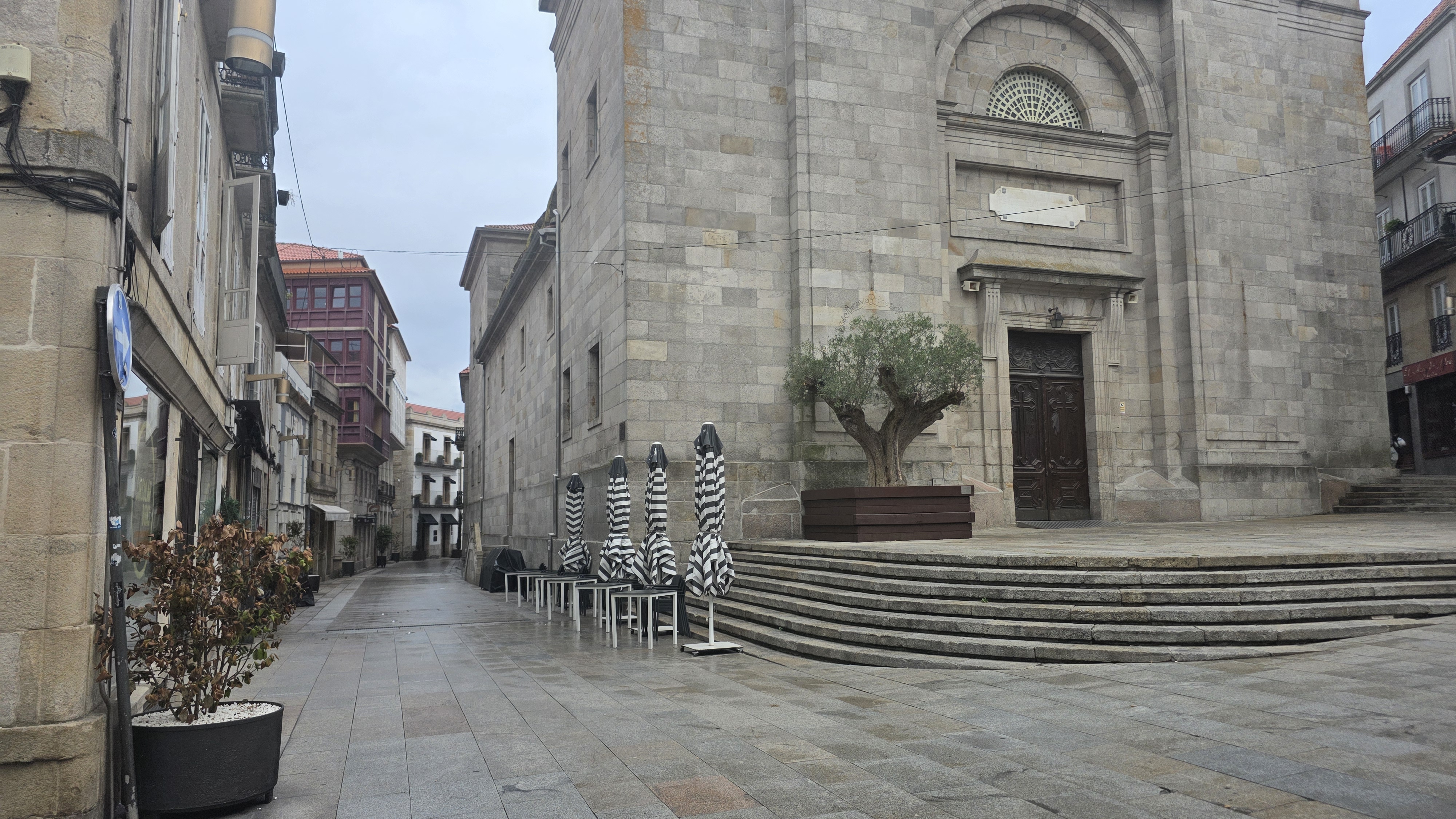 Après la lonxa, nous sommes passés devant les chantiers navals et nous avons retrouvé un peu de calme et une ambiance village à Bouzas où nous nous sommes abrités un moment dans l’église.