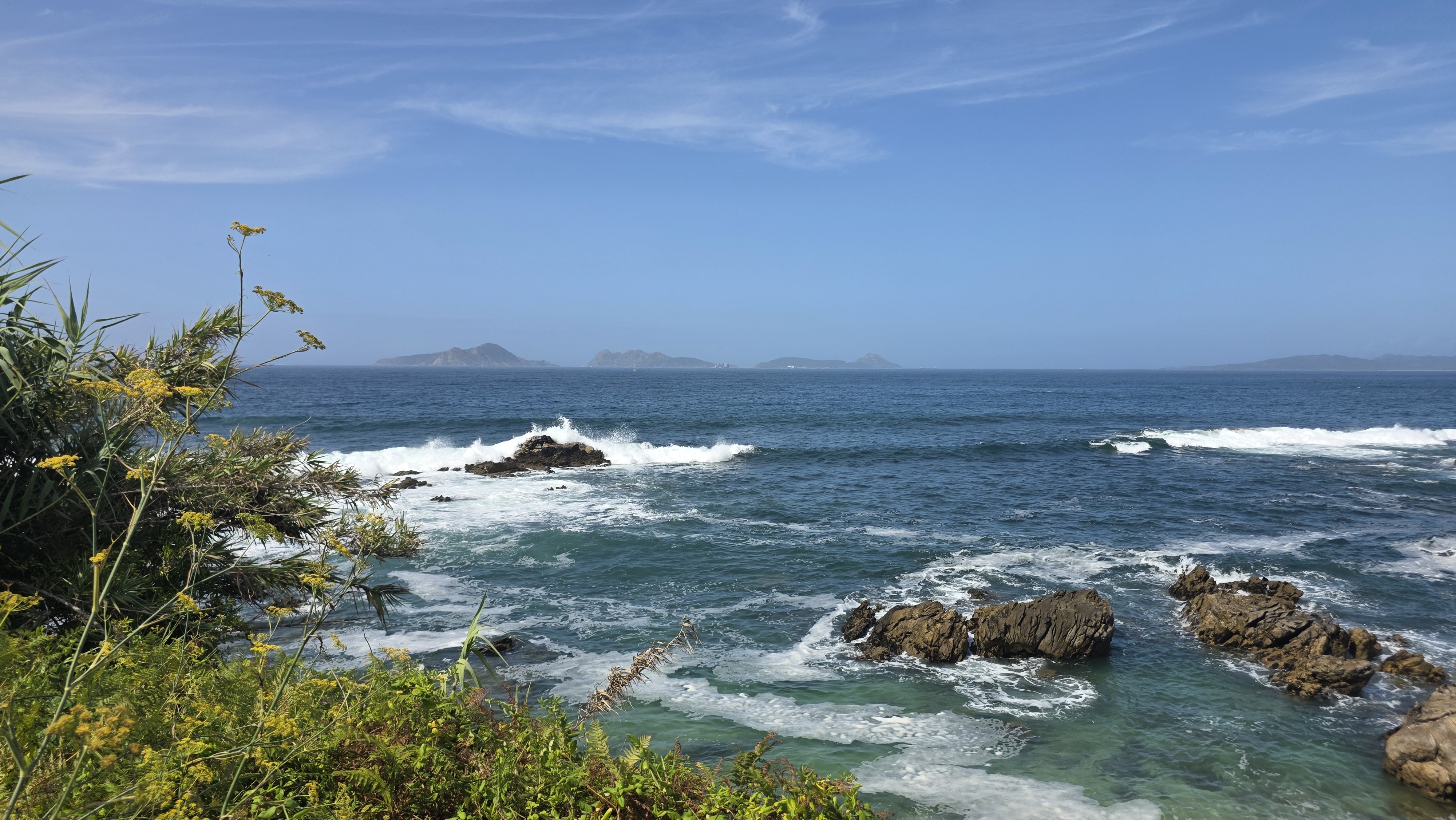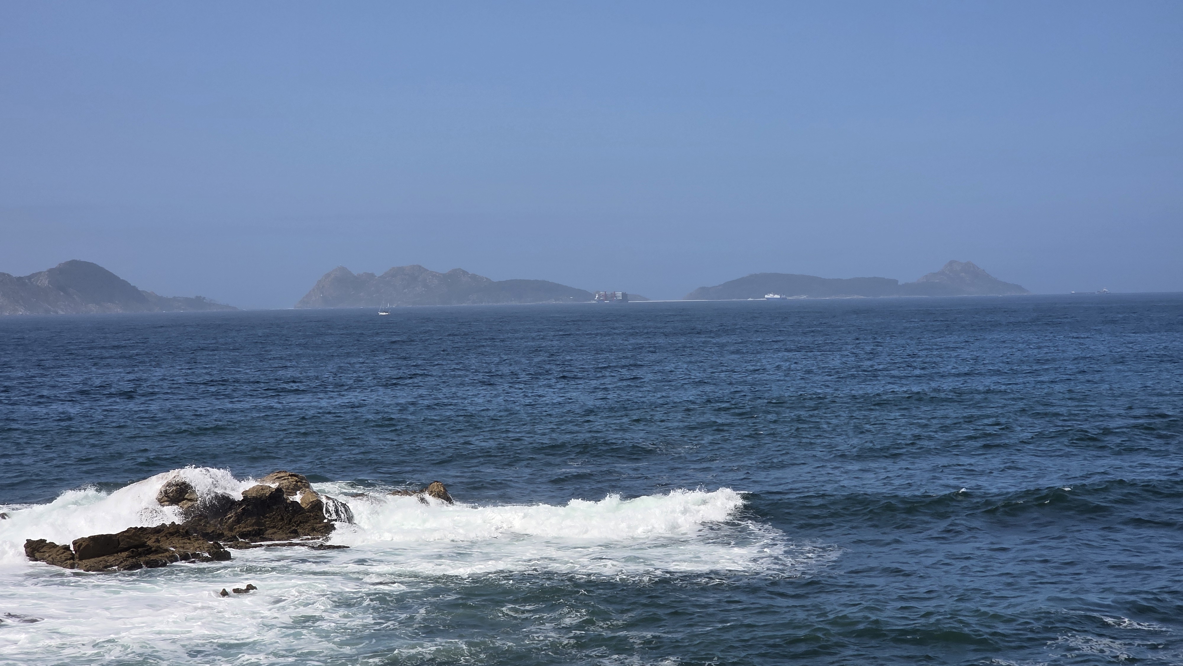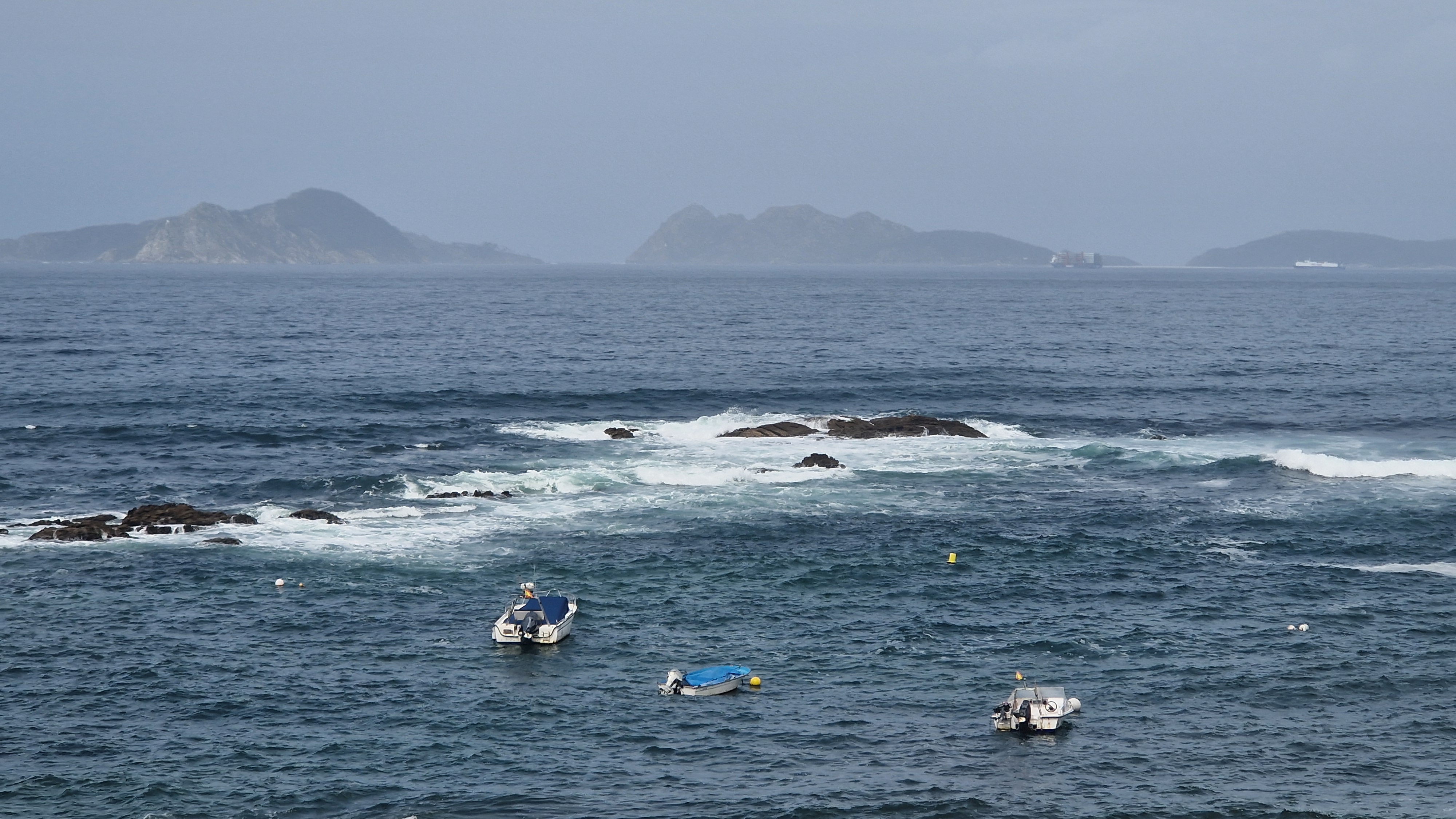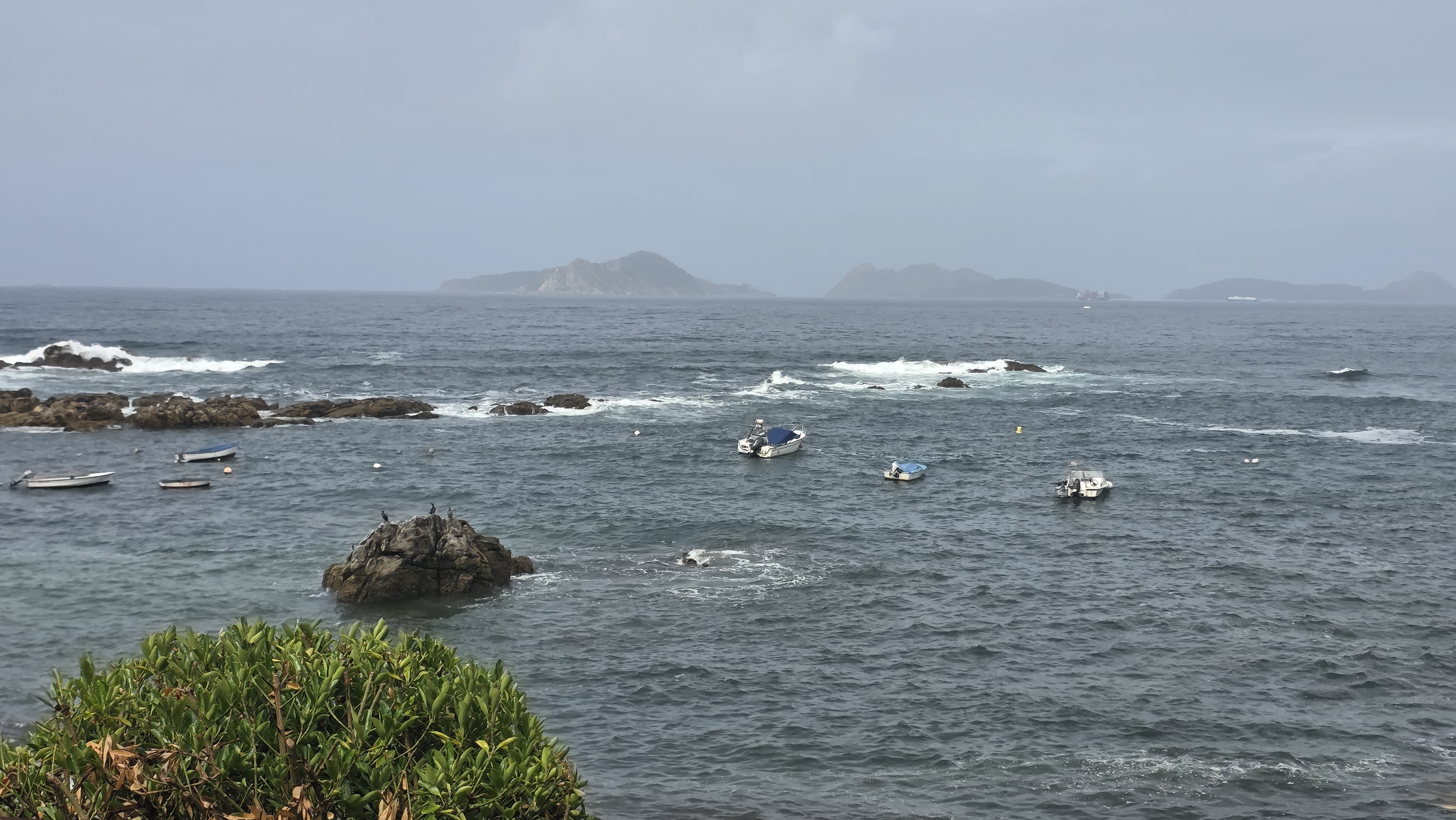La pluie a cessé en fin de matinée et nous avons pu commencer à voir les îles Cies à travers la brume et le soleil est revenu après le déjeuner.