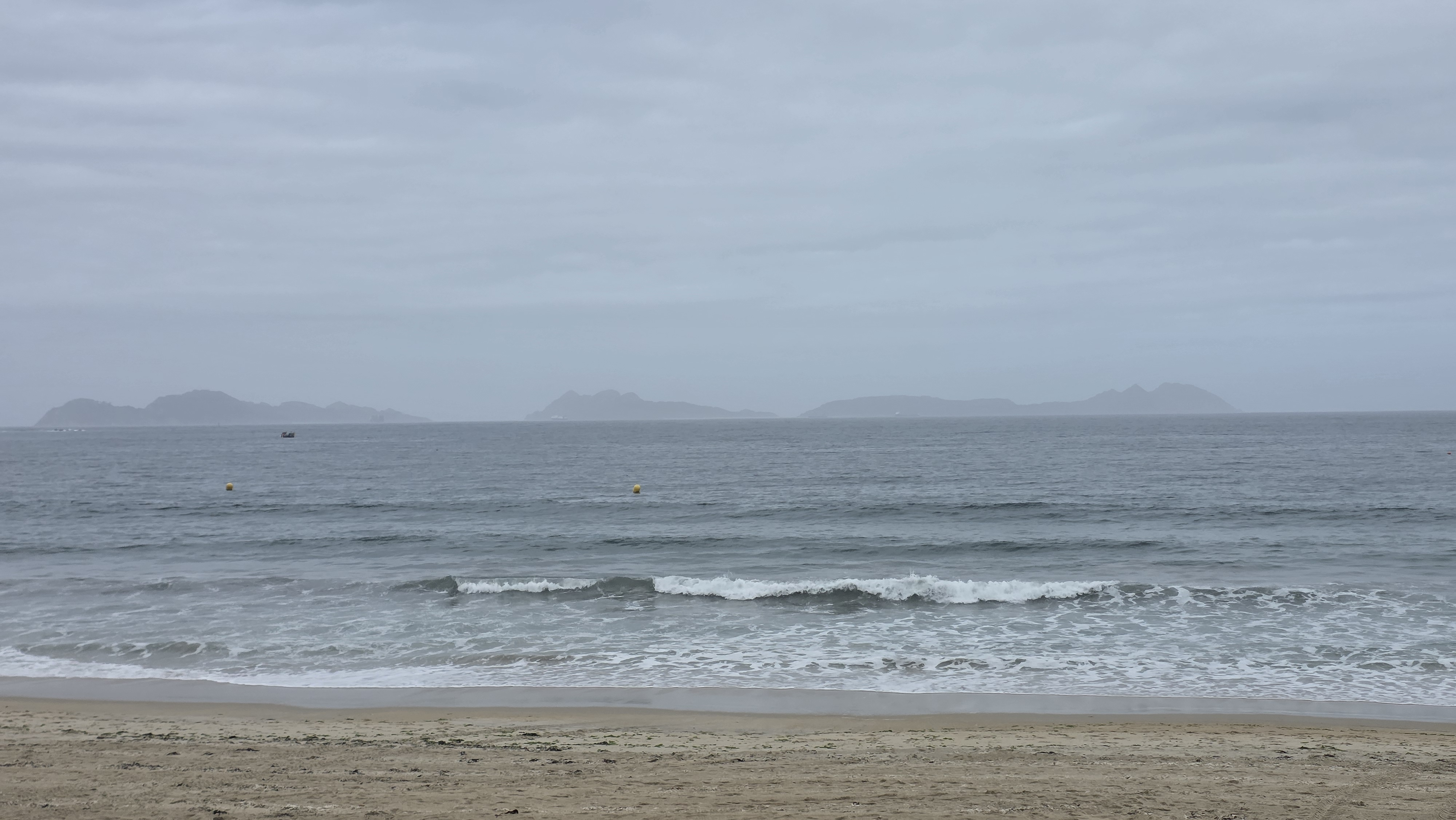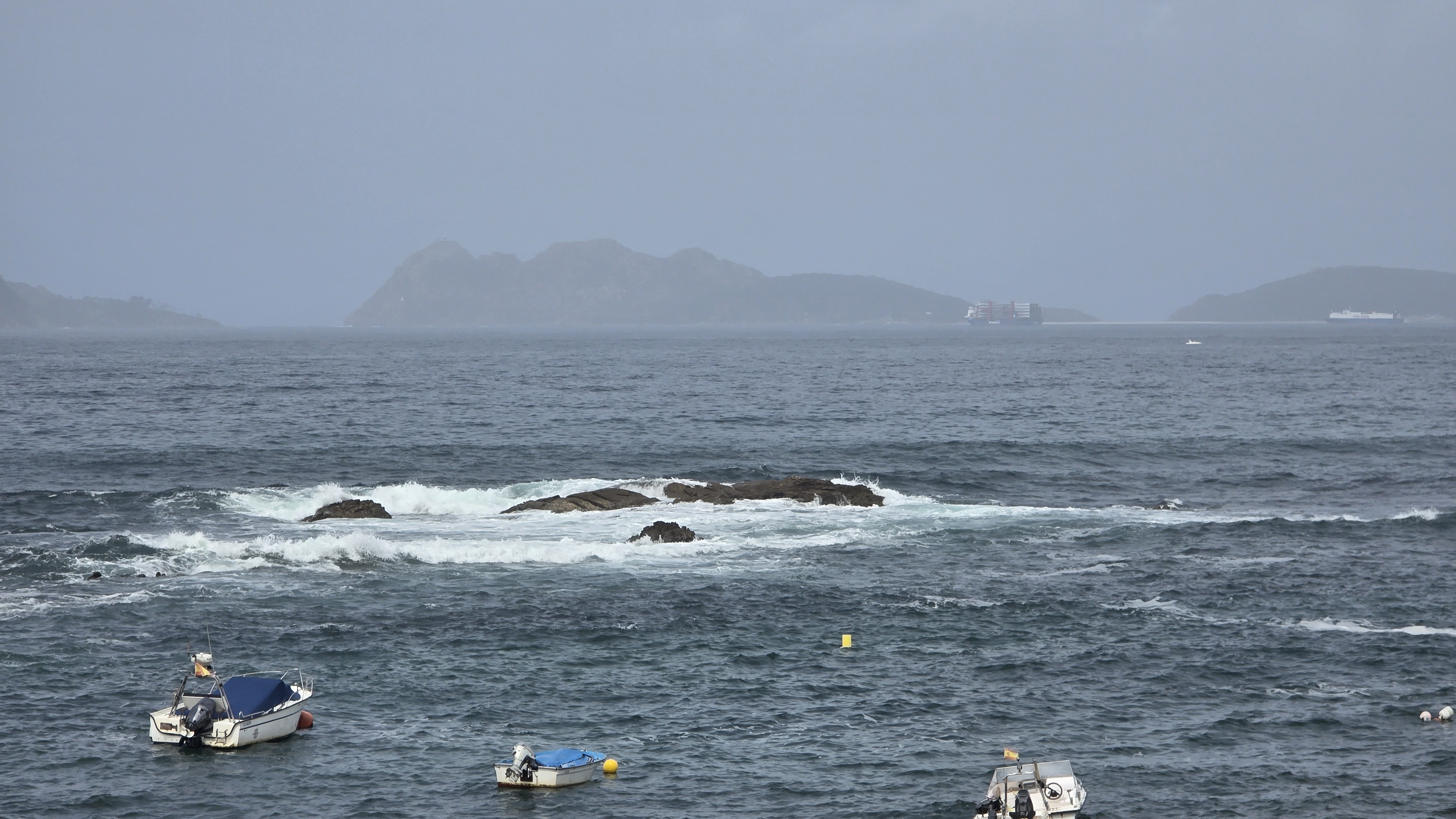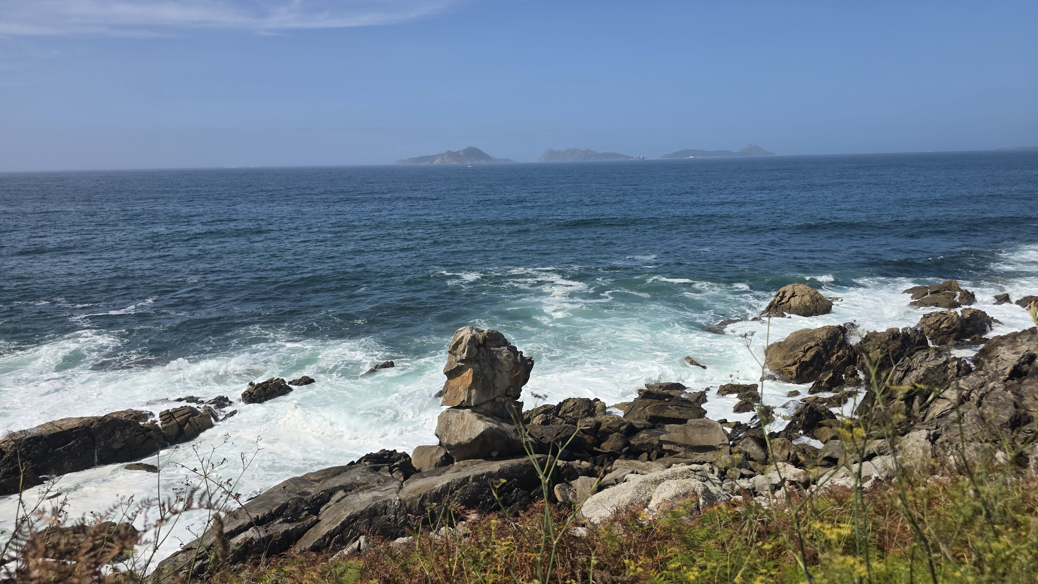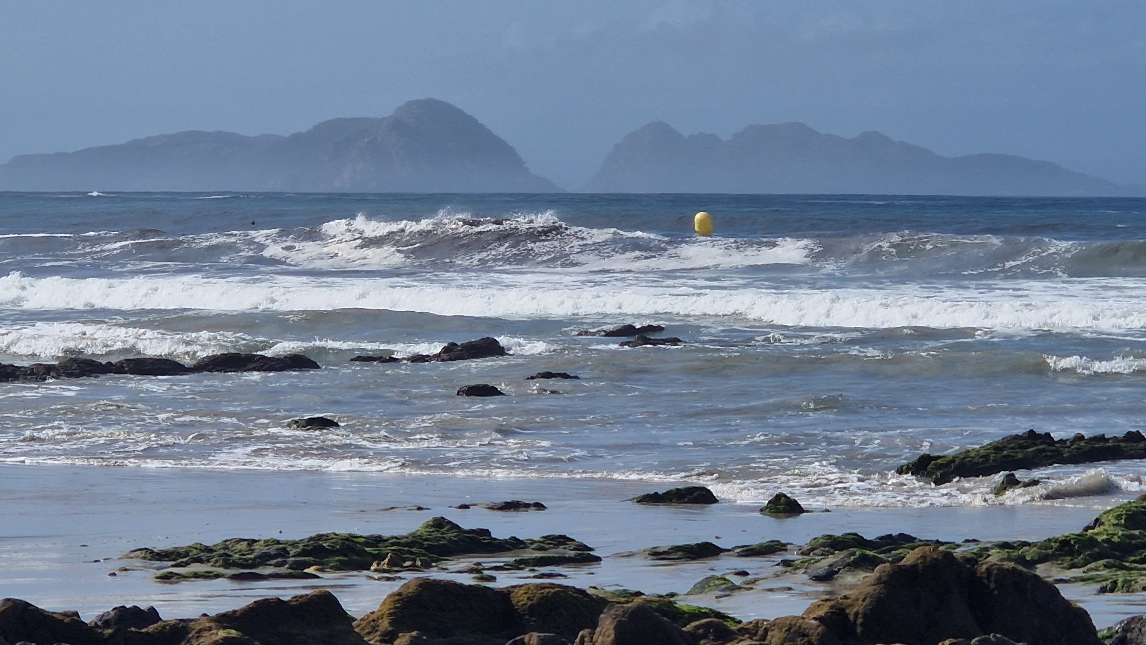La pluie a cessé en fin de matinée et nous avons pu commencer à voir les îles Cies à travers la brume et le soleil est revenu après le déjeuner.