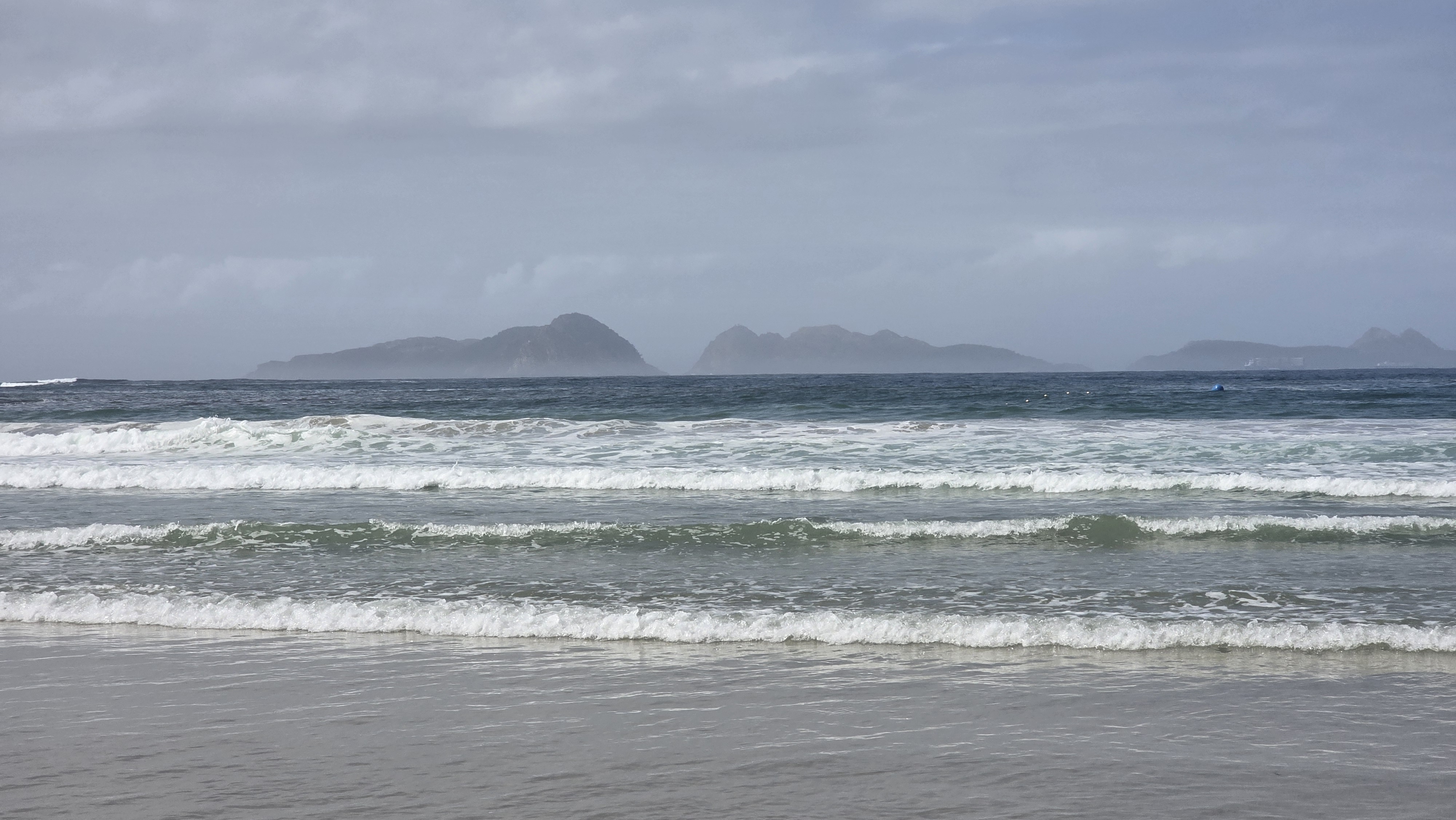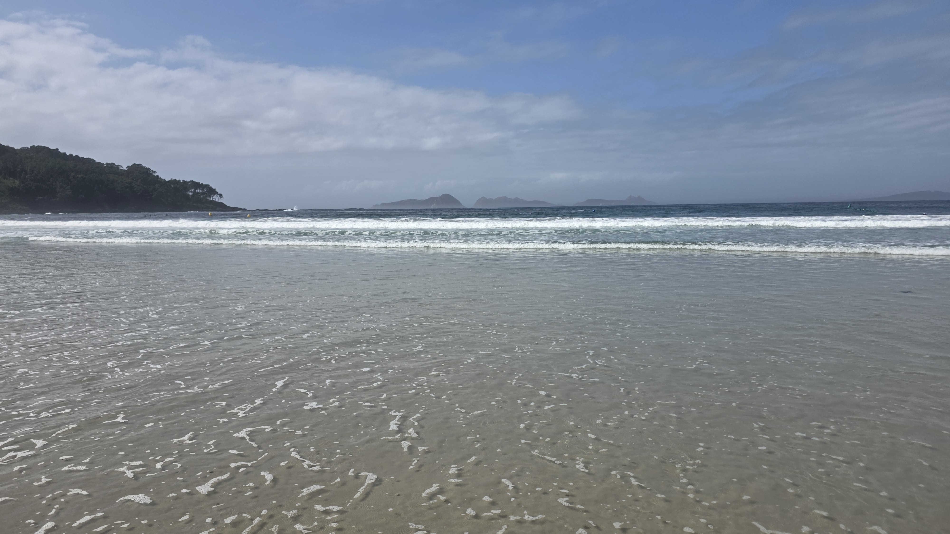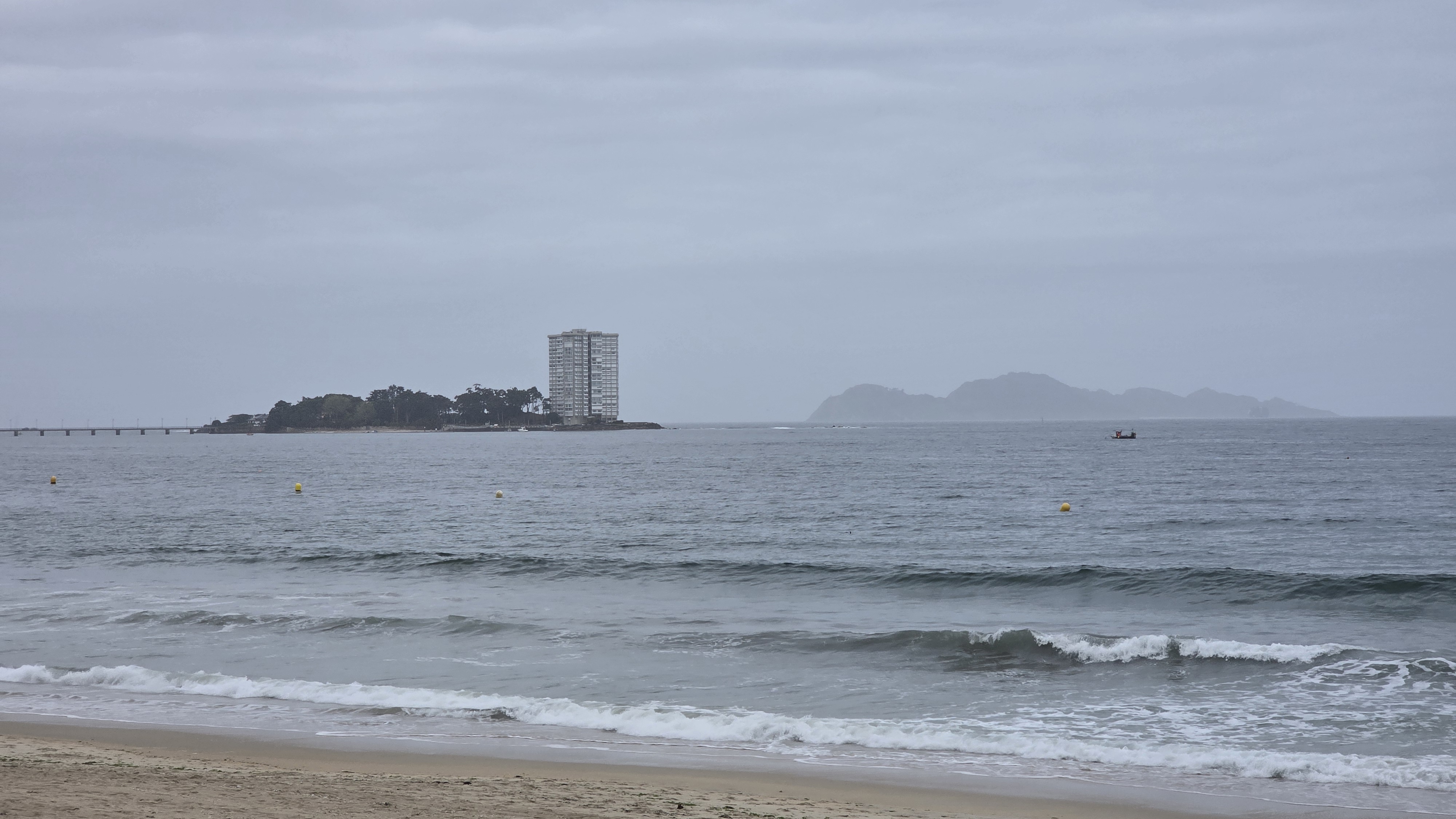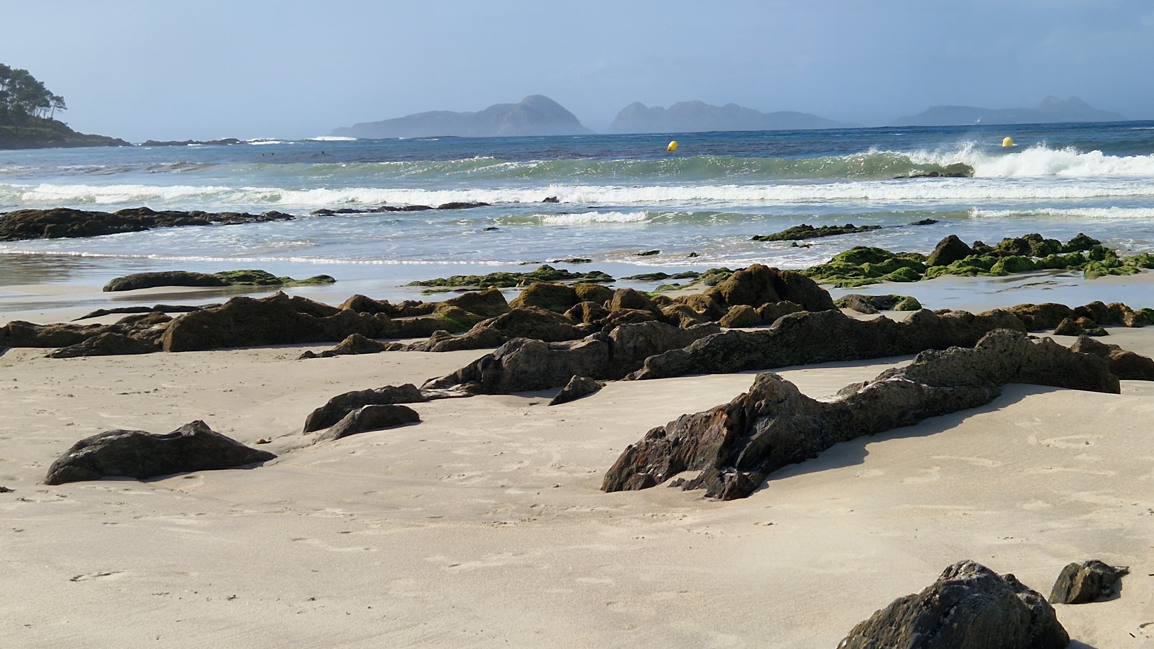 La pluie a cessé en fin de matinée et nous avons pu commencer à voir les îles Cies à travers la brume et le soleil est revenu après le déjeuner.