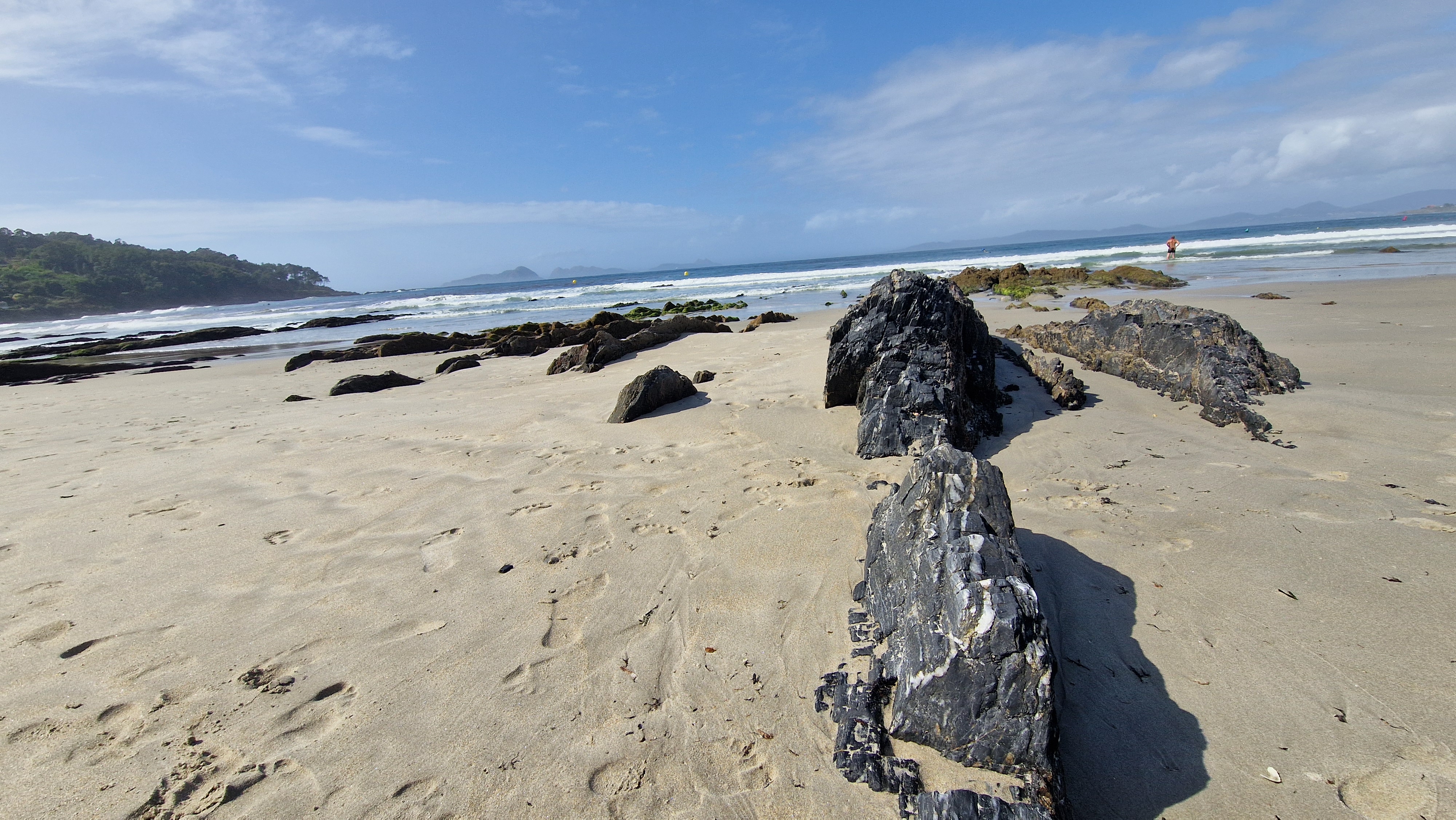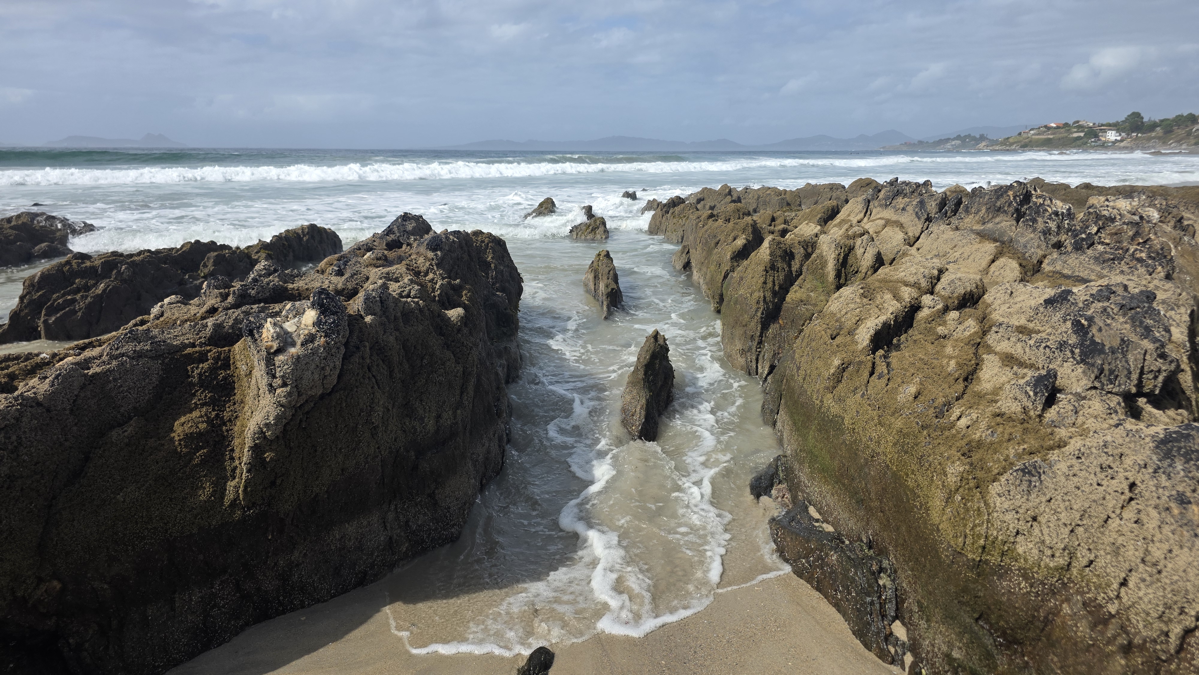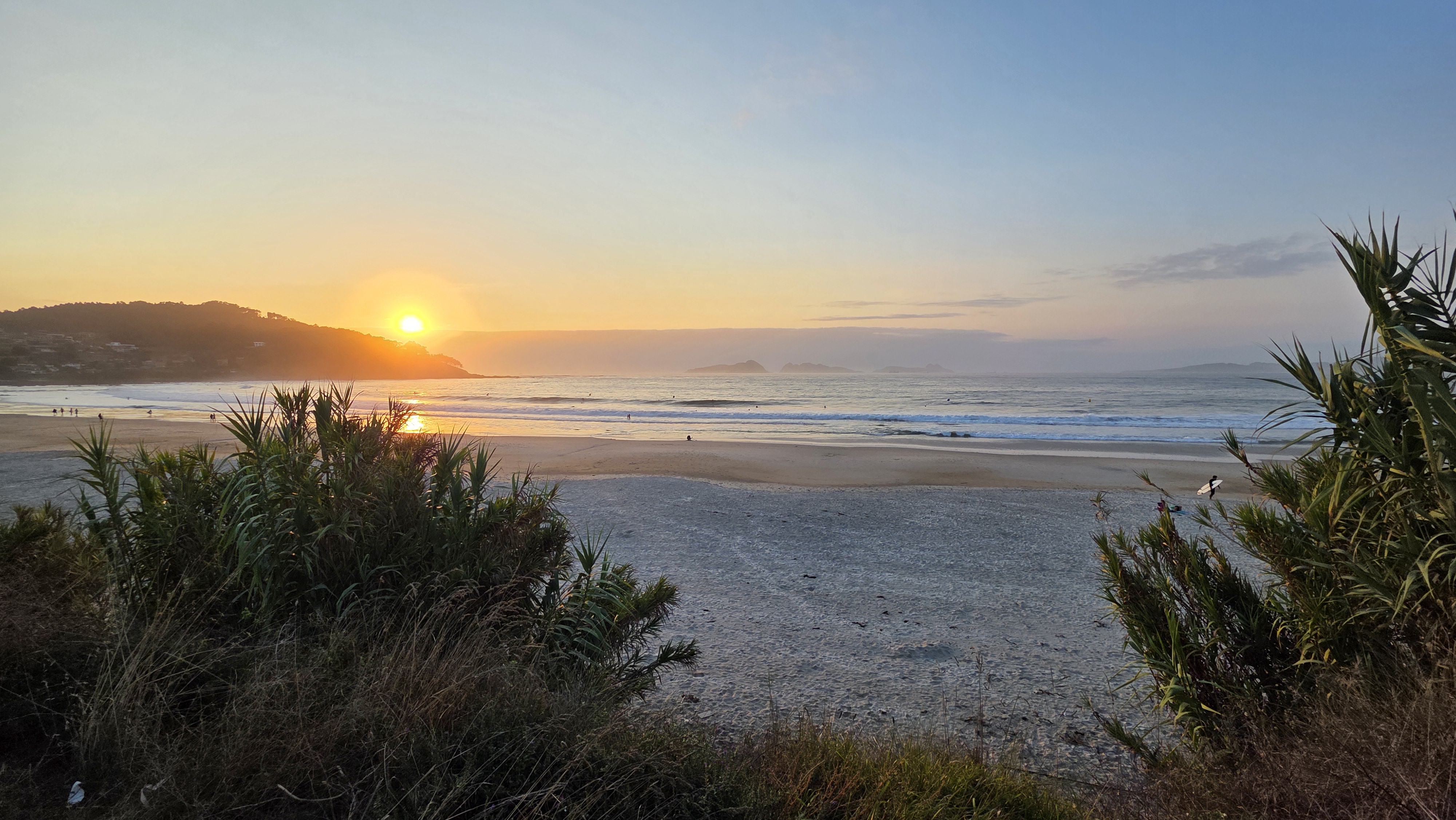 Ce soir, qui est le dernier jour de notre cinquième mois de marche, nous dormons en bord de mer à Nigrán.