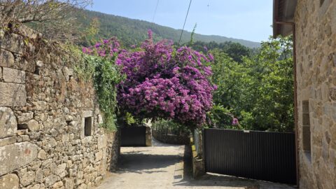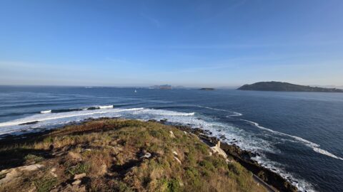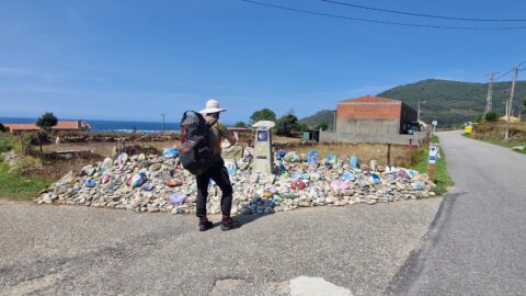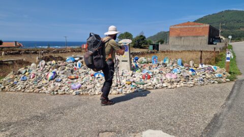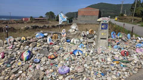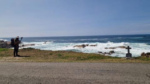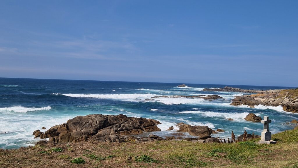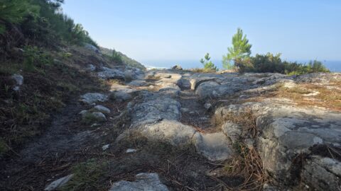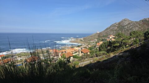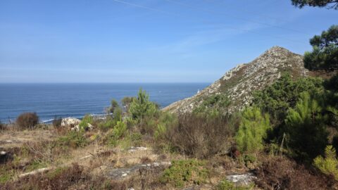 Nous y avons rejoint de Camino Portugués de la Costa qui nous a fait couper par la montagne pour rejoindre la côte au sud du cap Silleiro.