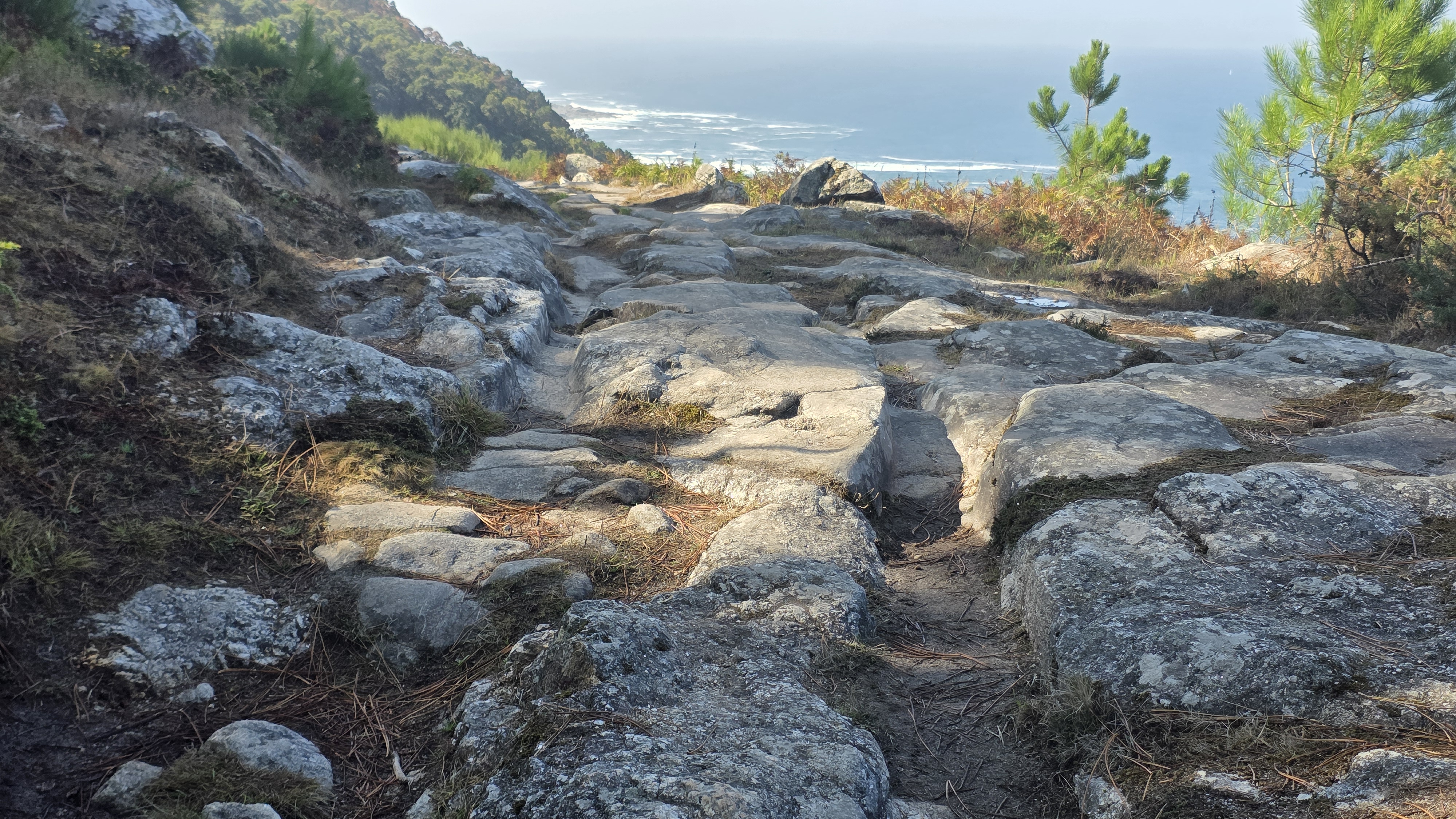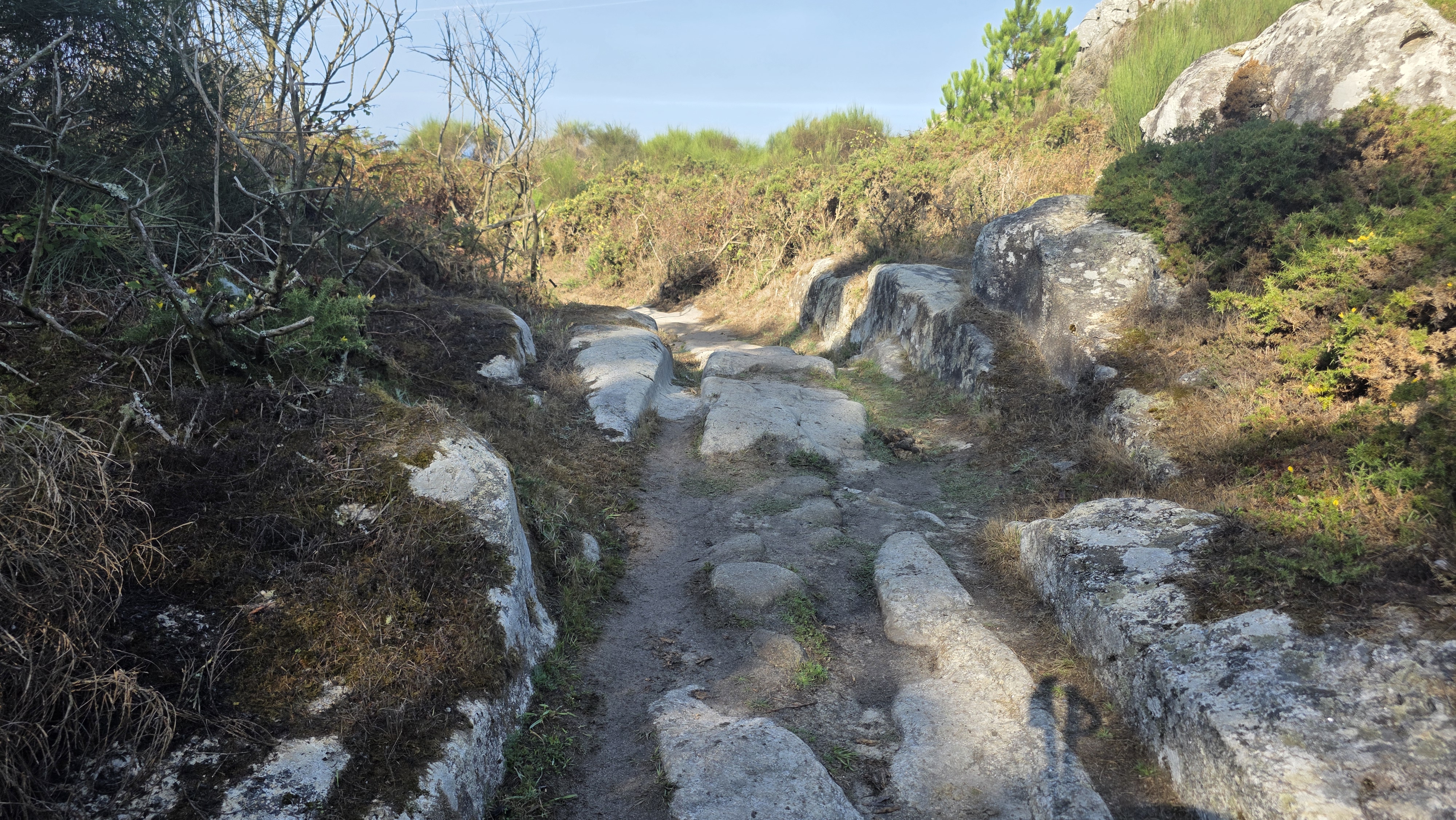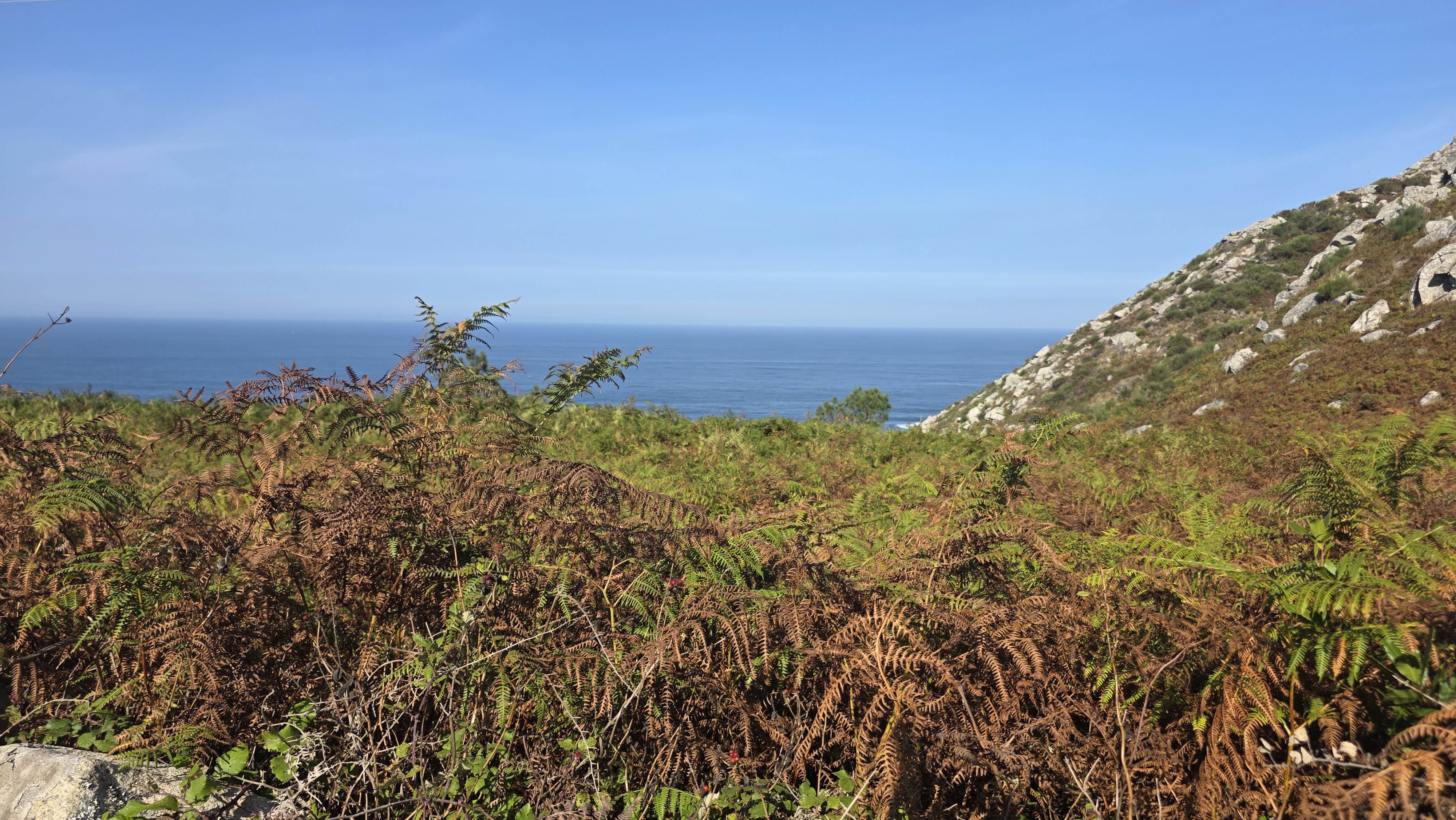 Nous y avons rejoint de Camino Portugués de la Costa qui nous a fait couper par la montagne pour rejoindre la côte au sud du cap Silleiro.