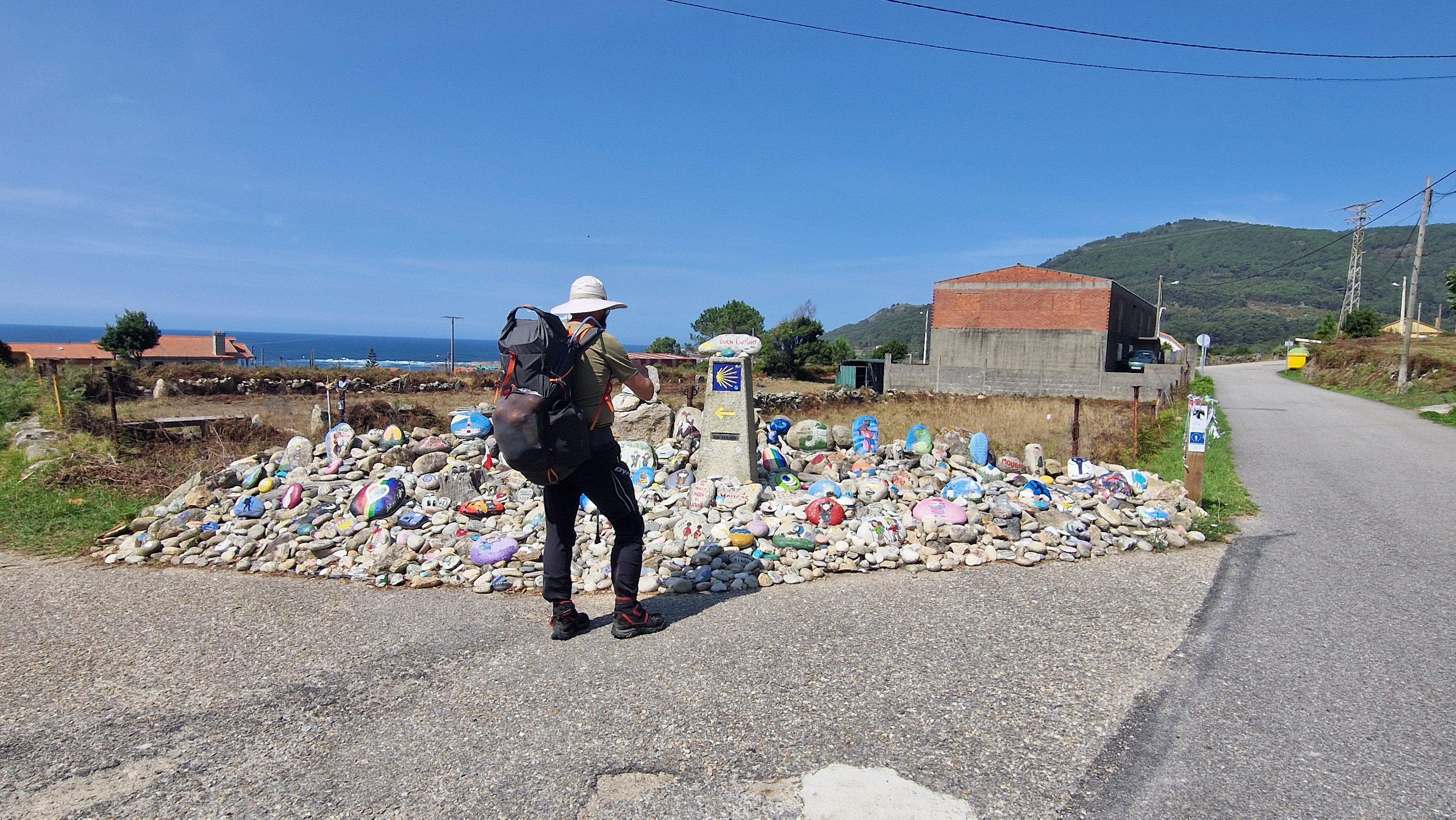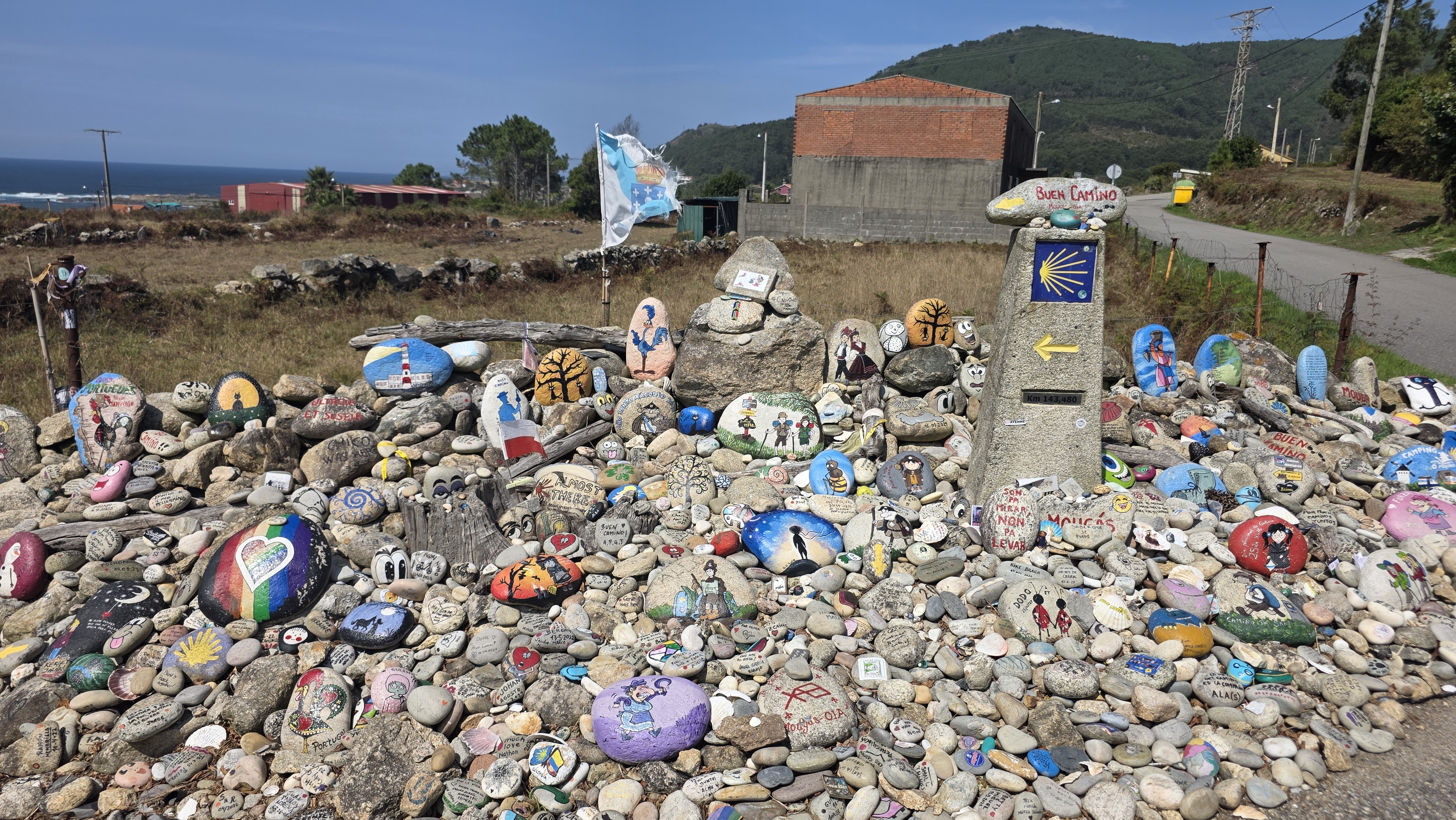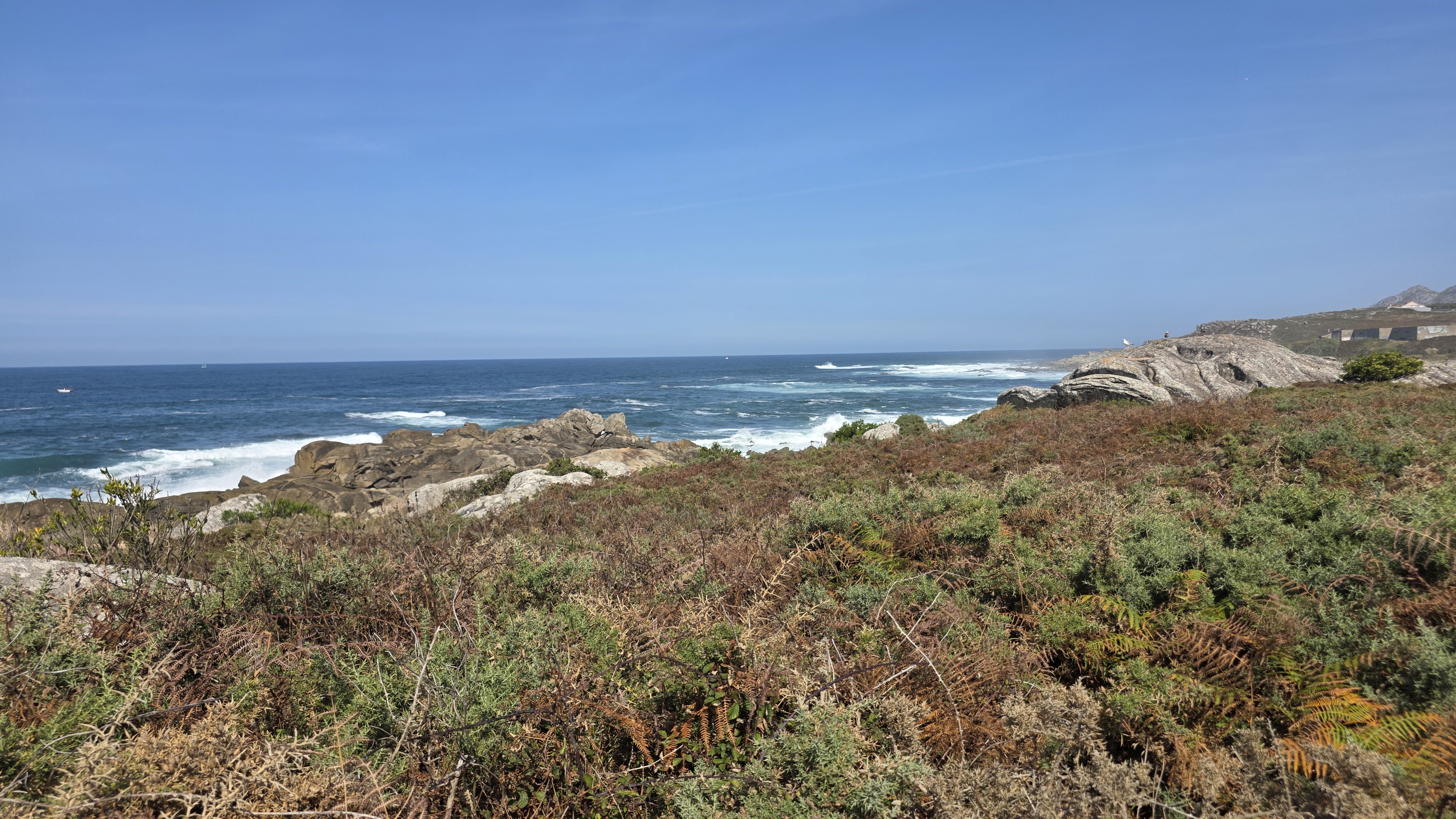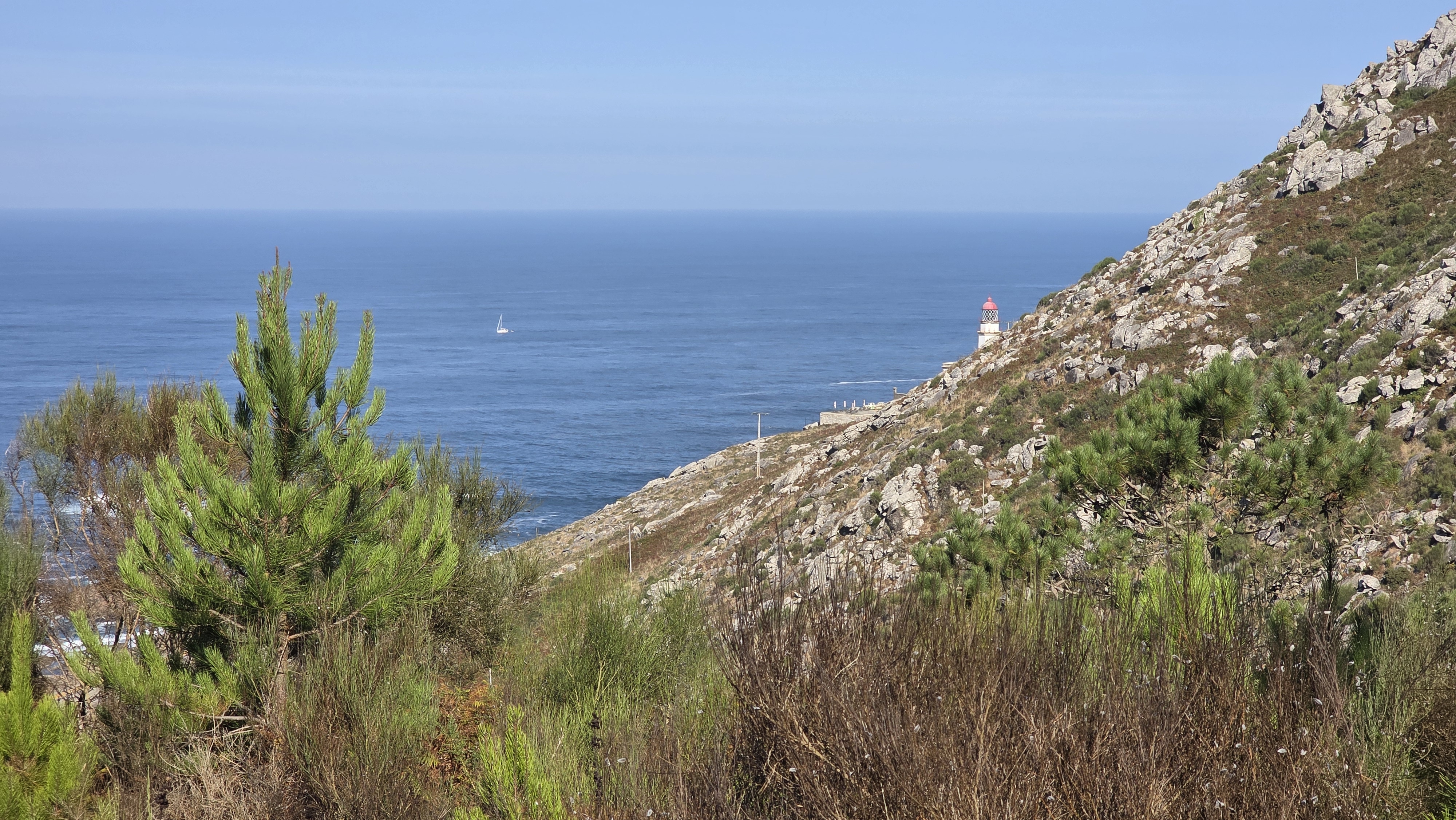 Nous y avons rejoint de Camino Portugués de la Costa qui nous a fait couper par la montagne pour rejoindre la côte au sud du cap Silleiro.