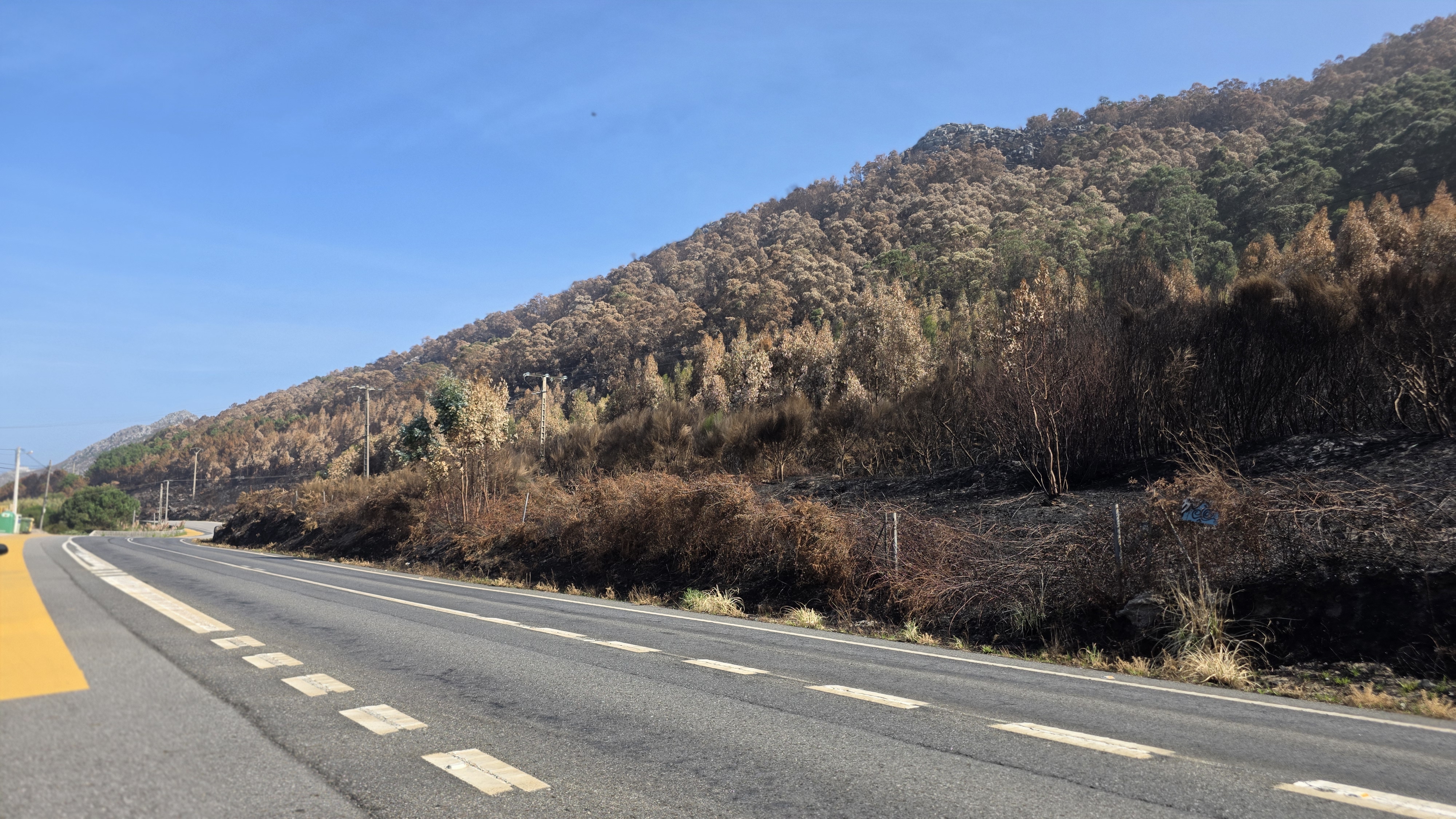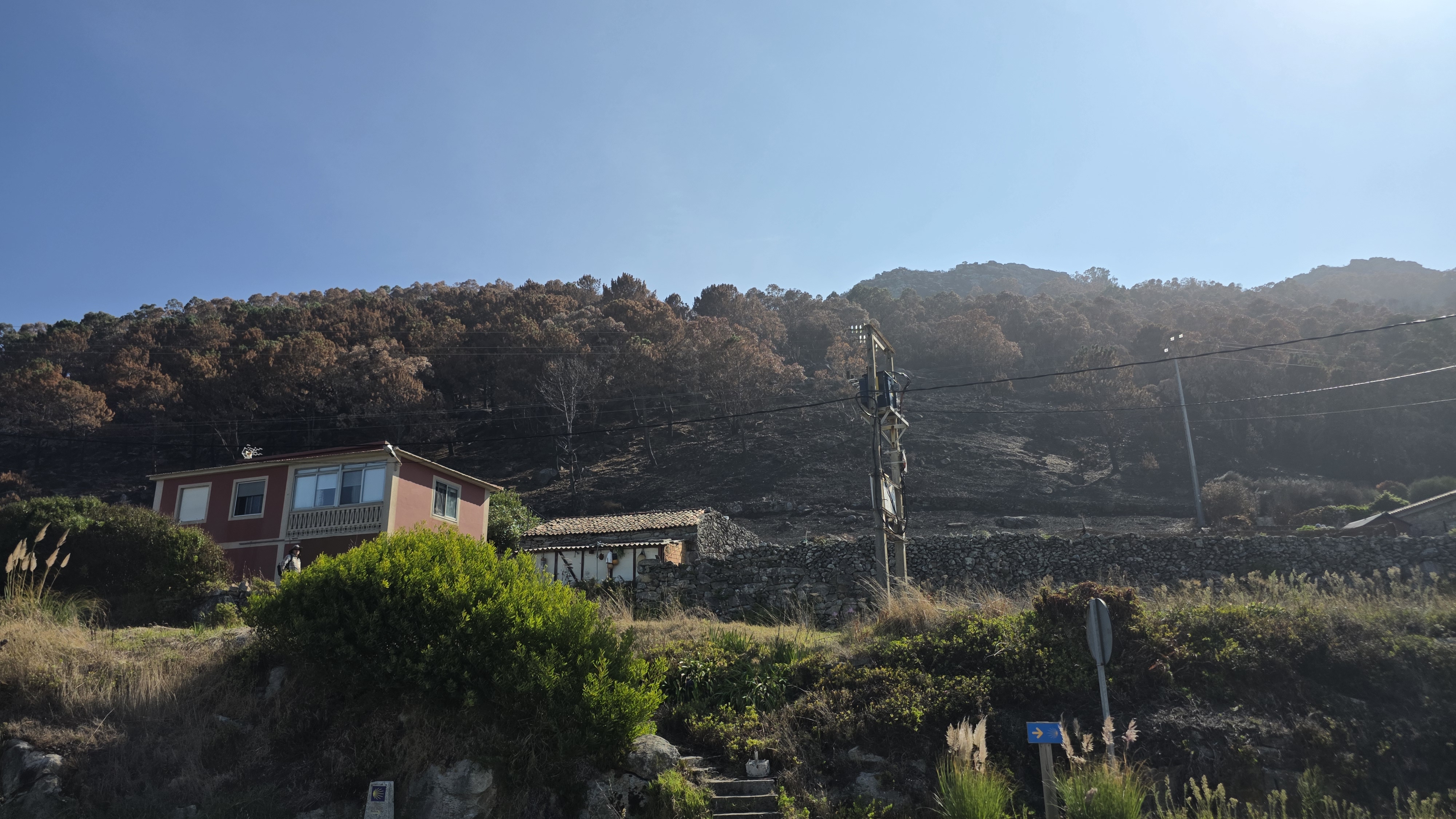 Nous avons traversé une zone incendiée le mois dernier avant de déjeuner et de rejoindre la « casa rural » où nous dormons à Viladesuso.