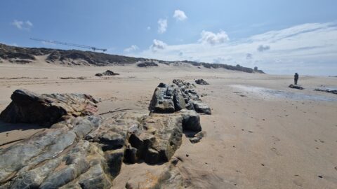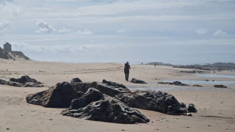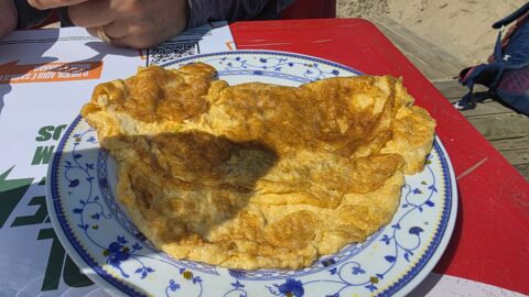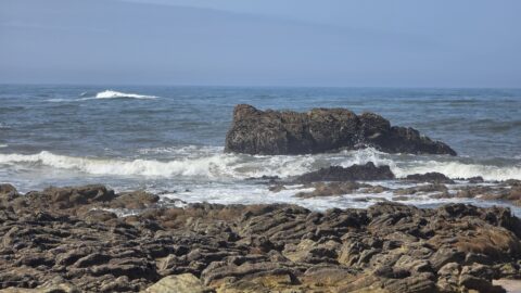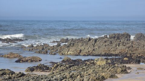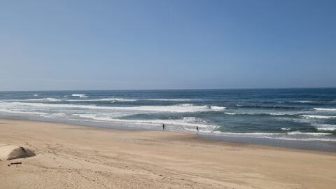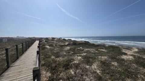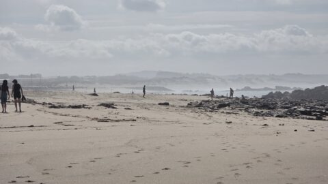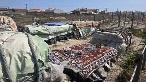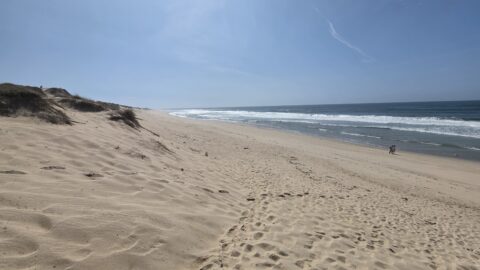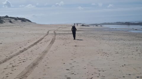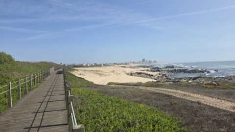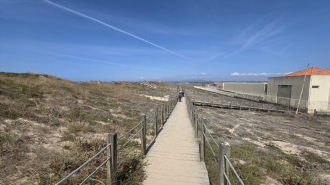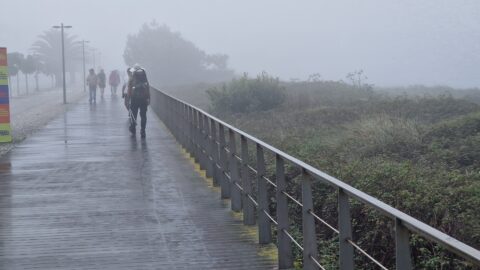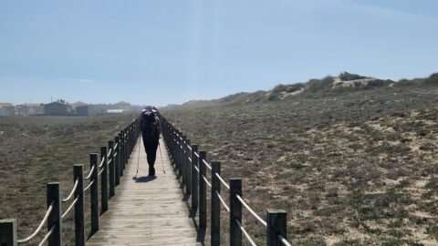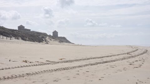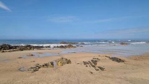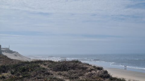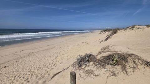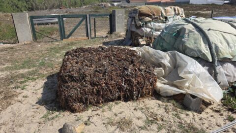 Entre Apulia et Pòvoa de Varzim, nous avons vu beaucoup de cultures maraichères dans le sable, un peu plus loin, des tas d’algues emballés sous forme de bottes bâchées et un homme en train de retourner des algues mises à sécher sur la plage.