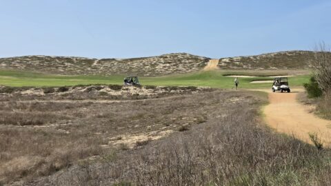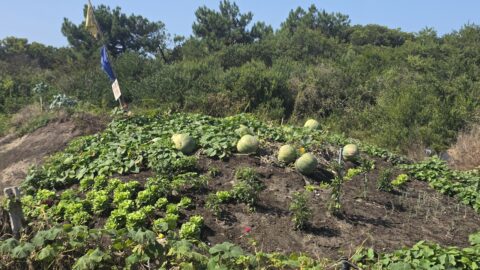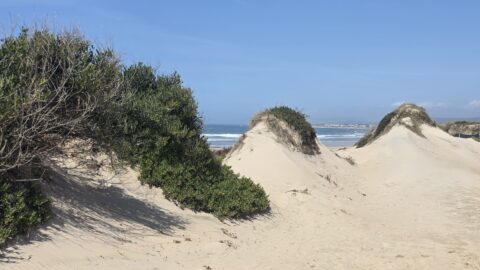 Des recherches sur internet nous ont permis de comprendre que ce sont des « masseiras« , un système de culture unique développé par des moines au 18ème siècle, qui permet ces cultures dans le sable et utilise des algues comme engrais.