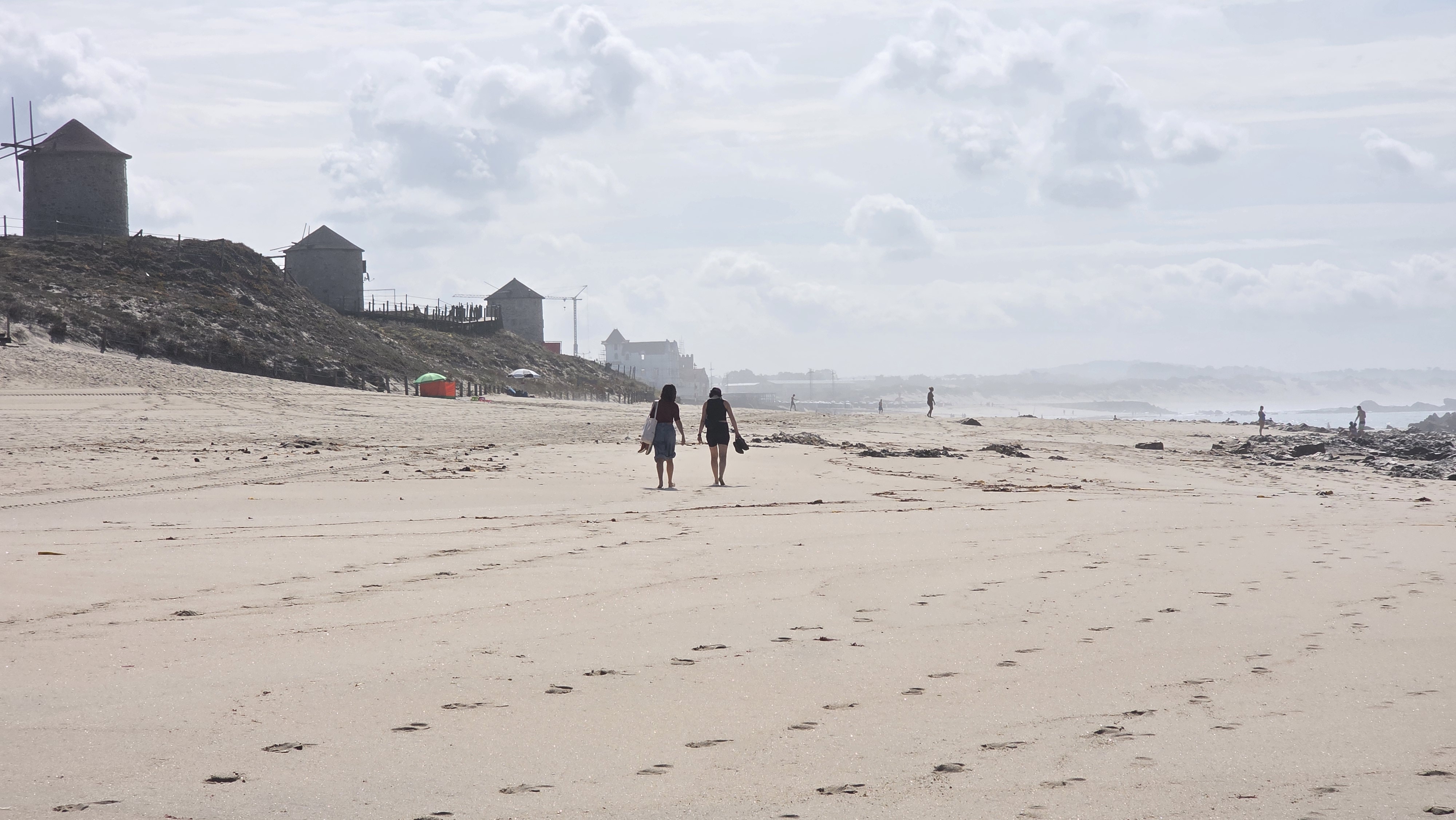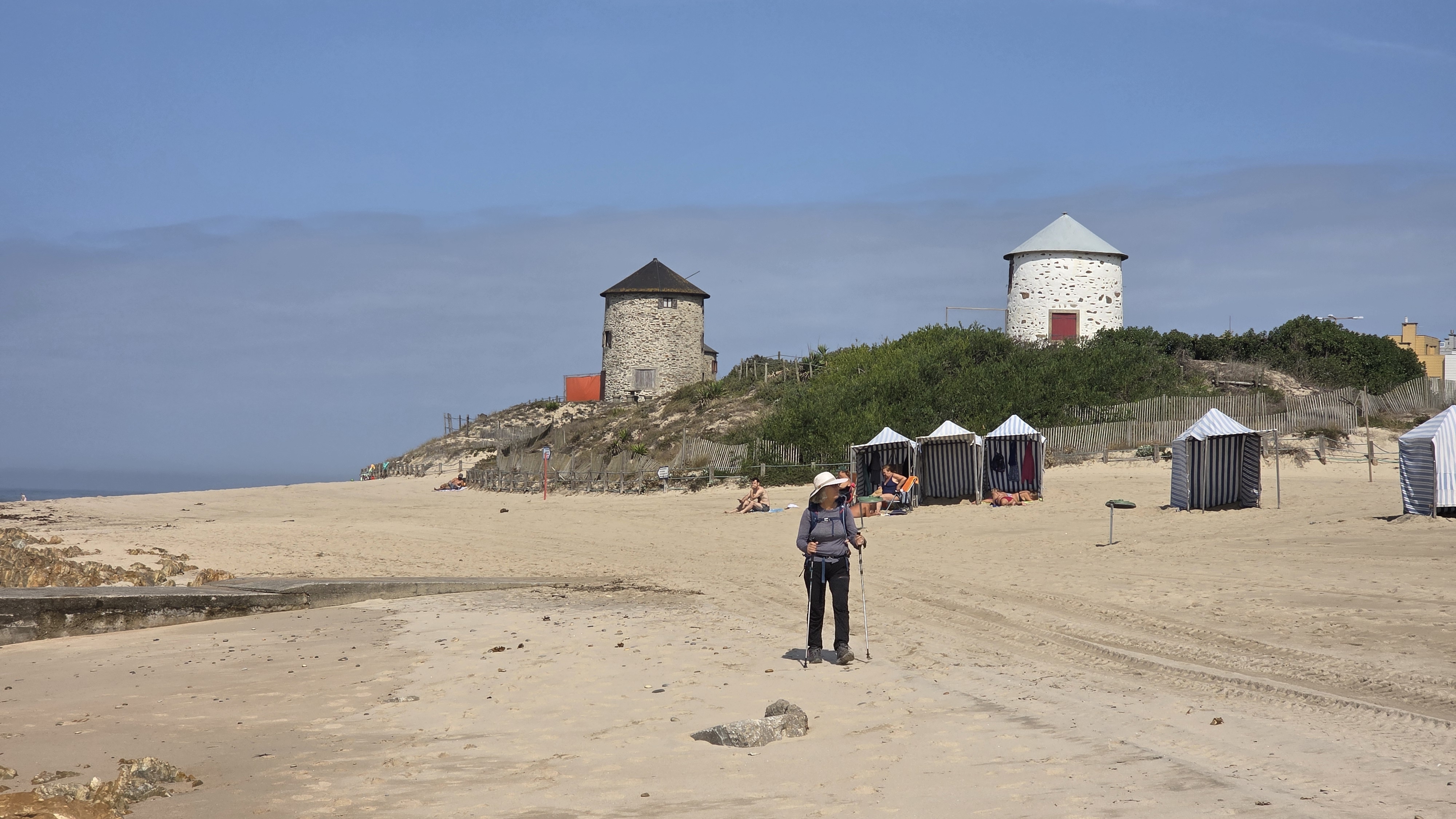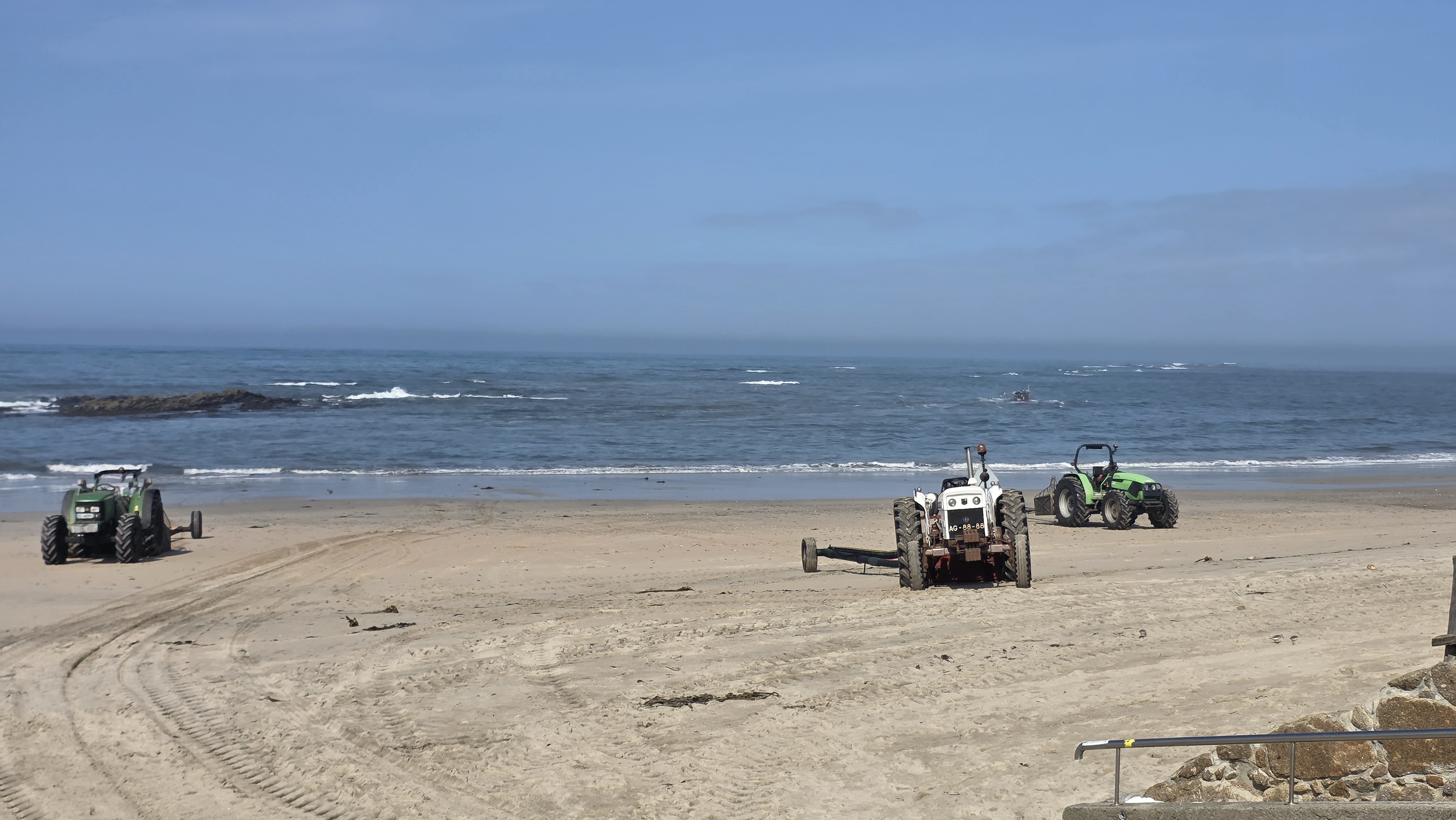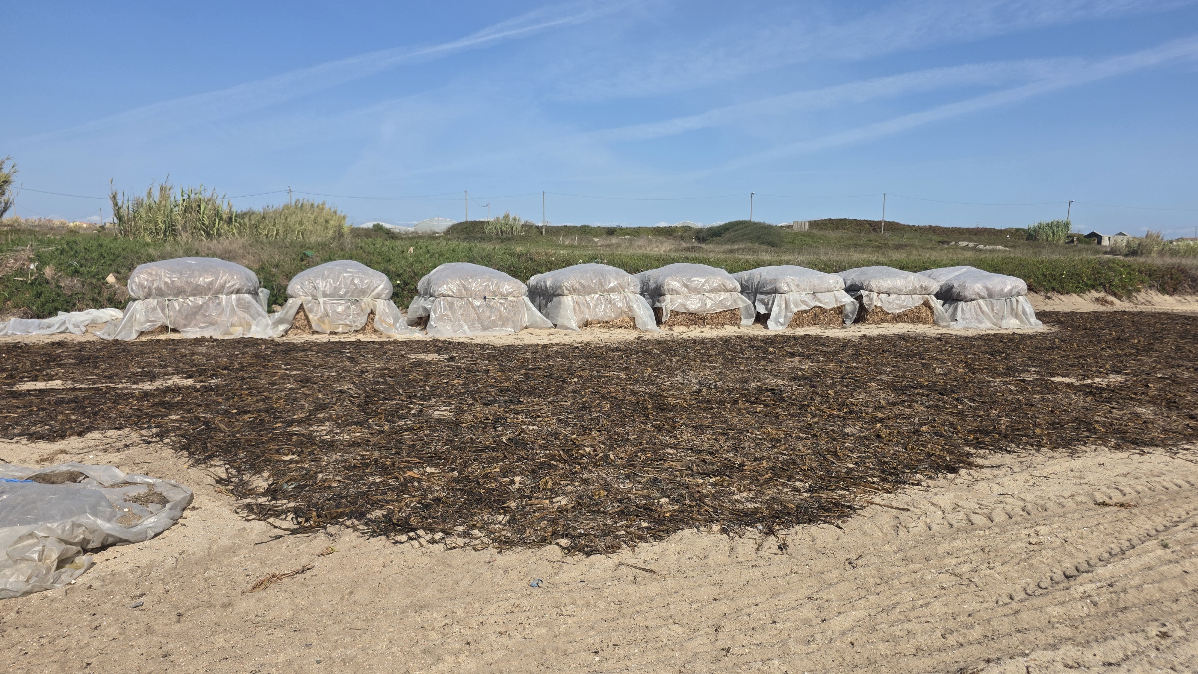 Entre Apulia et Pòvoa de Varzim, nous avons vu beaucoup de cultures maraichères dans le sable, un peu plus loin, des tas d’algues emballés sous forme de bottes bâchées et un homme en train de retourner des algues mises à sécher sur la plage.