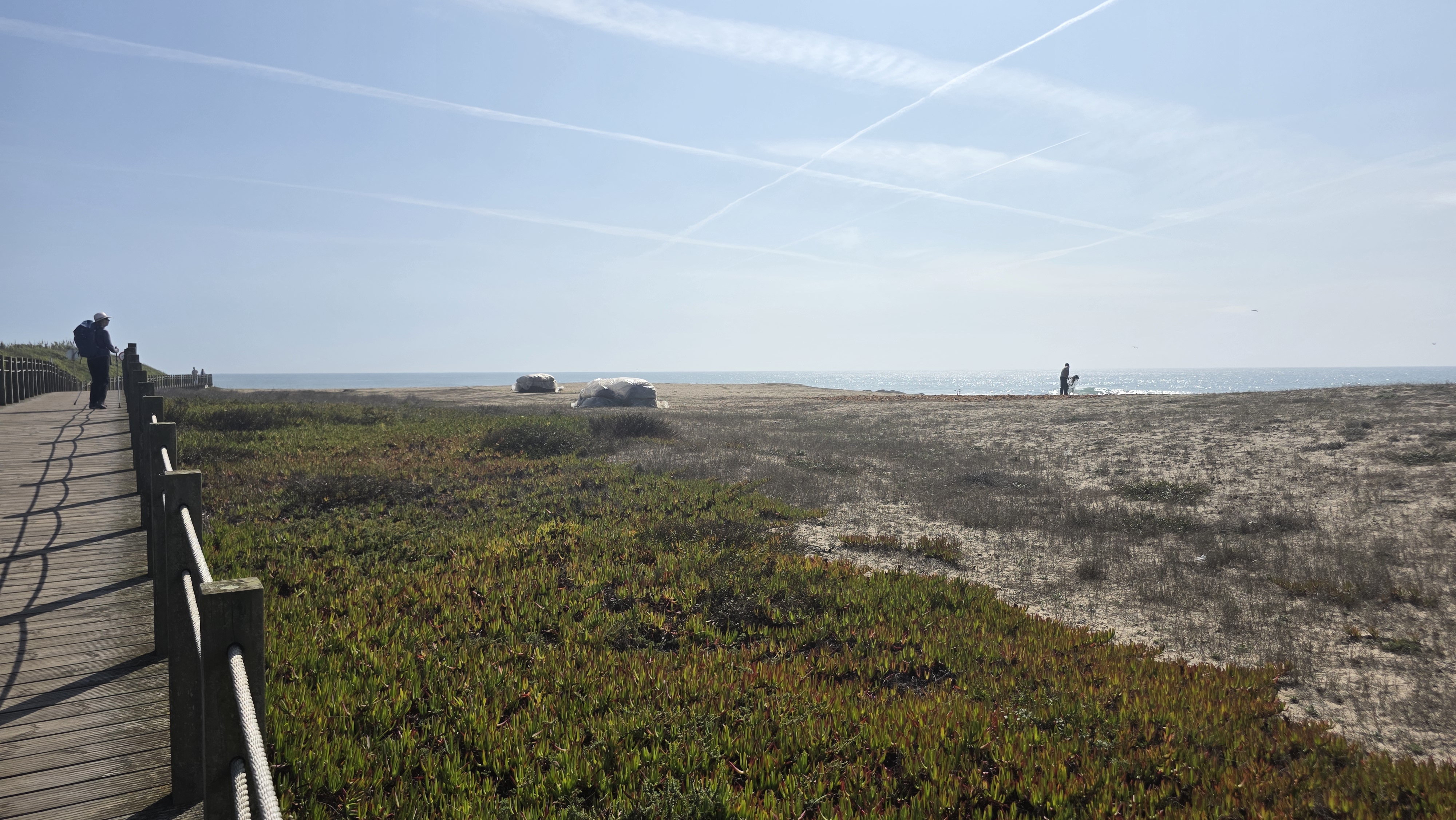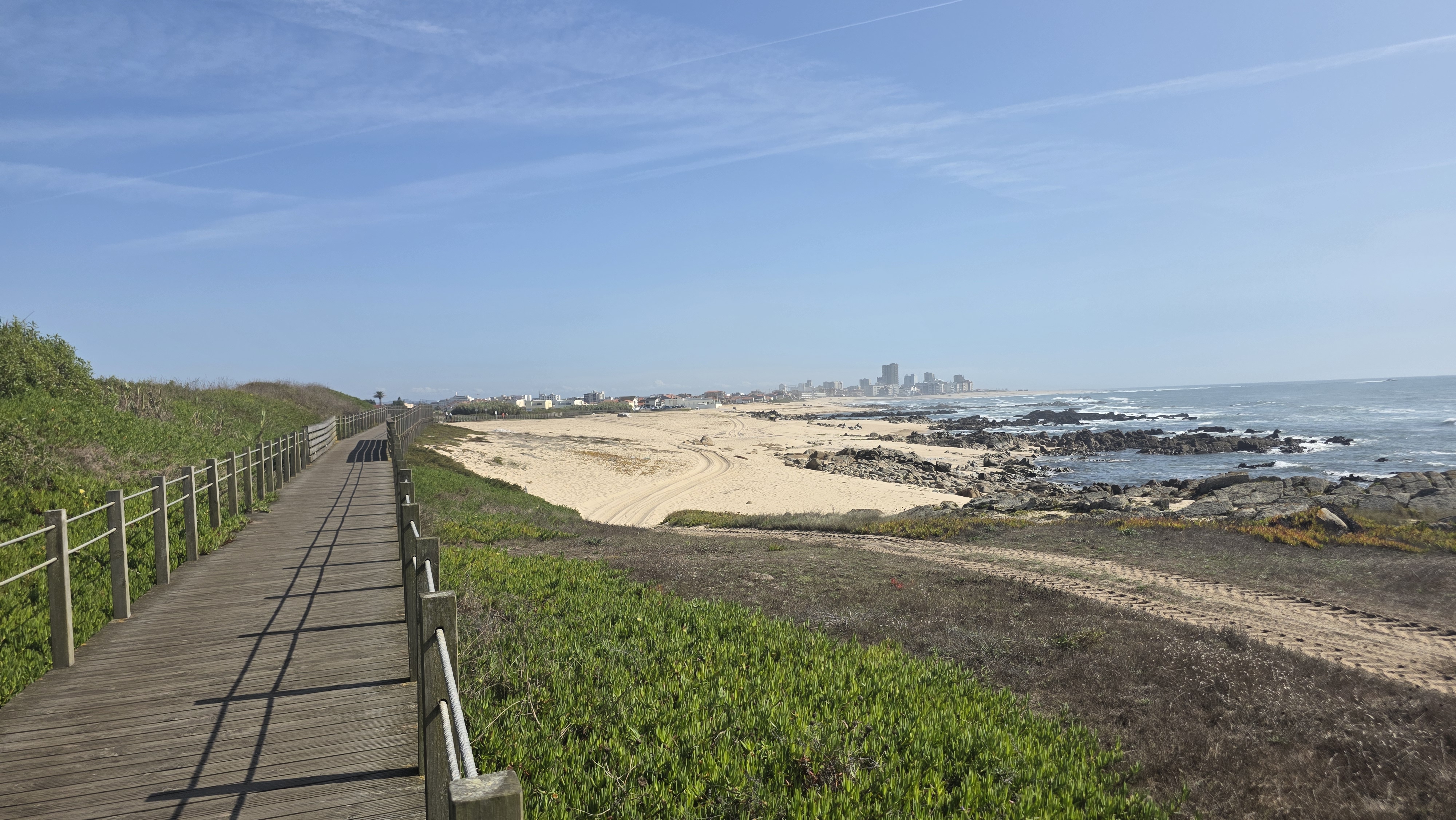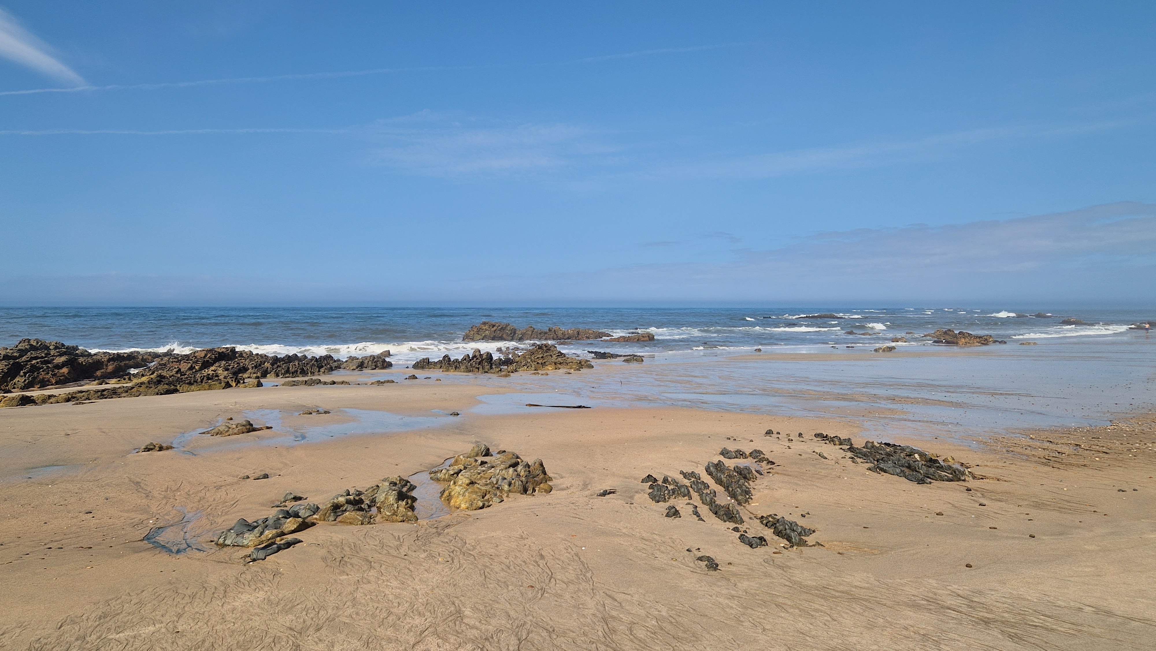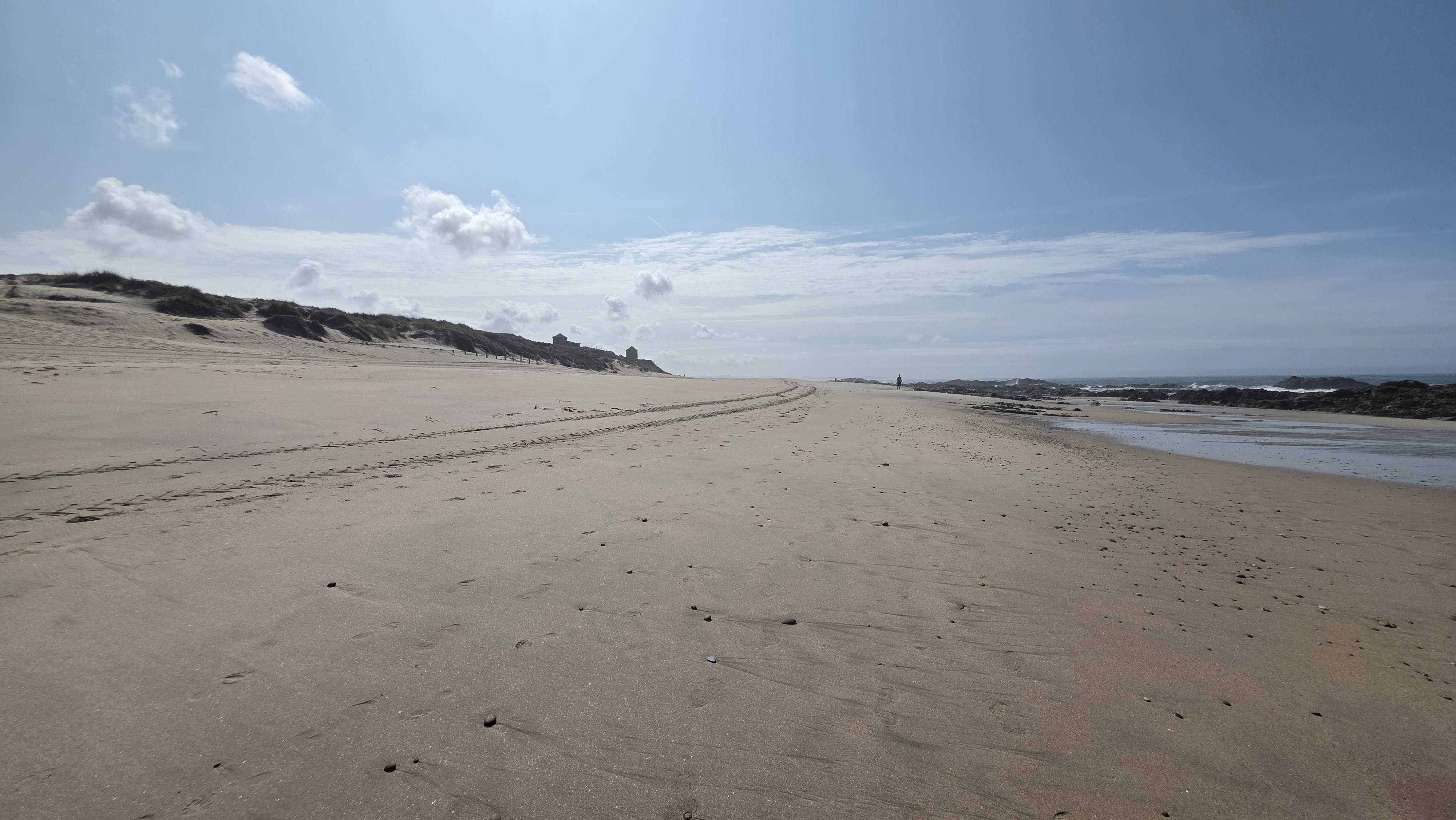 Entre Apulia et Pòvoa de Varzim, nous avons vu beaucoup de cultures maraichères dans le sable, un peu plus loin, des tas d’algues emballés sous forme de bottes bâchées et un homme en train de retourner des algues mises à sécher sur la plage.