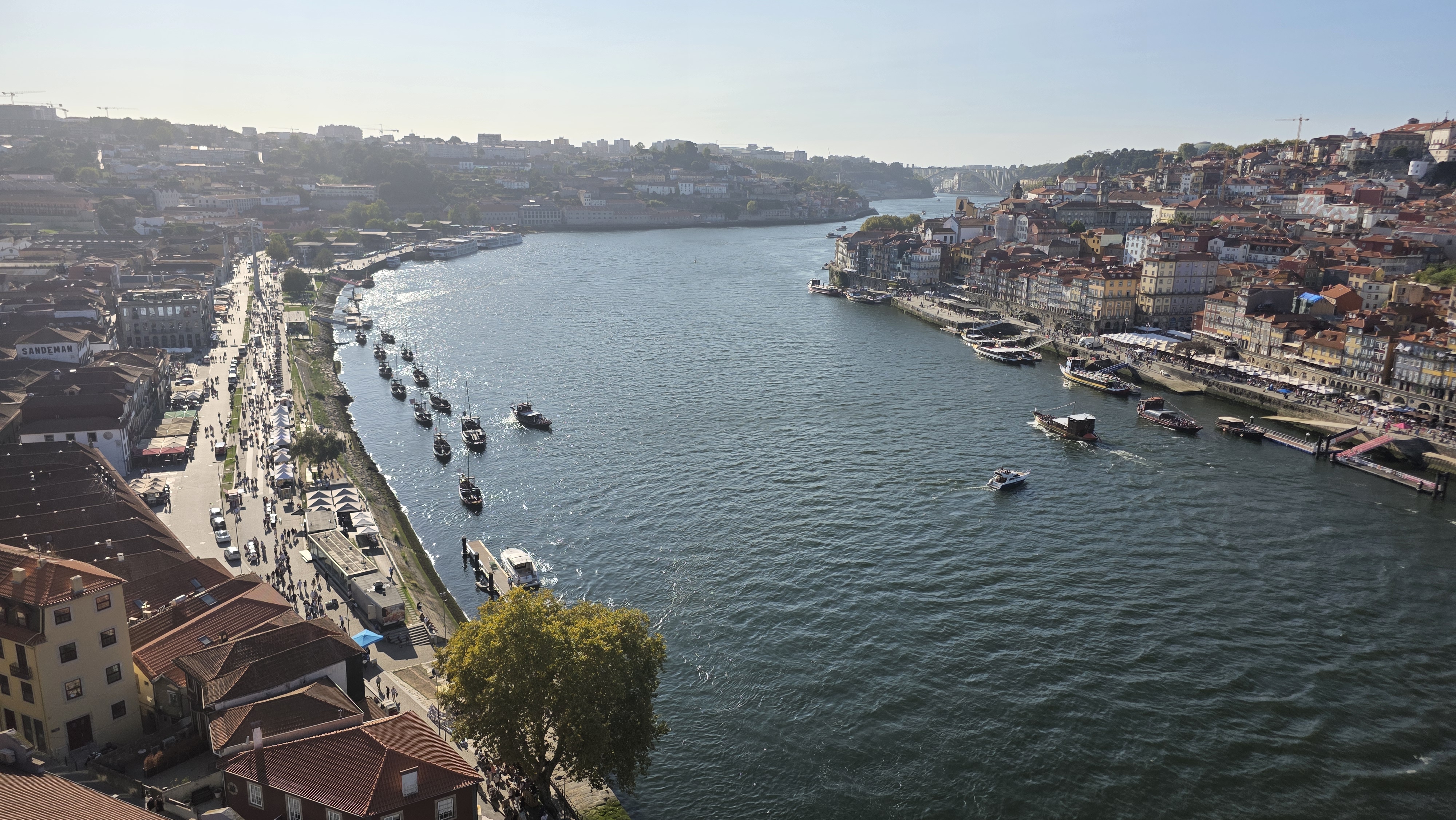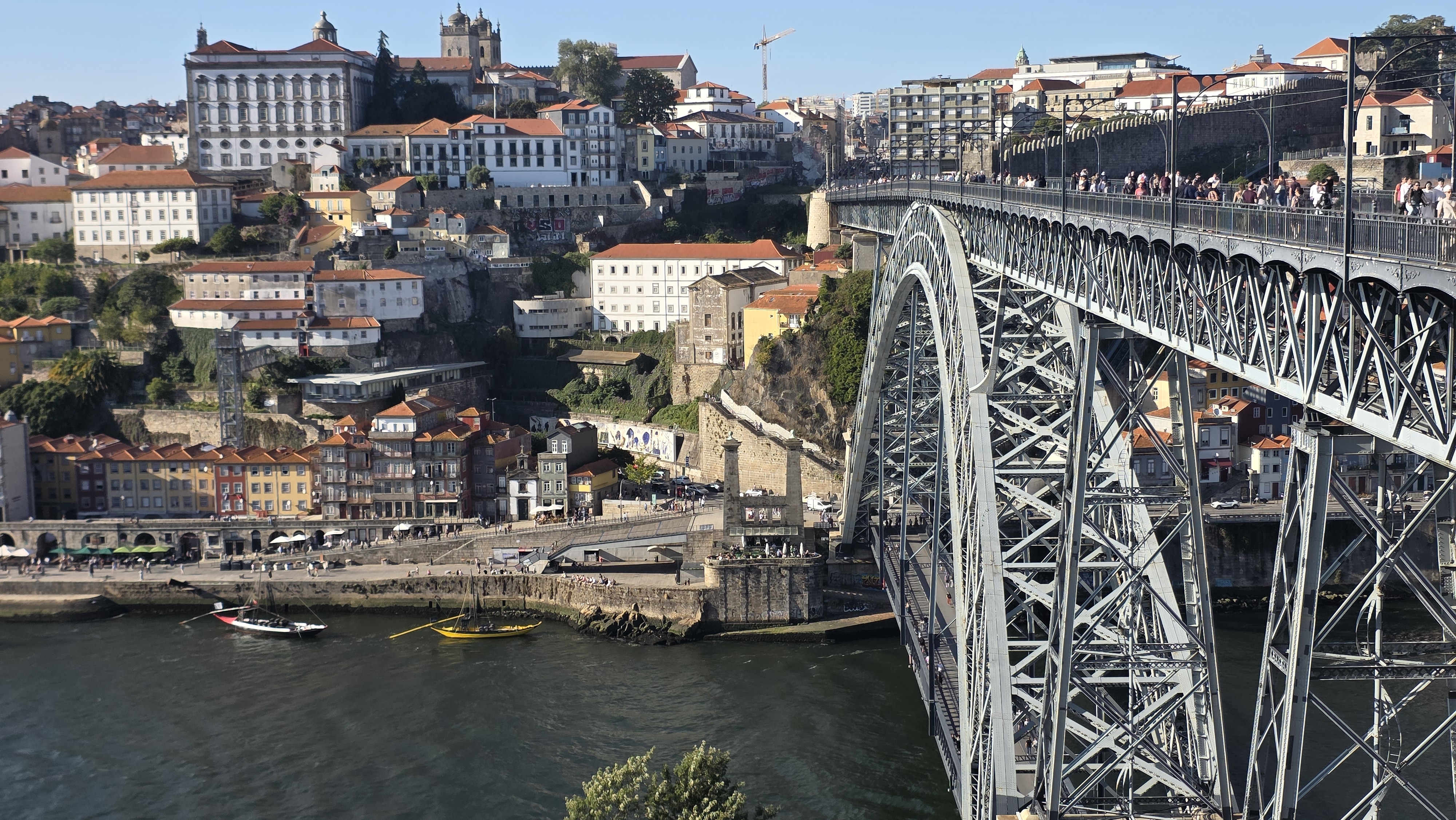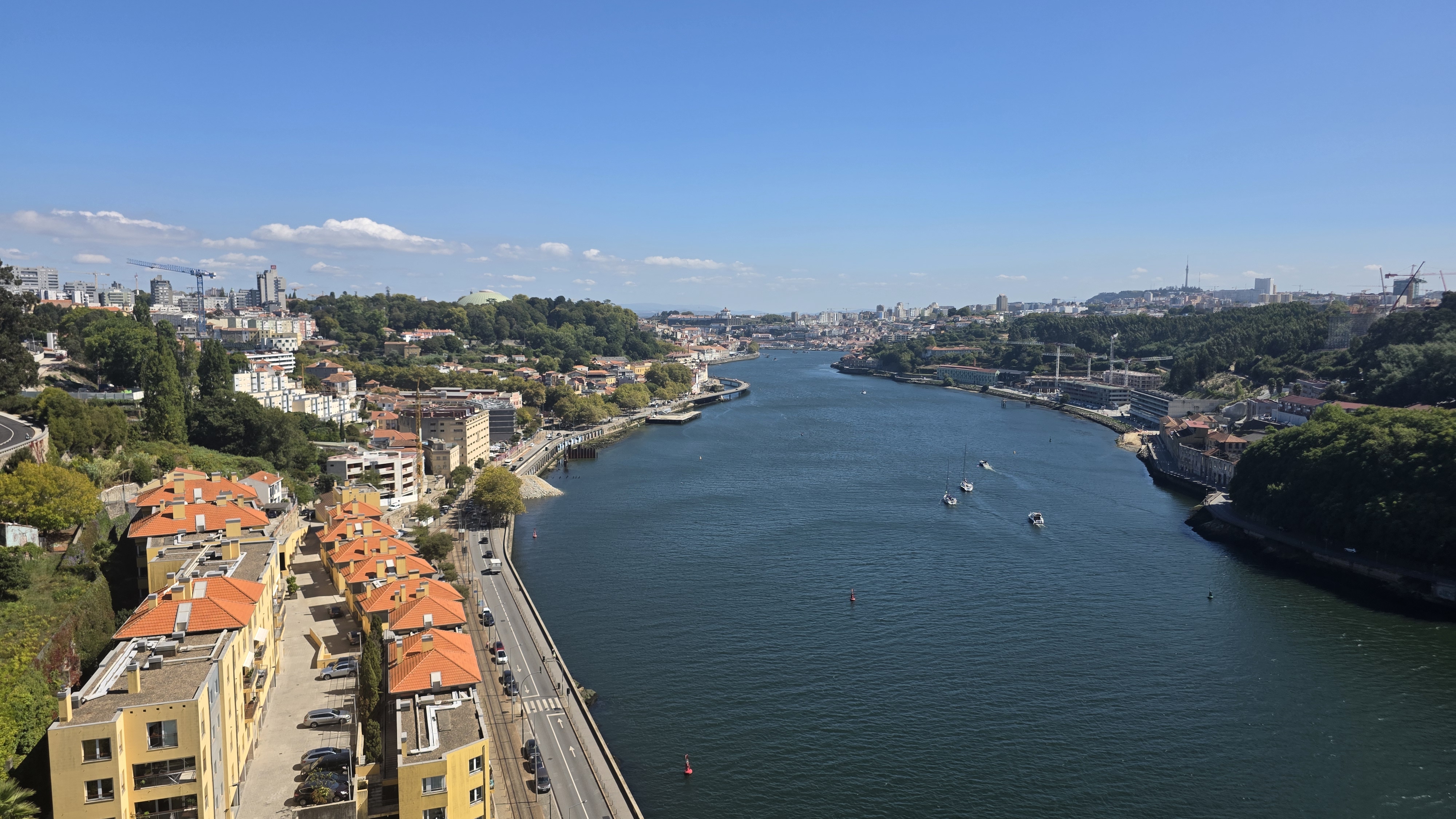 Nous avons traversé le fleuve sur le pont de béton armé d’Arrabida d’où, à 70m au dessus du Douro, nous avons pu contempler la ville.
