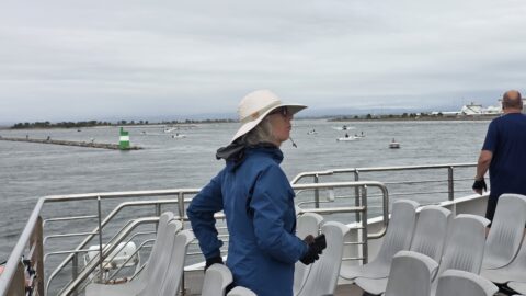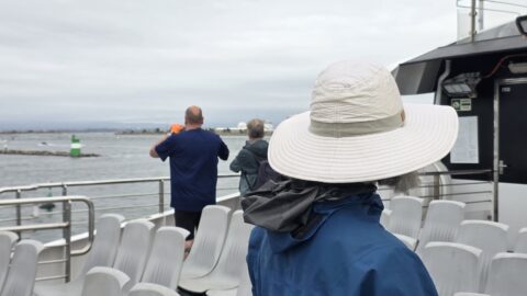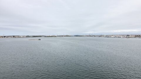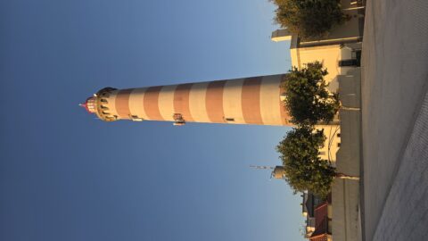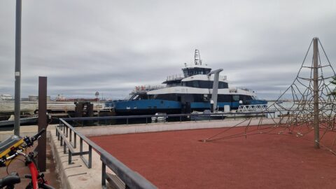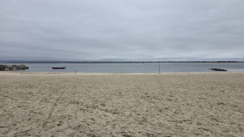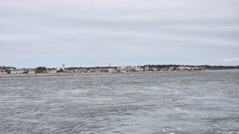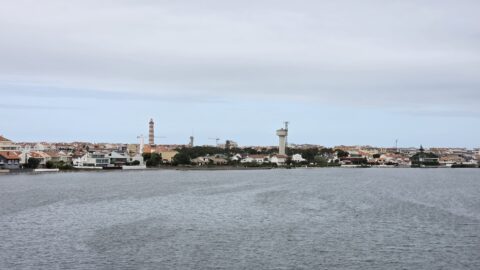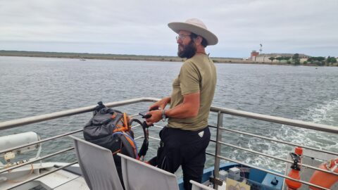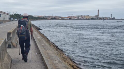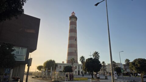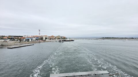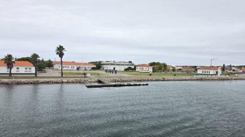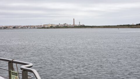Arrivés au bout de la langue de sable qui ferme la ria d’Aveiro au nord nous avons pris un ferry qui nous a amenés dans le port, à côté du fort de Barra de Aveiro.
