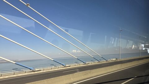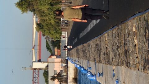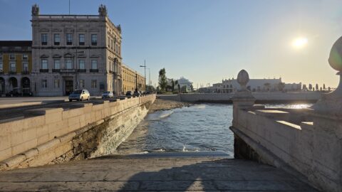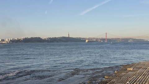 Ce matin nous avons descendu le Tage jusqu’au port de Lisbonne et nous sommes rentrés en passant par l’intérieur de la ville.