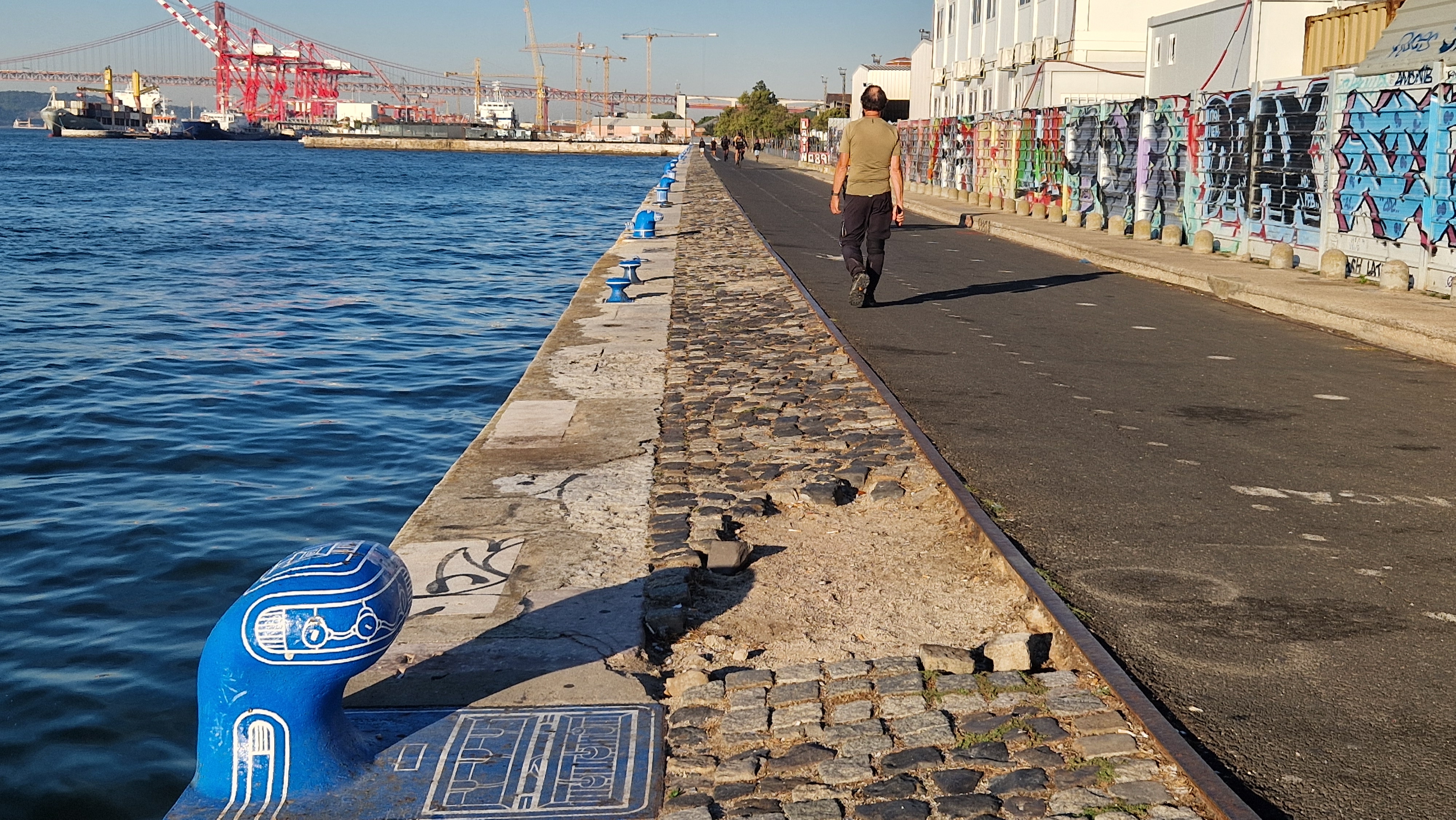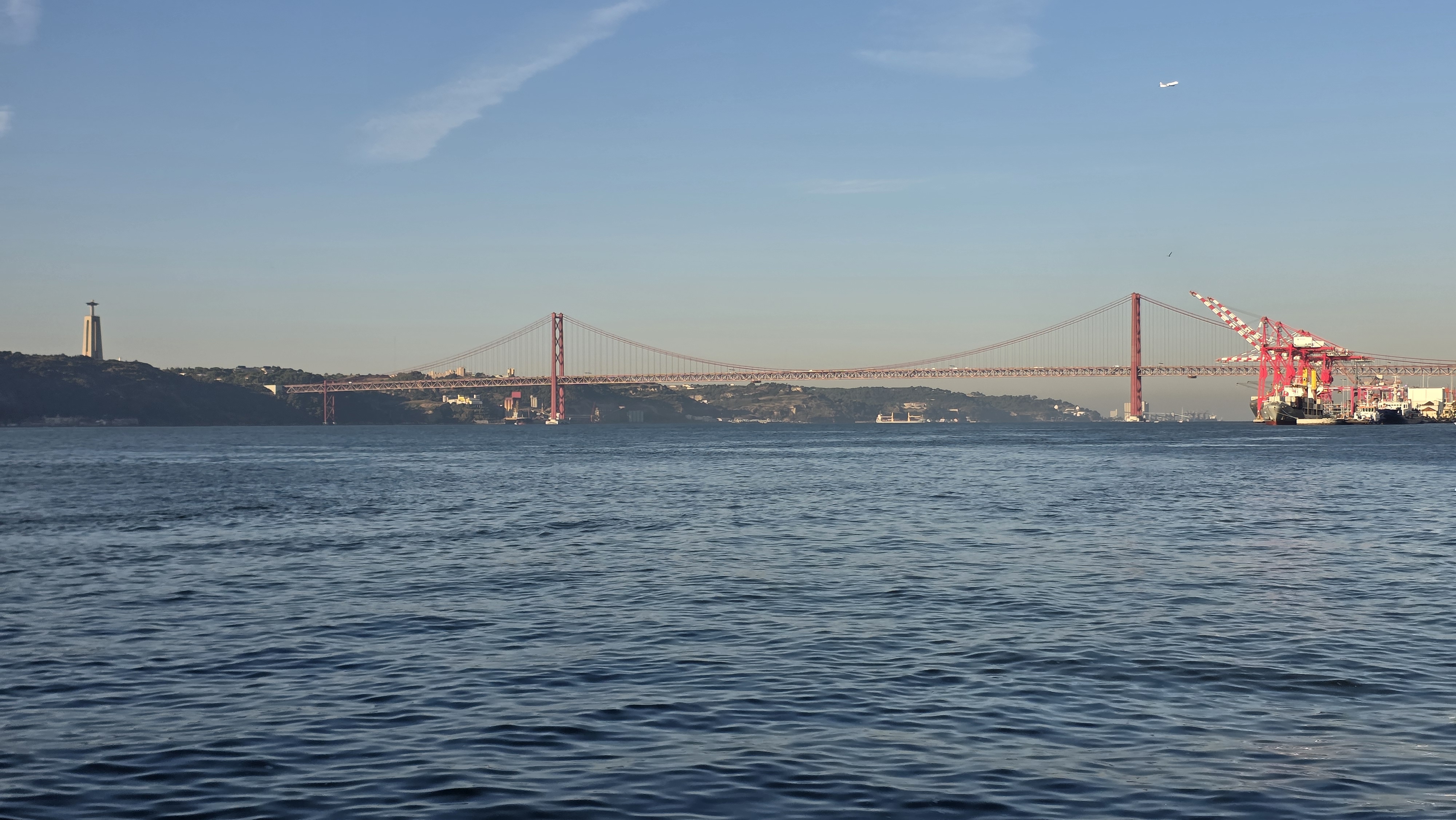 Ce matin nous avons descendu le Tage jusqu’au port de Lisbonne et nous sommes rentrés en passant par l’intérieur de la ville.